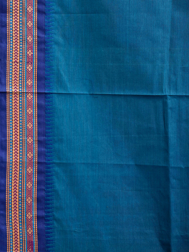Blue Kanchipuram Cotton Plain Saree with Border and Strips Pallu Design. Traditional Simple South Indian Attire Saree for any Casual Occasions. As it’s a cotton saree we advice gentle handwash separately for fabric care.