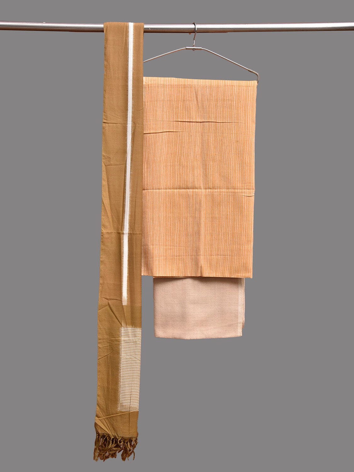 Cream and Yellow Pochampally Ikat Cotton Handloom Dress Material with Top Bottom and Dupatta dm0106