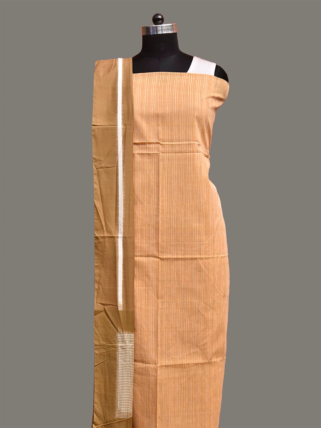 Cream and Yellow Pochampally Ikat Cotton Handloom Dress Material with Top Bottom and Dupatta. We Advise Gentle Handwash for Fabric Care. Top - 2.3mts W 52", Bottom - 2.4mts W 45", Dupatta - L 2.4mts W 34".
