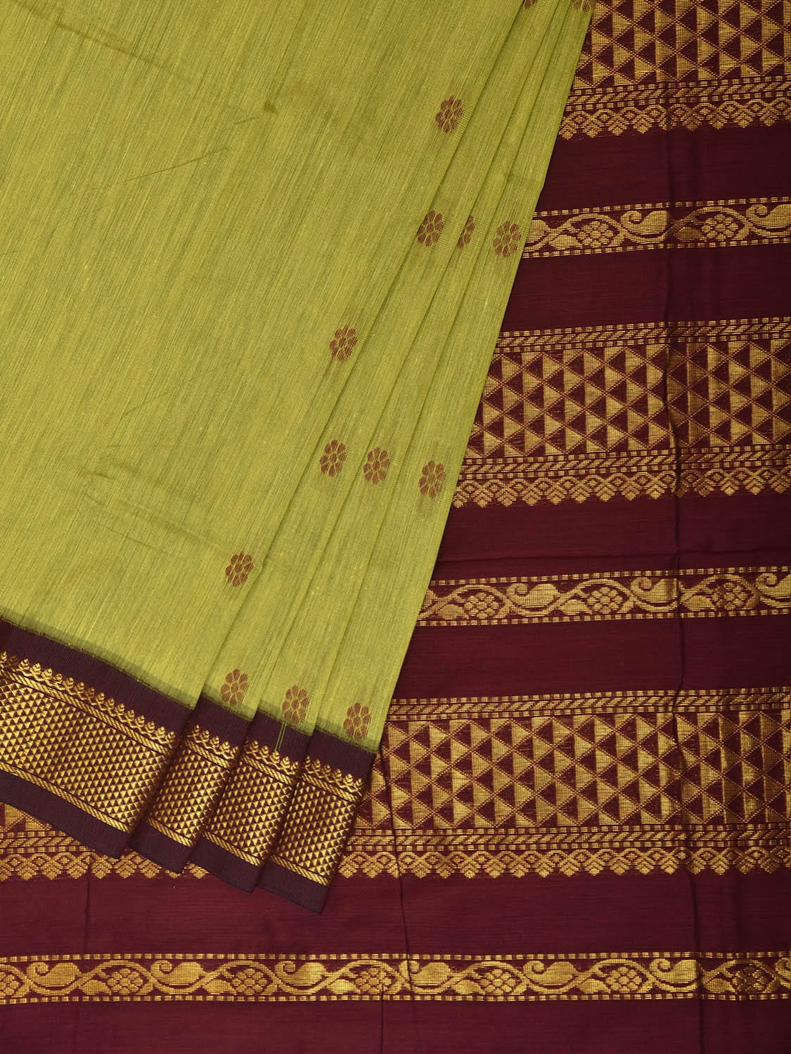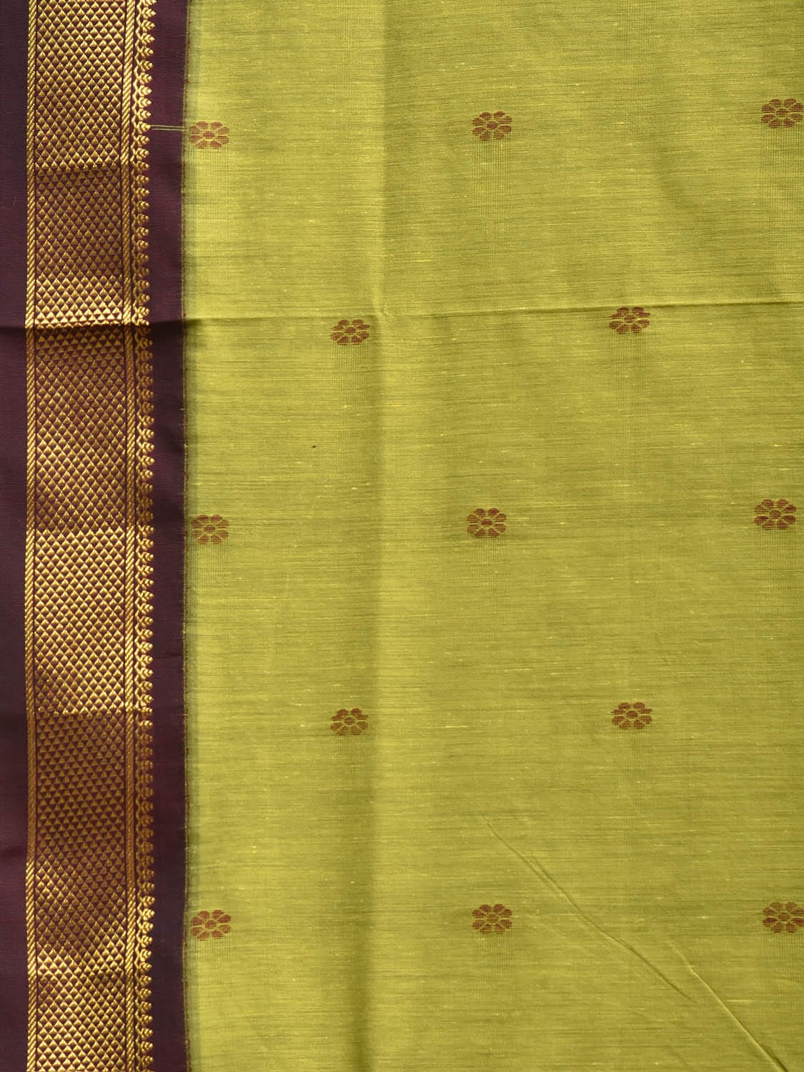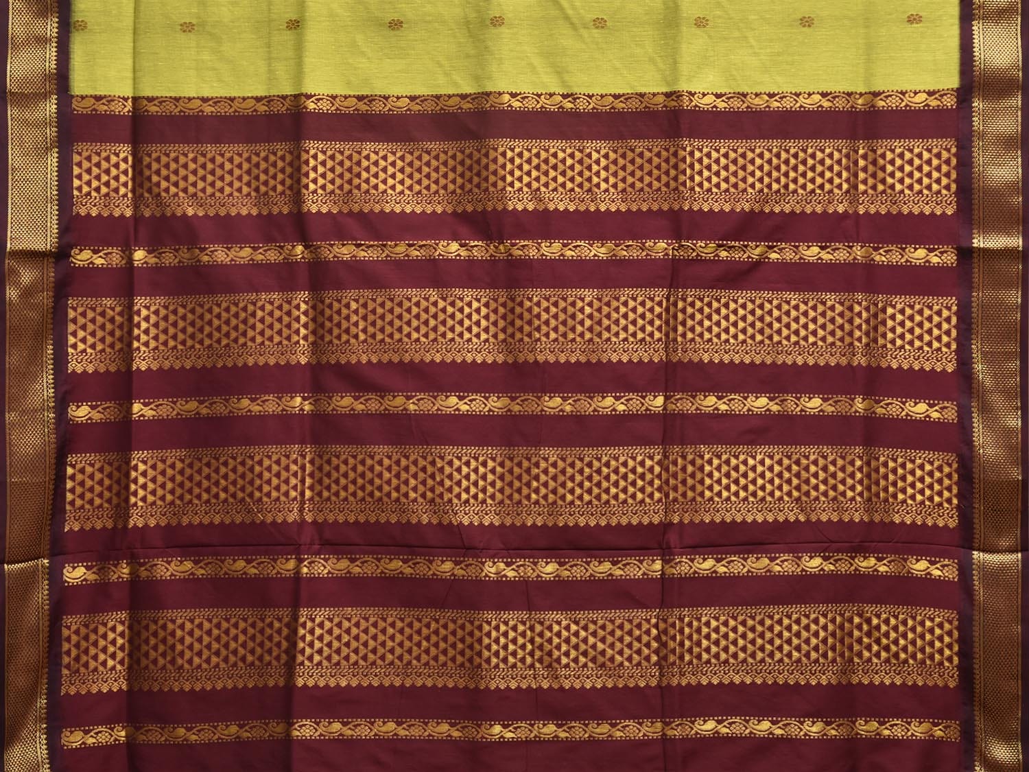Light Green and Dark Red Gadwal Cotton Viscose Saree with Pallu Design. Gadwal Sarees are known for their traditional design of border and pallu made of silk and body being either cotton or silk. They are known as Sico sarees for border and pallu being silk and body being cotton. We advice dry clean for fabric care.