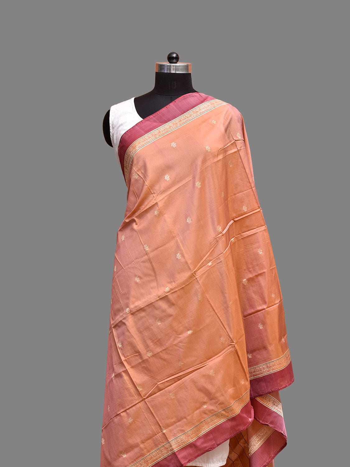 Light Rust Banaras Silk Dupatta with Border and Pallu Design. We Advise Dry Clean for Fabric Care.