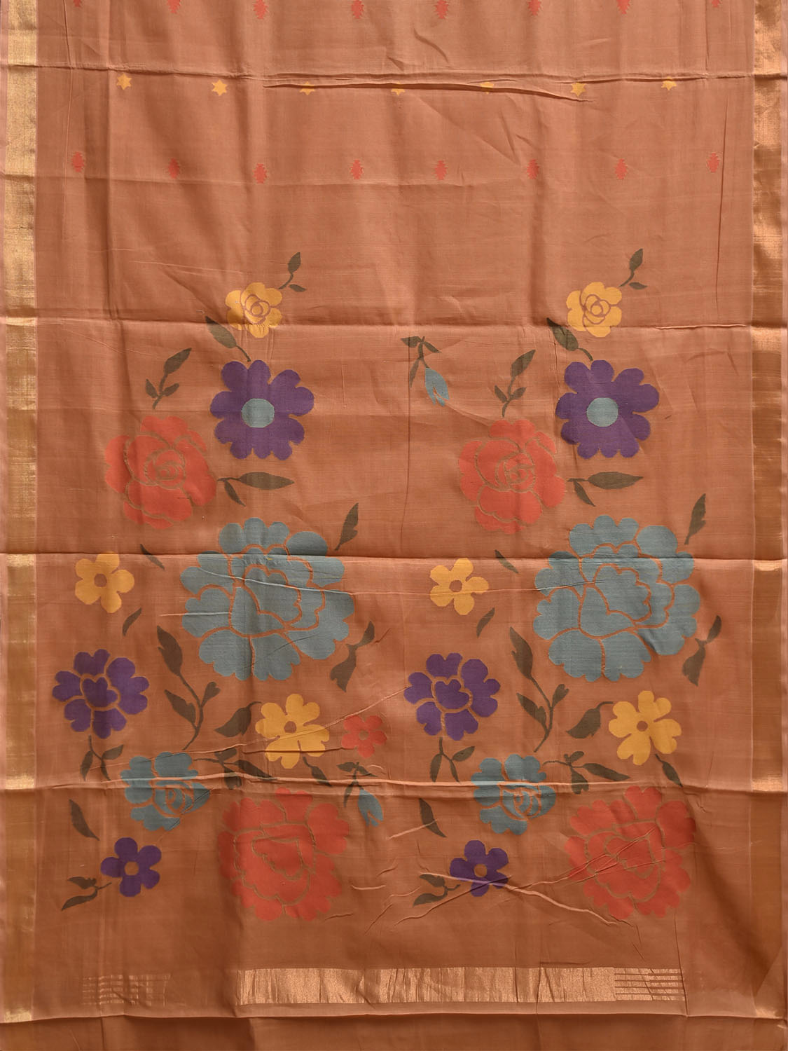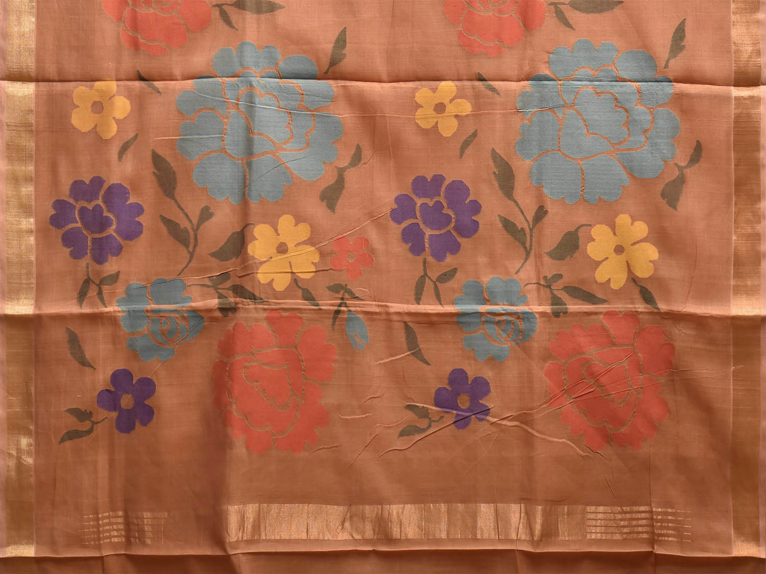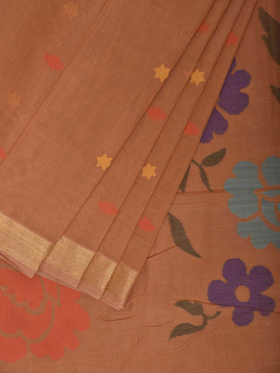 Fawn Khadi Cotton Handloom Saree with Big Floral Pallu Design. Khadi saree is primarily woven from cotton and may also include silk, or wool. It is a versatile fabric, cool in summer and warm in winter. For fabric care we advise dry clean.
