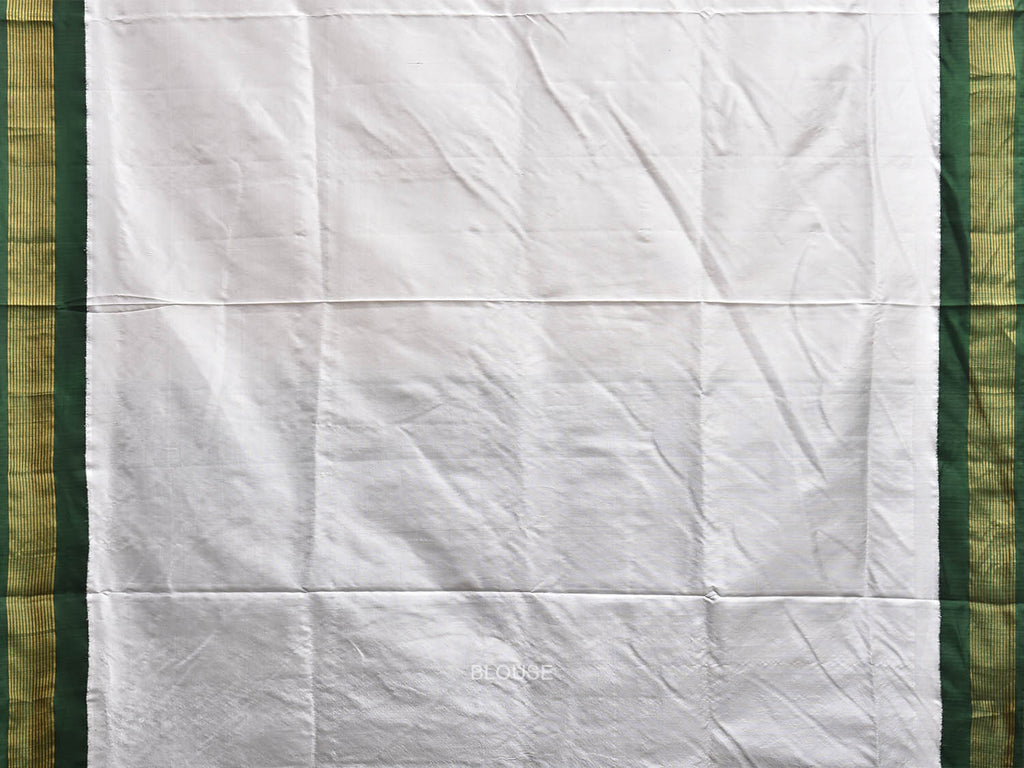 White and Green Gadwal Silk Handloom Plain Saree with Strips Pallu Design. Gadwal Sarees are known for their traditional design of border and pallu made of silk and body being either cotton or silk. They are known as Sico sarees for border and pallu being silk and body being cotton. We advice dry clean for fabric care