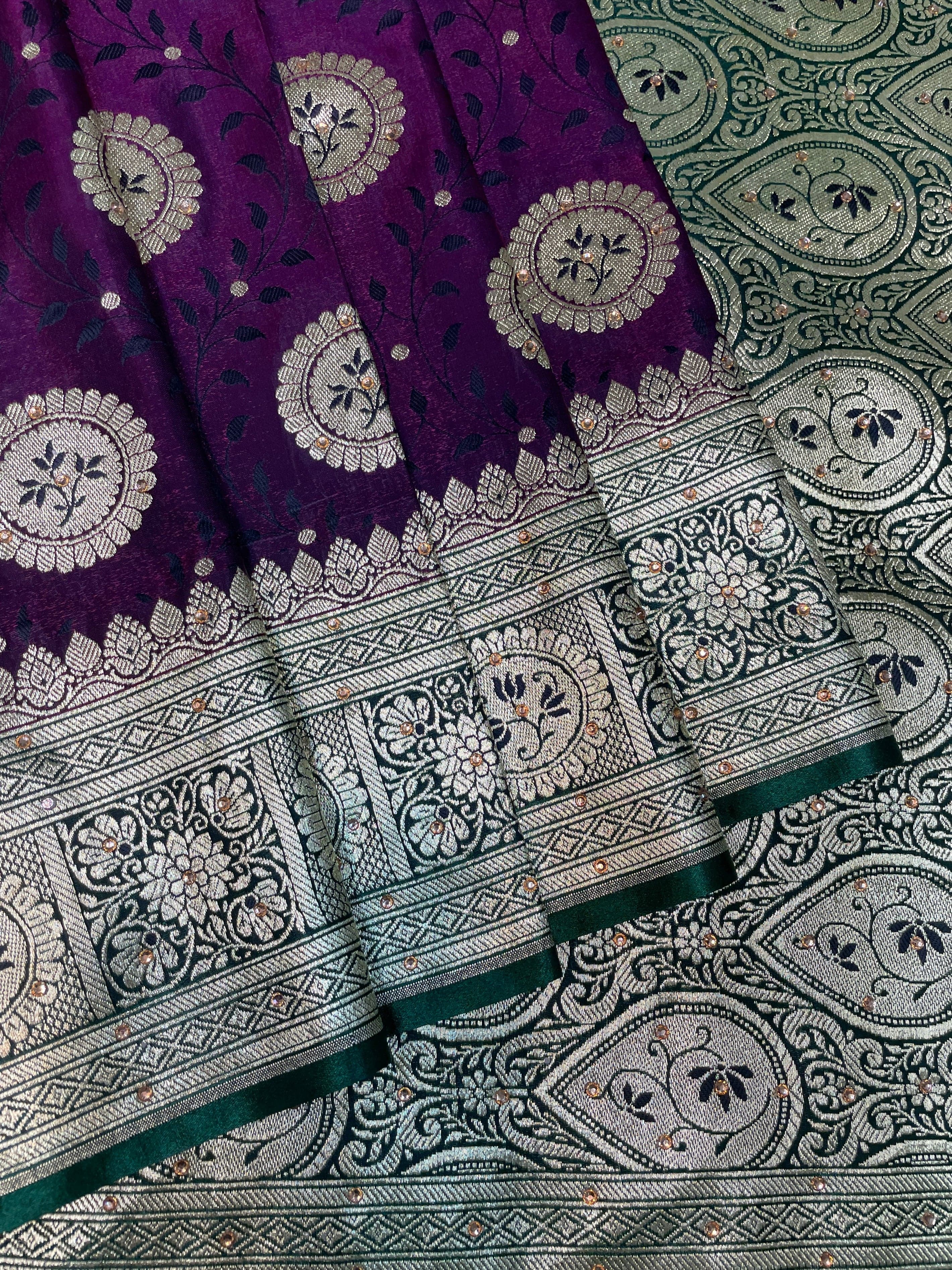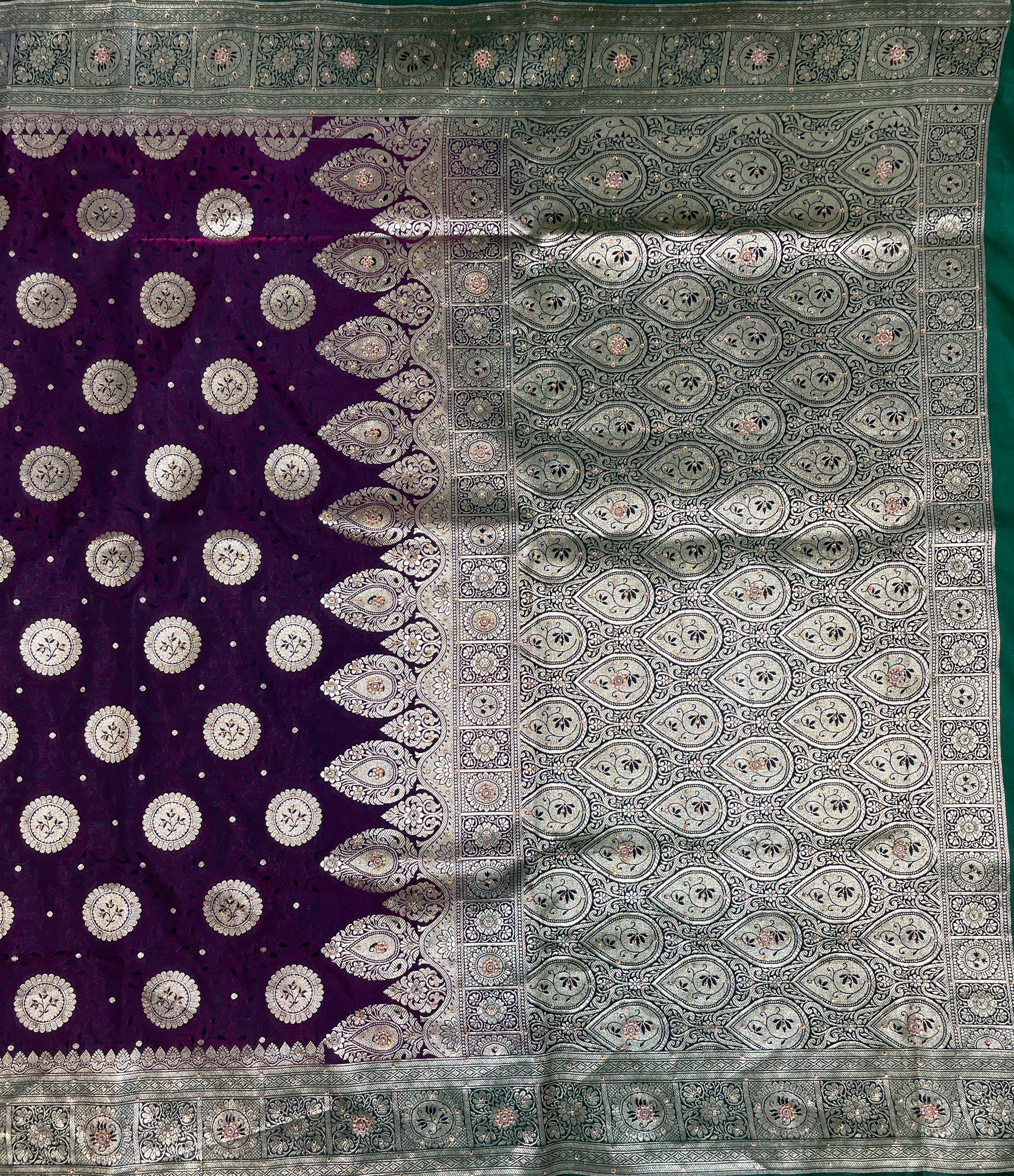 Dark Purple Katan Banarasi Saree with Silver Zari Floral Weaving And Grand Pallu B0640ds