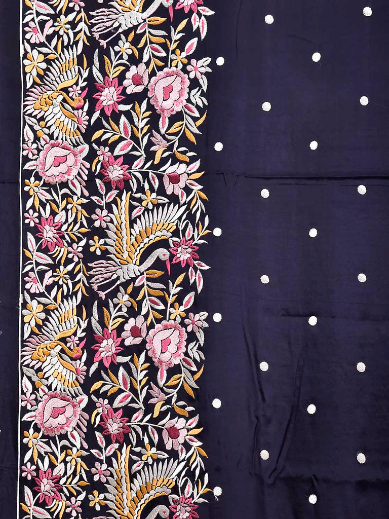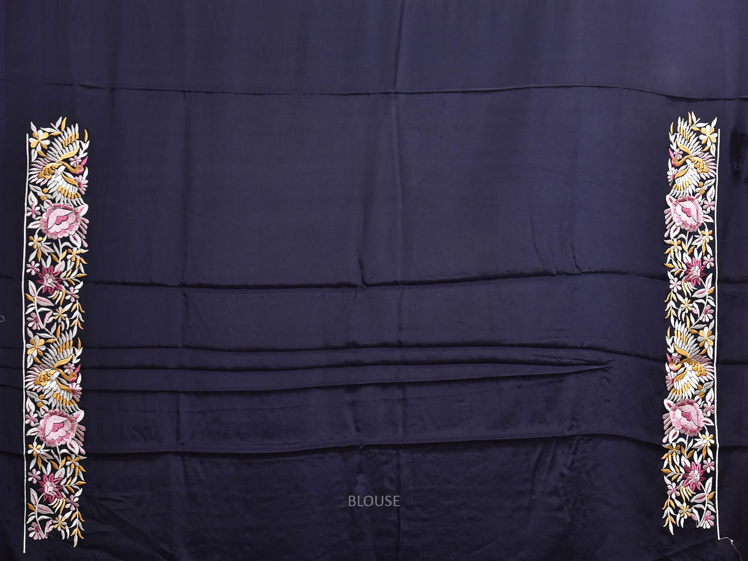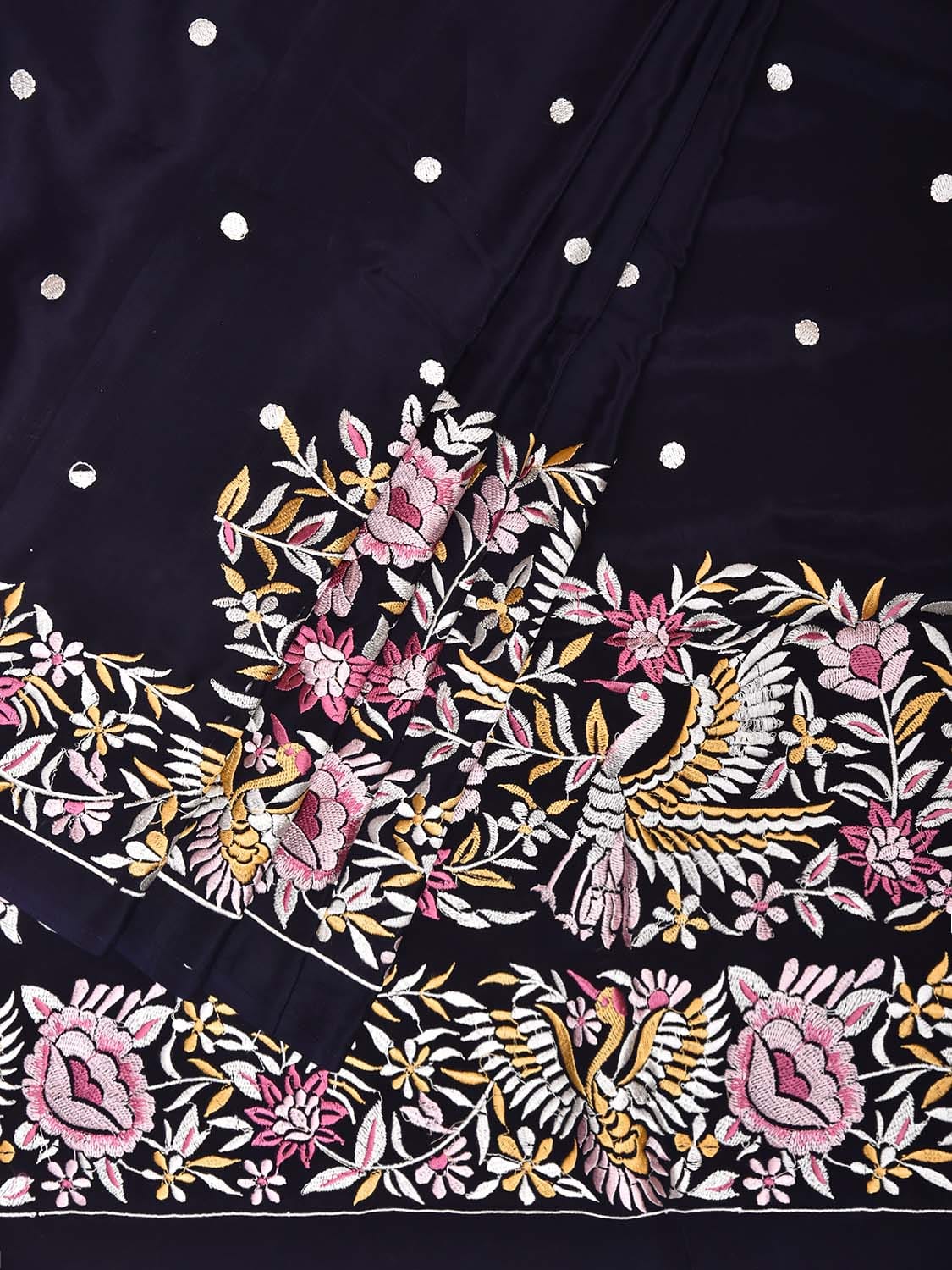 Navy Parsigara Crepe Saree with Birds Pallu and Border Design. For fabric care we advise dry clean.