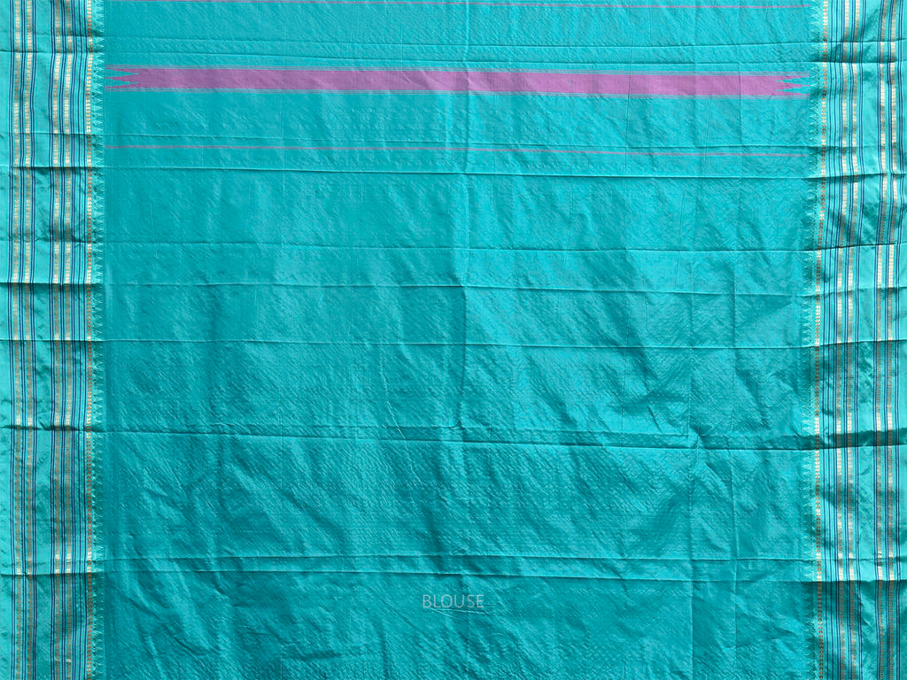 Pink and Light Blue Narayanpet Silk Saree with Checks and Contrast Pallu Design