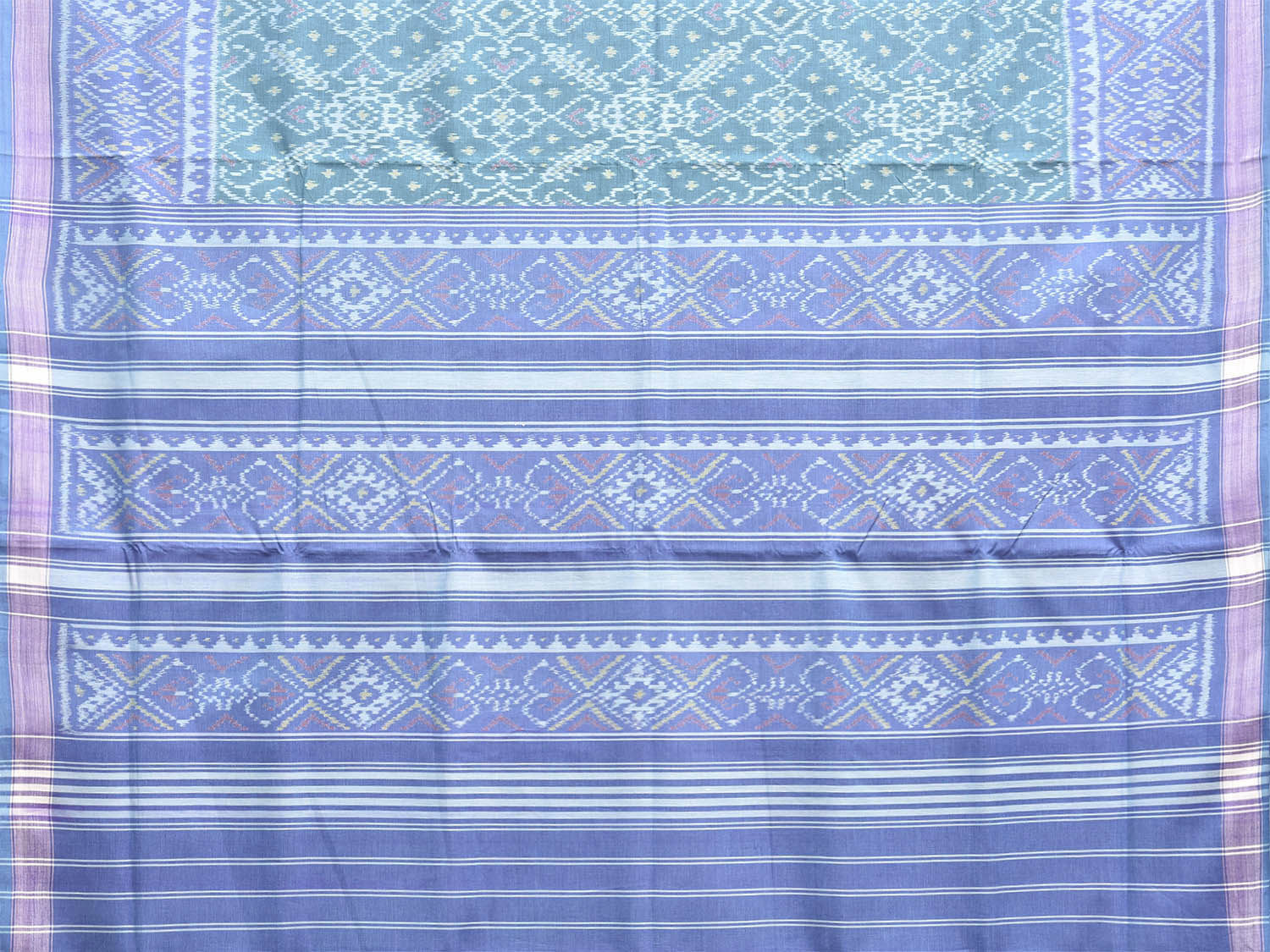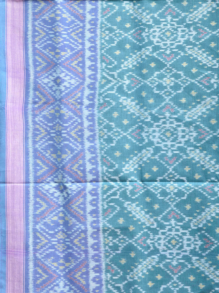 Teal and Lavender Ikat Cotton Handloom Saree with All Over Grill Design. This Handloom Saree from Andhra Pradesh has been woven using the resist-dyeing, which produces the unique patterns adorning the fabric. We advise gentle handwash separately for fabric care.