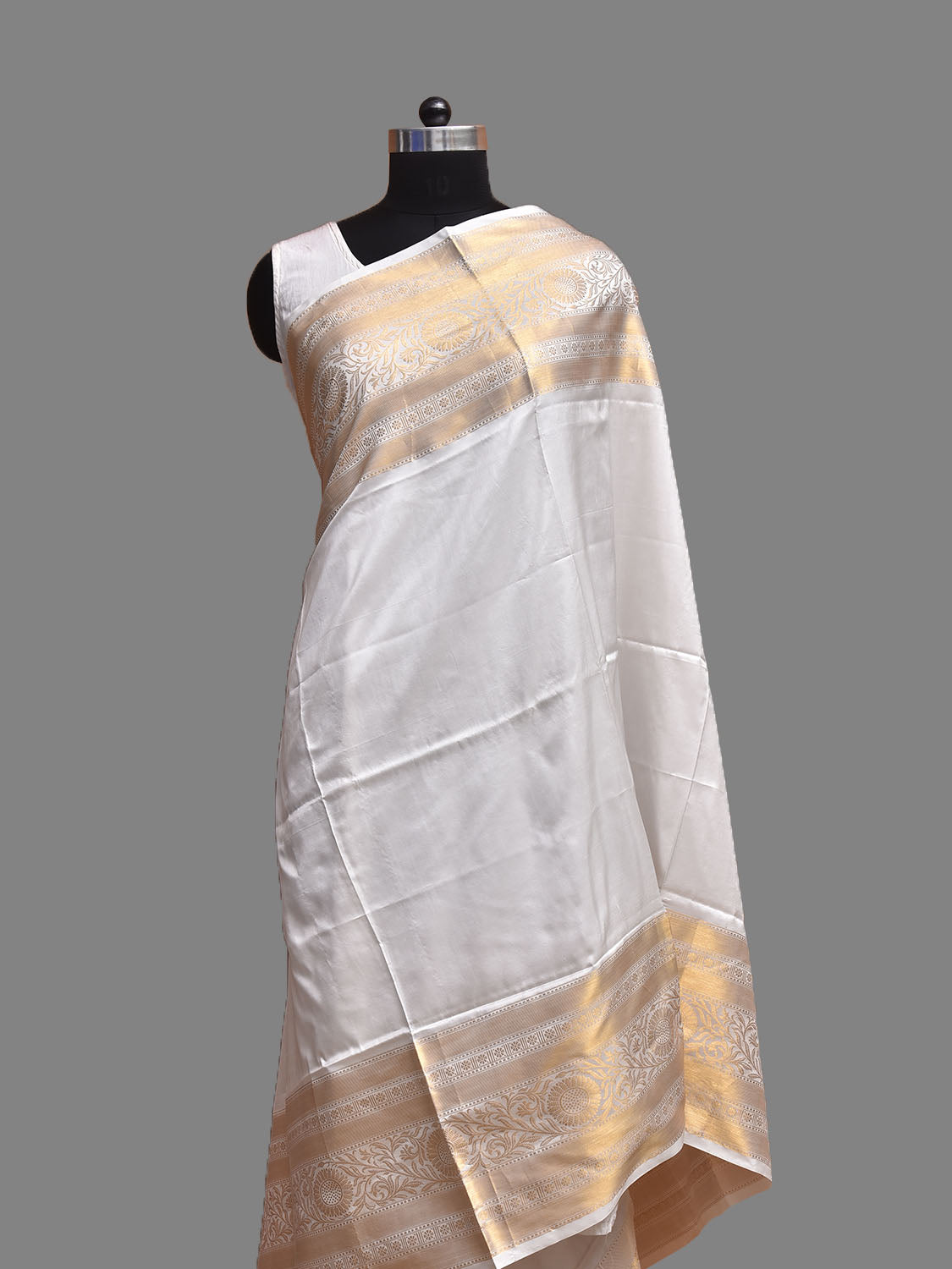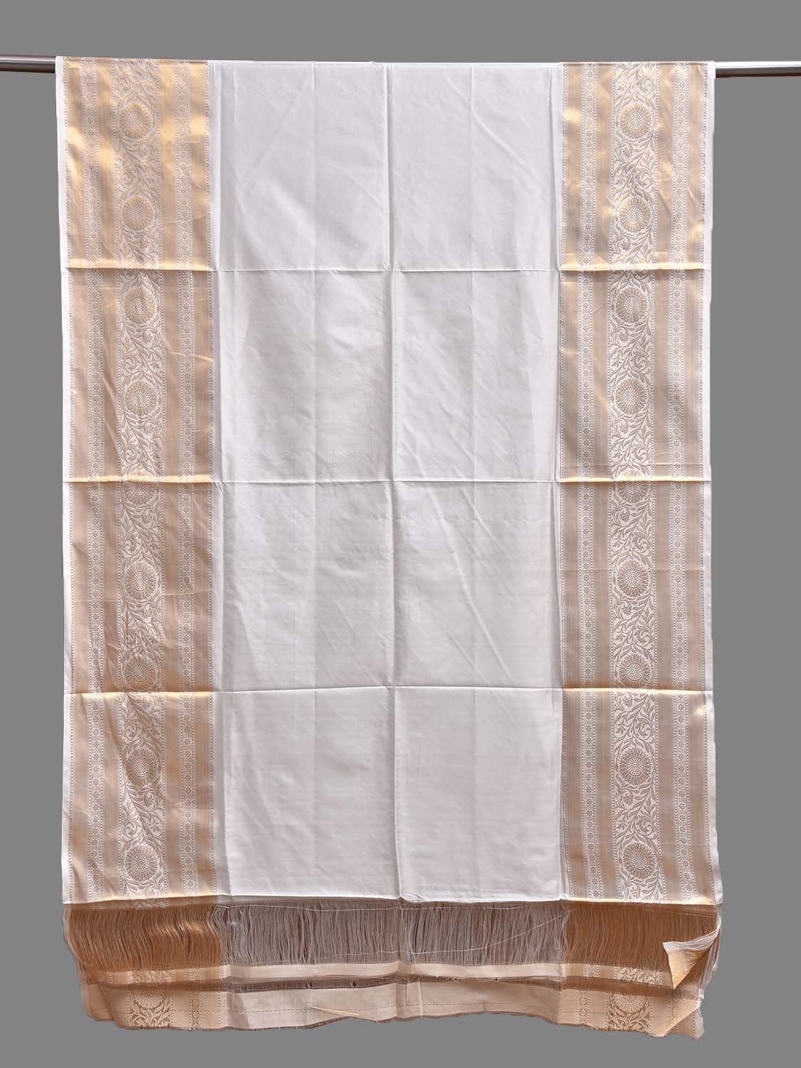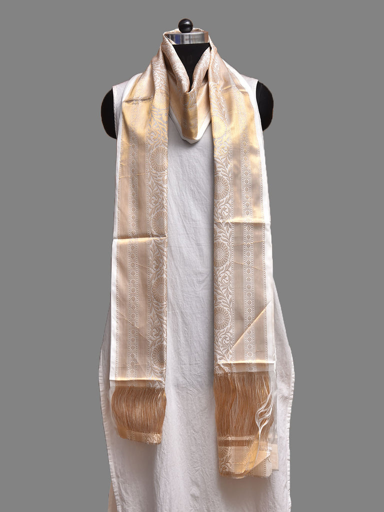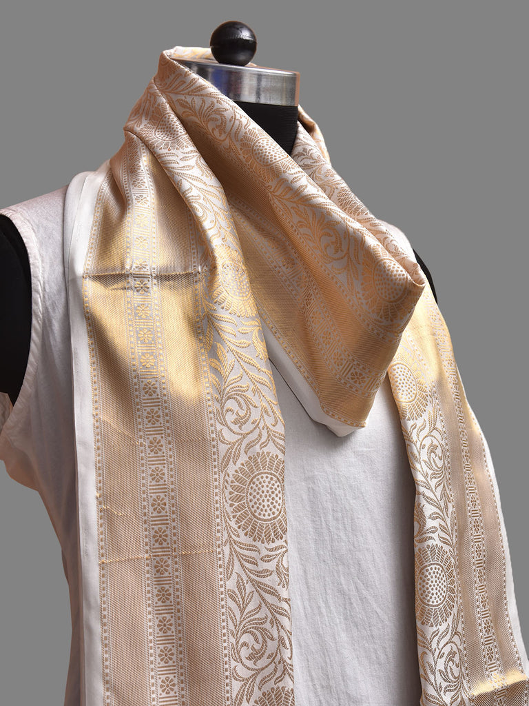 White Kanchipuram Silk Handloom Dupatta with Border Design. For fabric care we advise dry clean only.