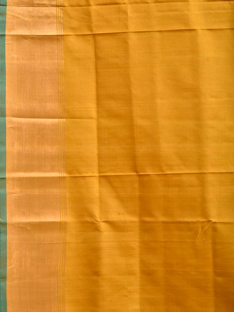 Yellow and Green Uppada Silk Handloom Plain Saree with Contrast Pallu Design