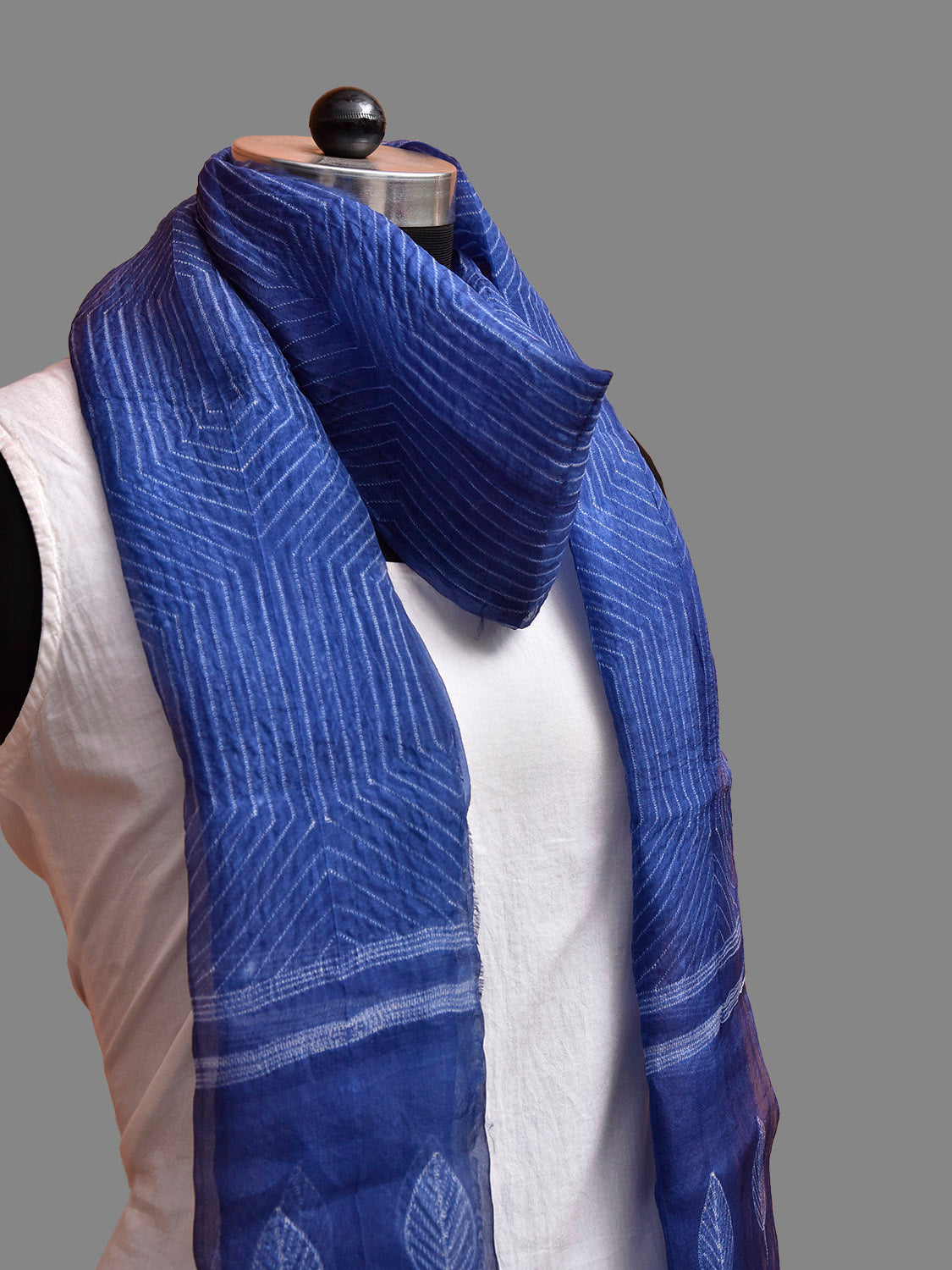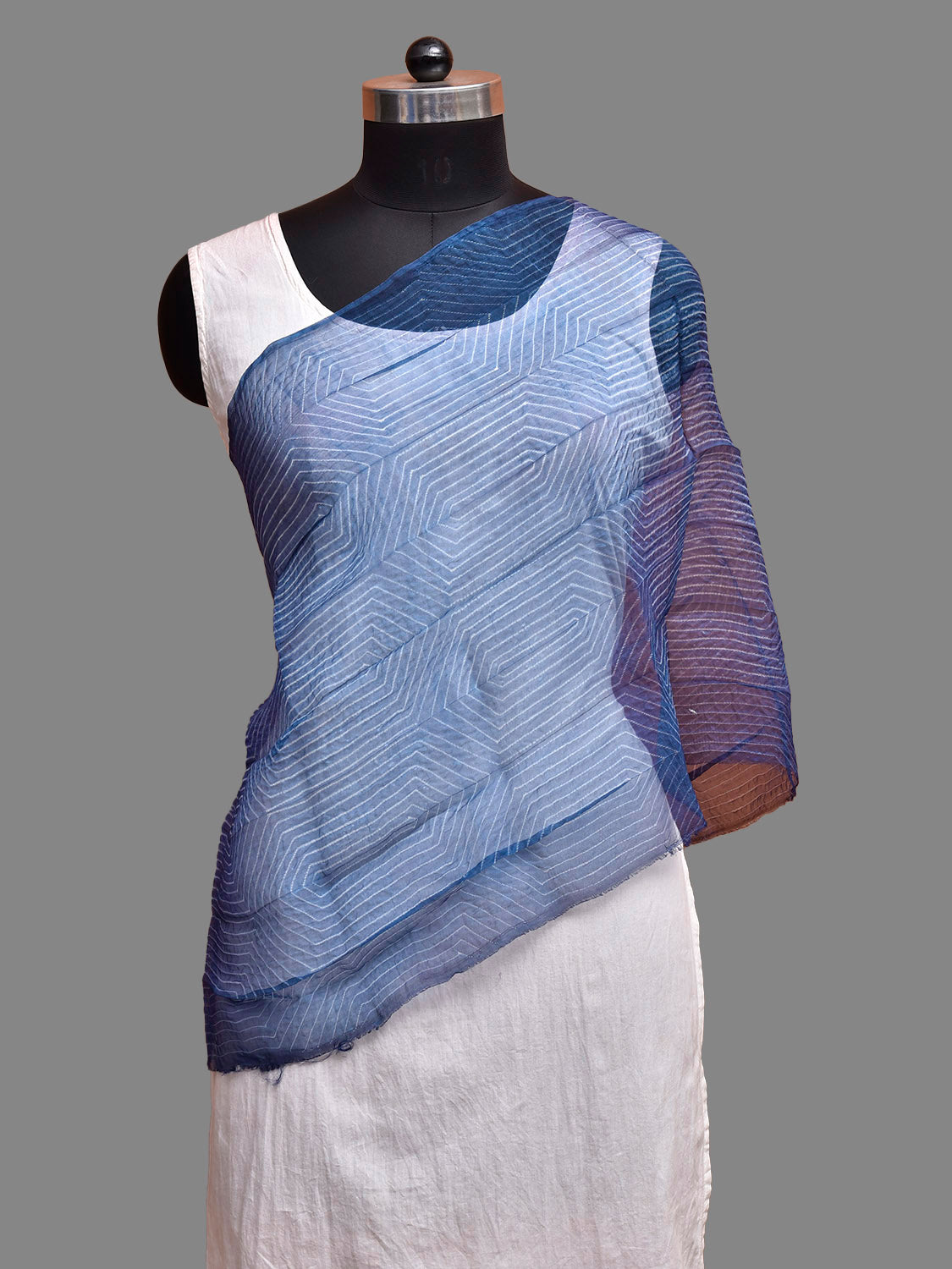 Blue Shibori Cotton Organza with Hexagonal Design. Shibori is Japanese a Technique of tie and dye, and resist some parts by clamping or stitching the fabric. The result produced are unique geometric patterns & any other eloborate design. For fabric care we advise dry clean.