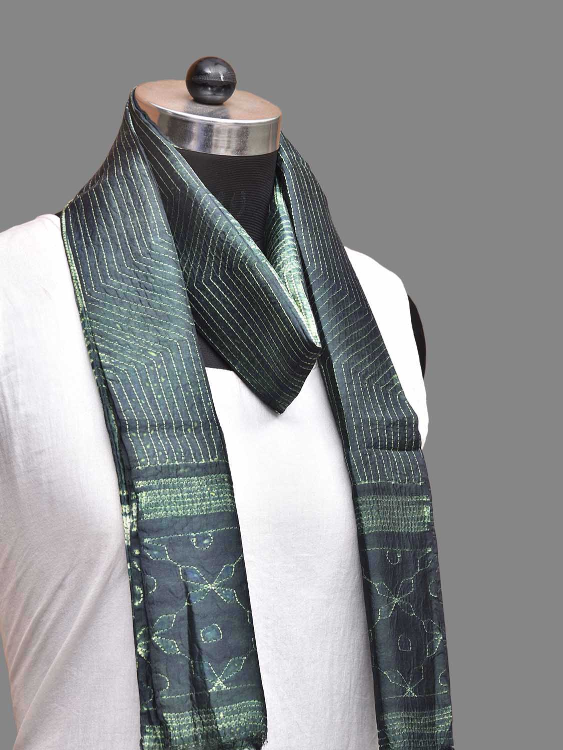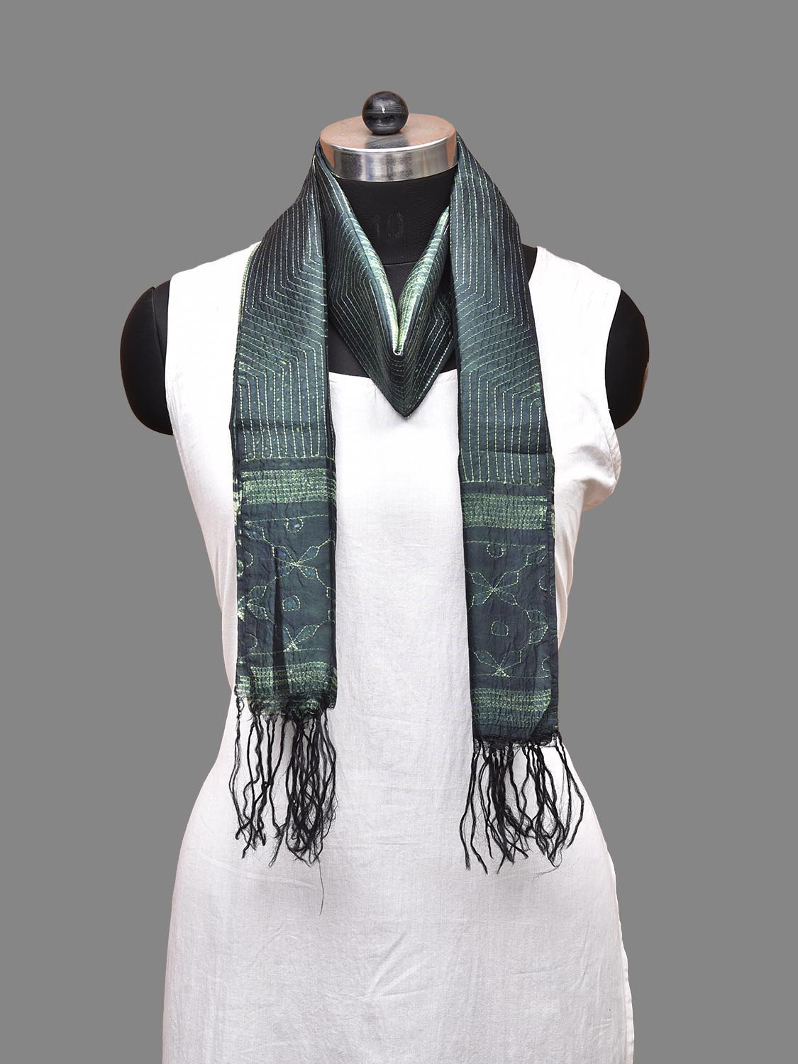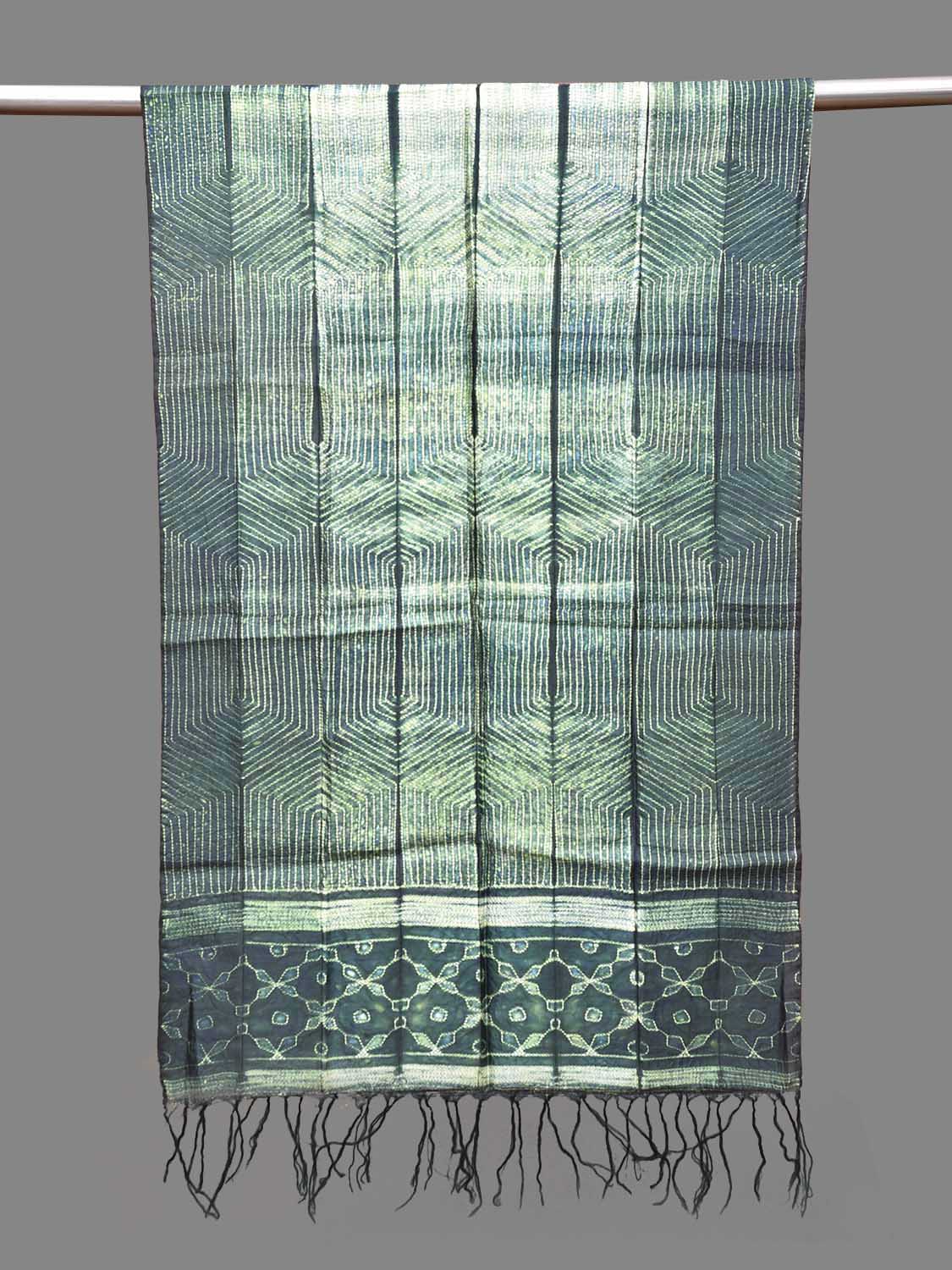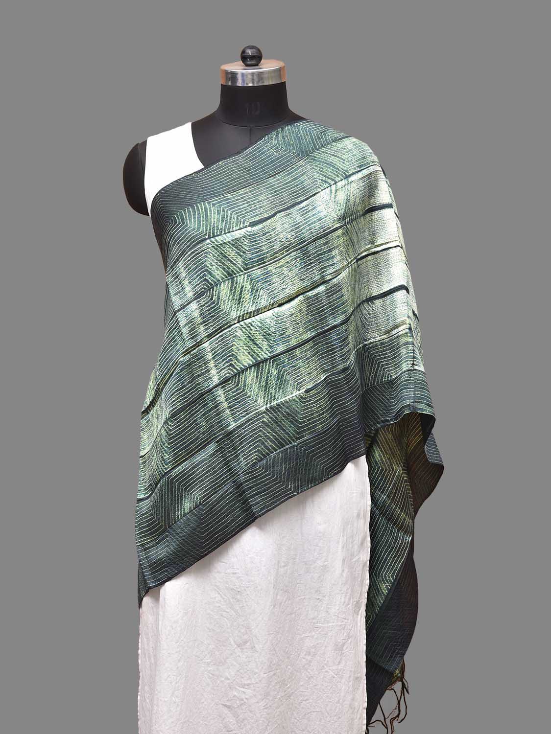 Dark Green Shibori Silk Stole with Hexagonal Design ds4050