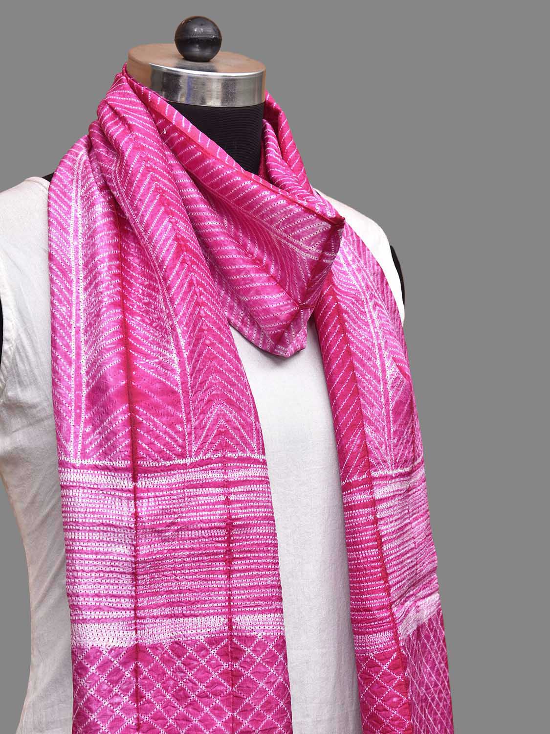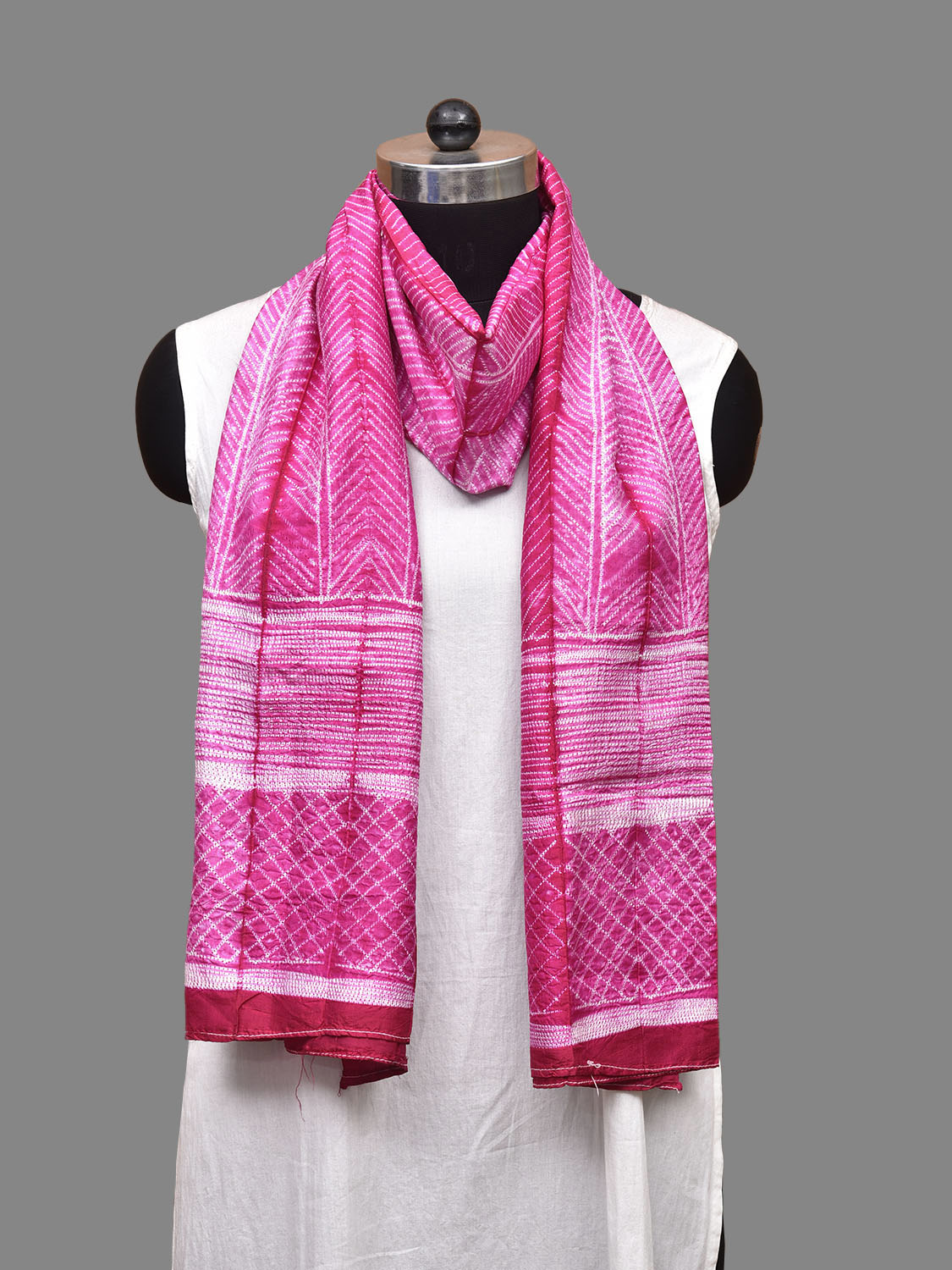 Pink Shibori Sico Stole with Zig-Zag Design ds4033