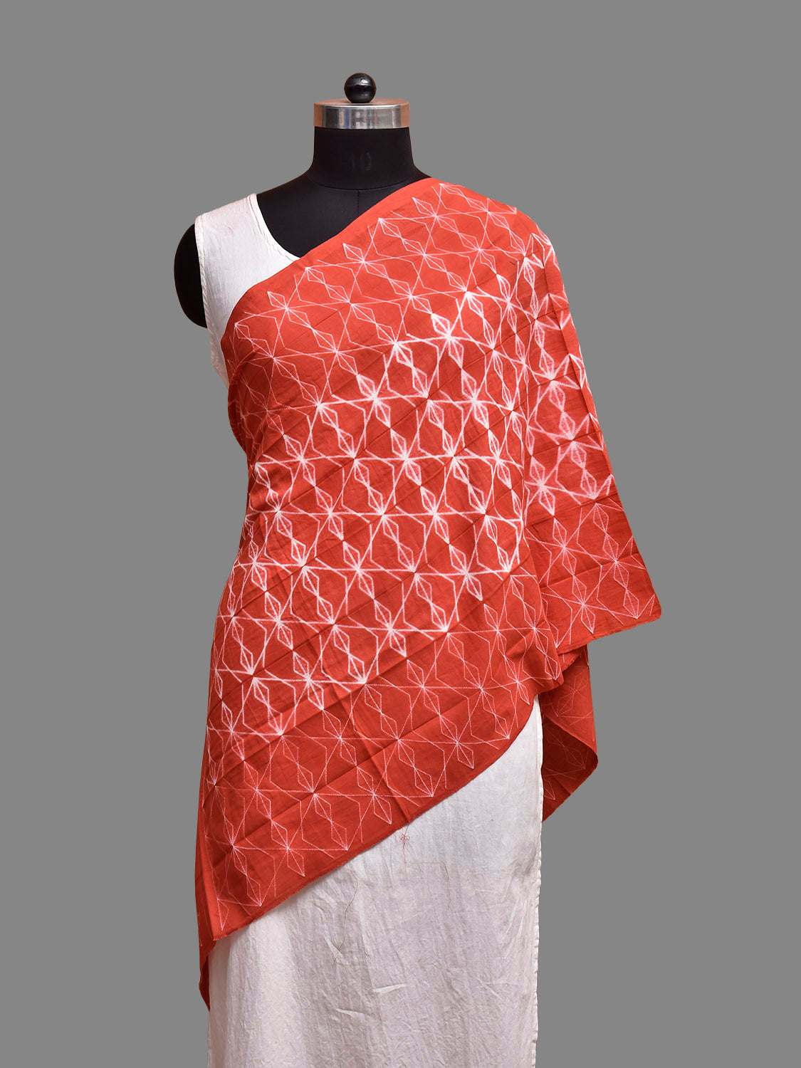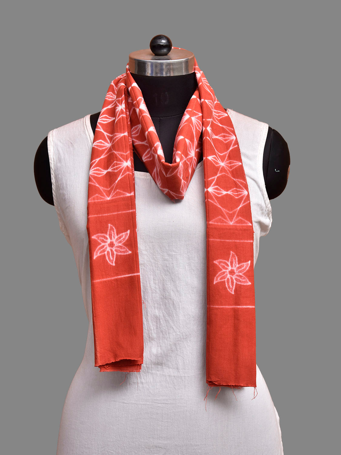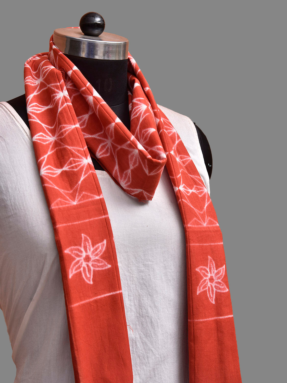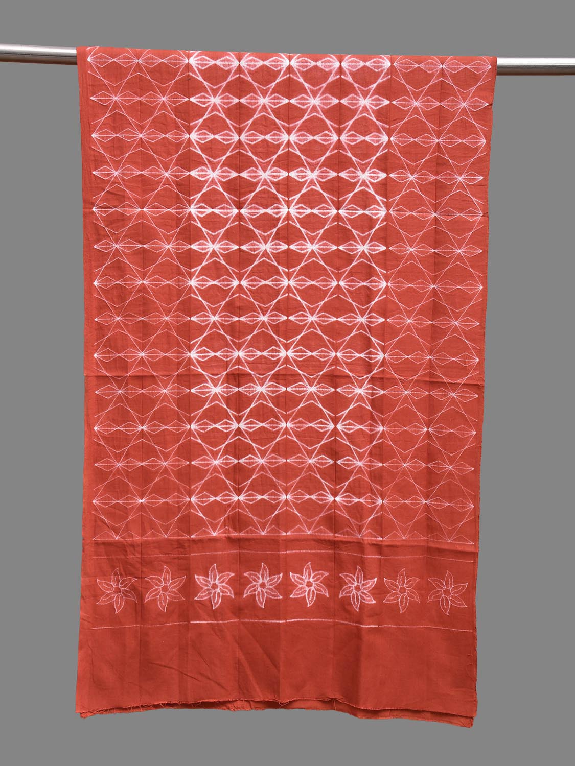 Rust Shibori Cotton Stole with All Over and Floral Design. Shibori is Japanese a Technique of tie and dye, and resist some parts by clamping or stitching the fabric. The result produced are unique geometric patterns & any other eloborate design. For fabric care we advise gentle handwash separately.