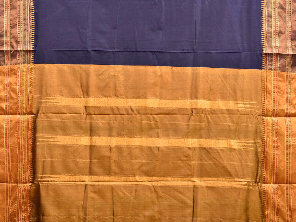 Navy and Mustard Narayanpet Silk Plain Saree with Contrast Pallu Design No Blouse. This saree has no blouse.