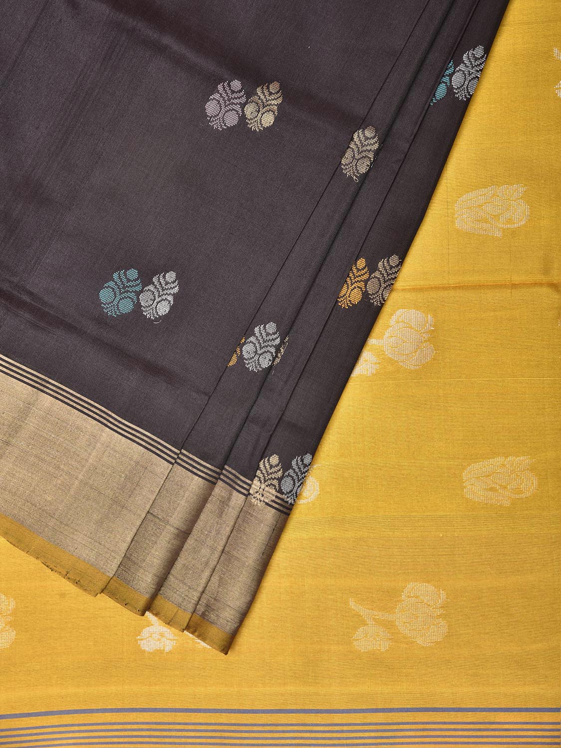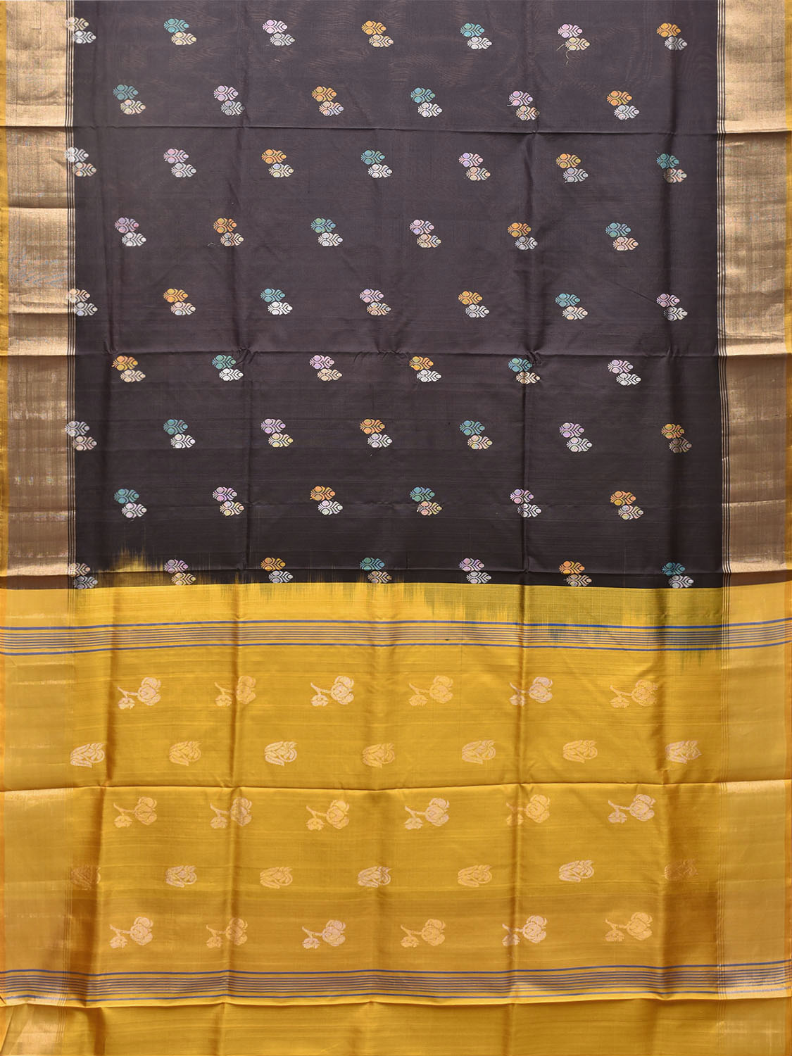 Black and Yellow Uppada Pure Silk Handloom Saree with Body Buta Design