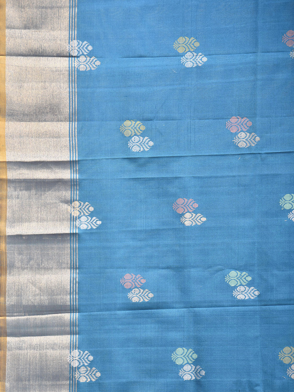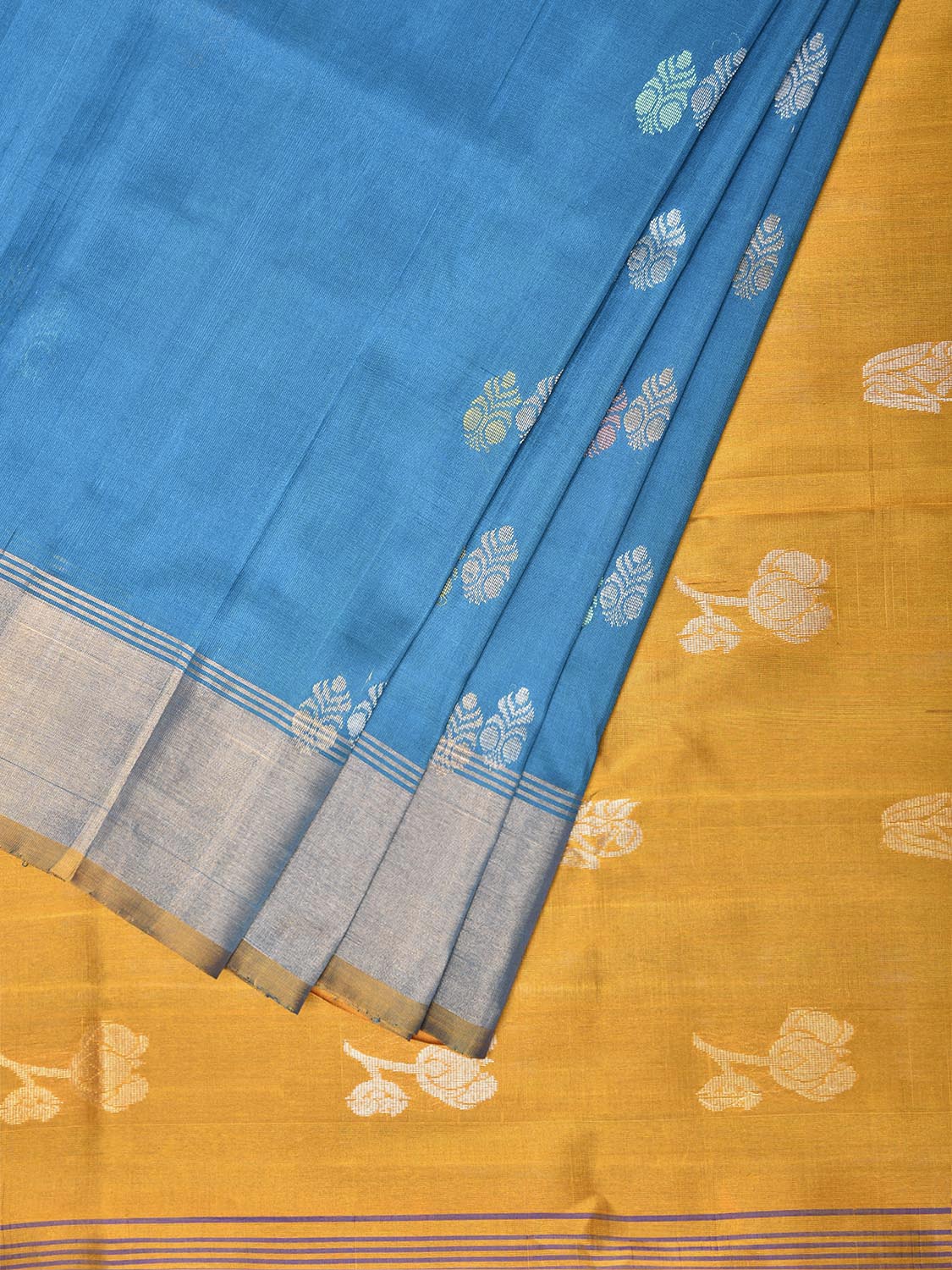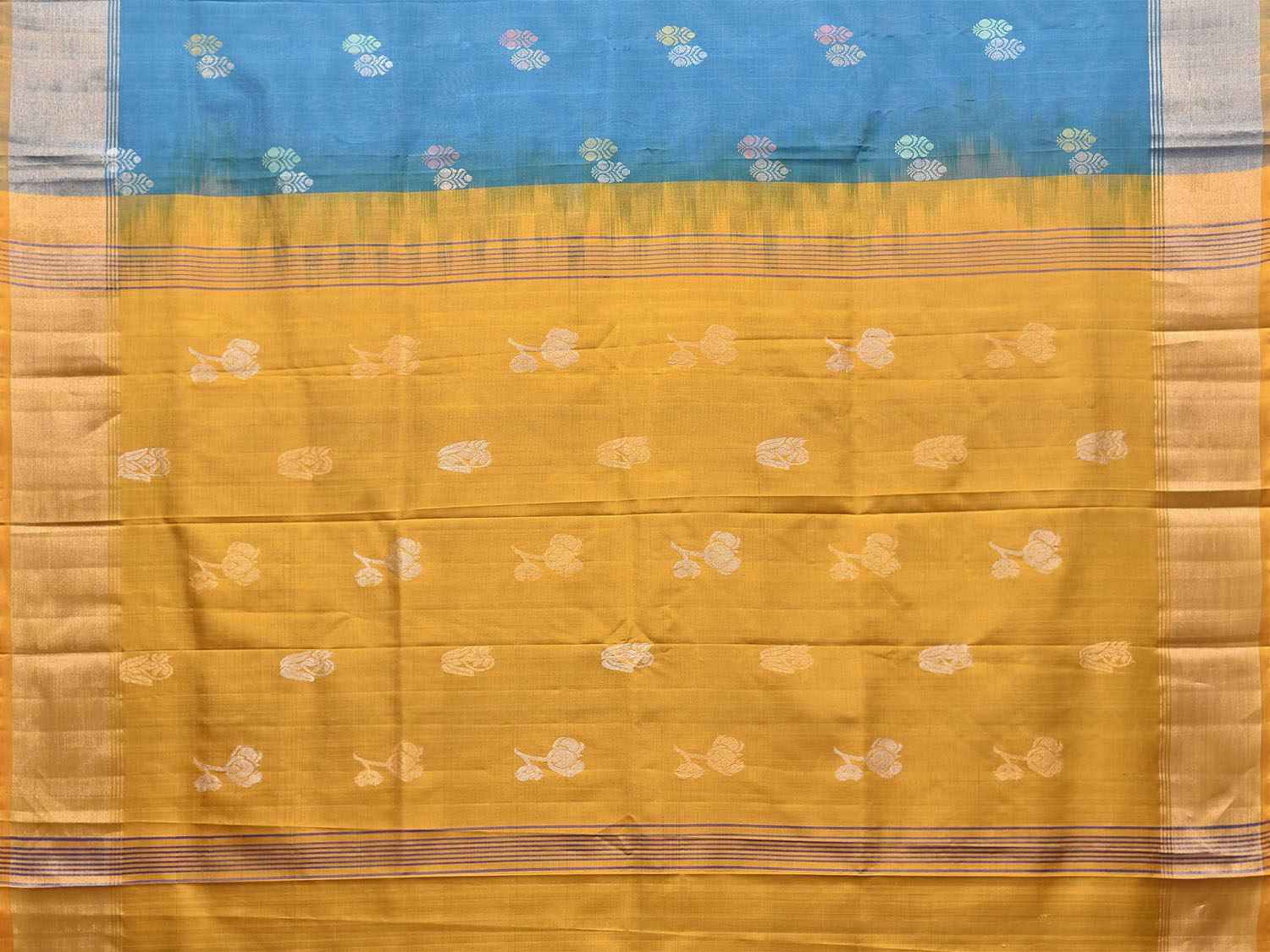 Blue and Yellow Uppada Pure Silk Handloom Saree with Body Buta Design