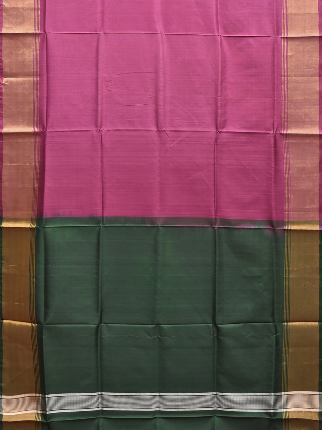 Dark Pink and Green Uppada Pure Silk Plain Handloom Saree with Contrast Pallu Design