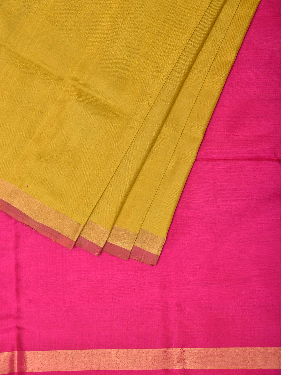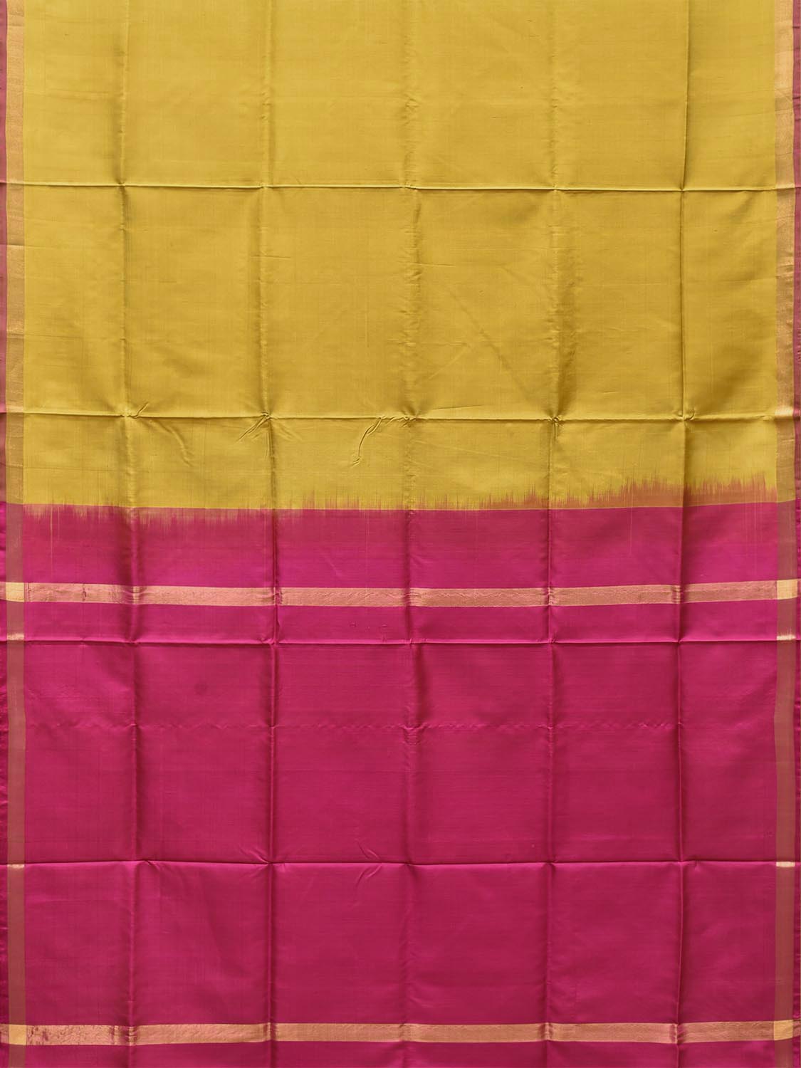 Mustard and Pink Uppada Pure Silk Handloom Plain Saree with Contrast Pallu Design u2597