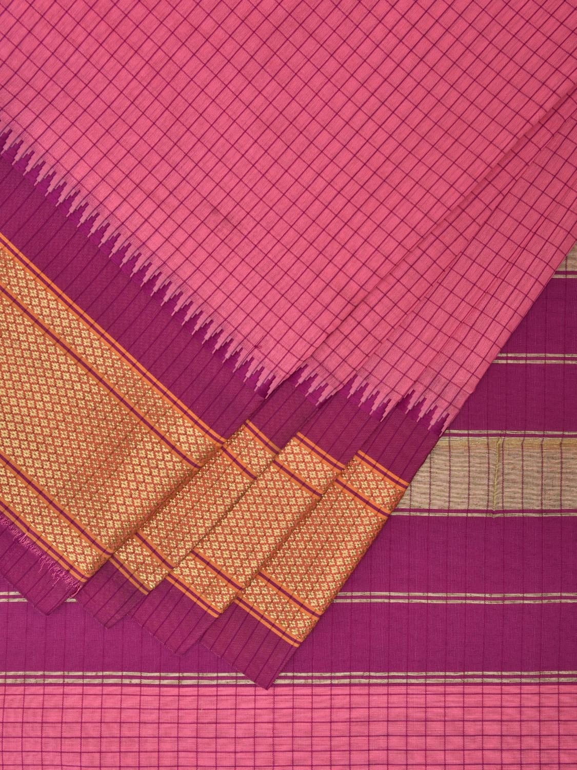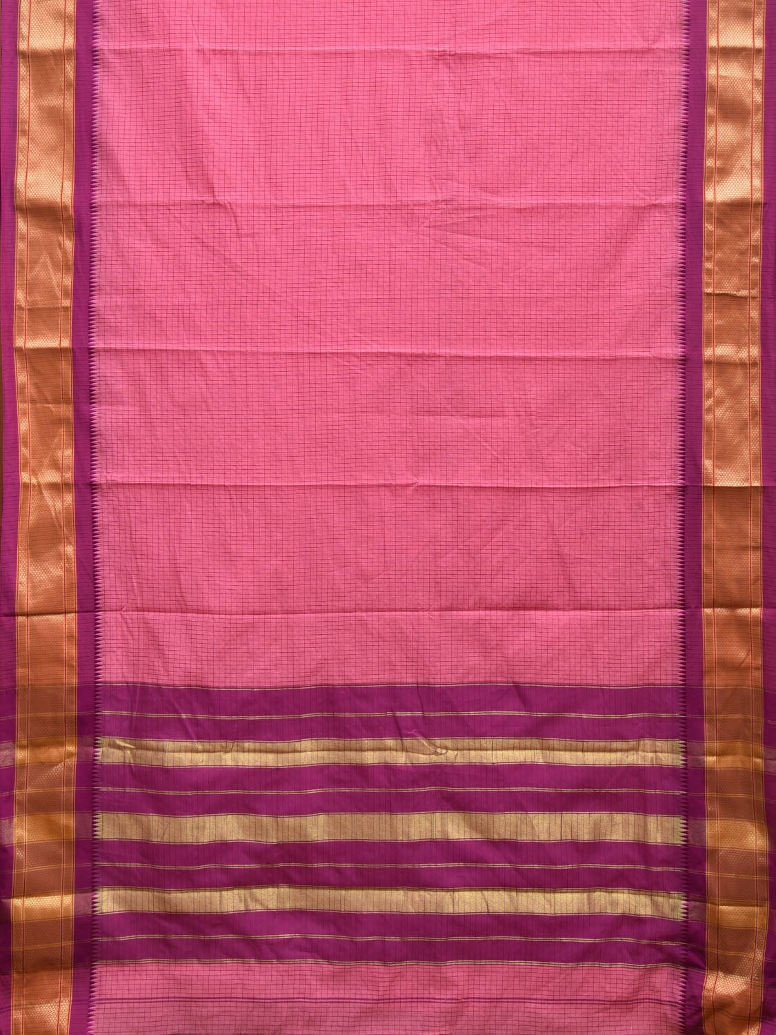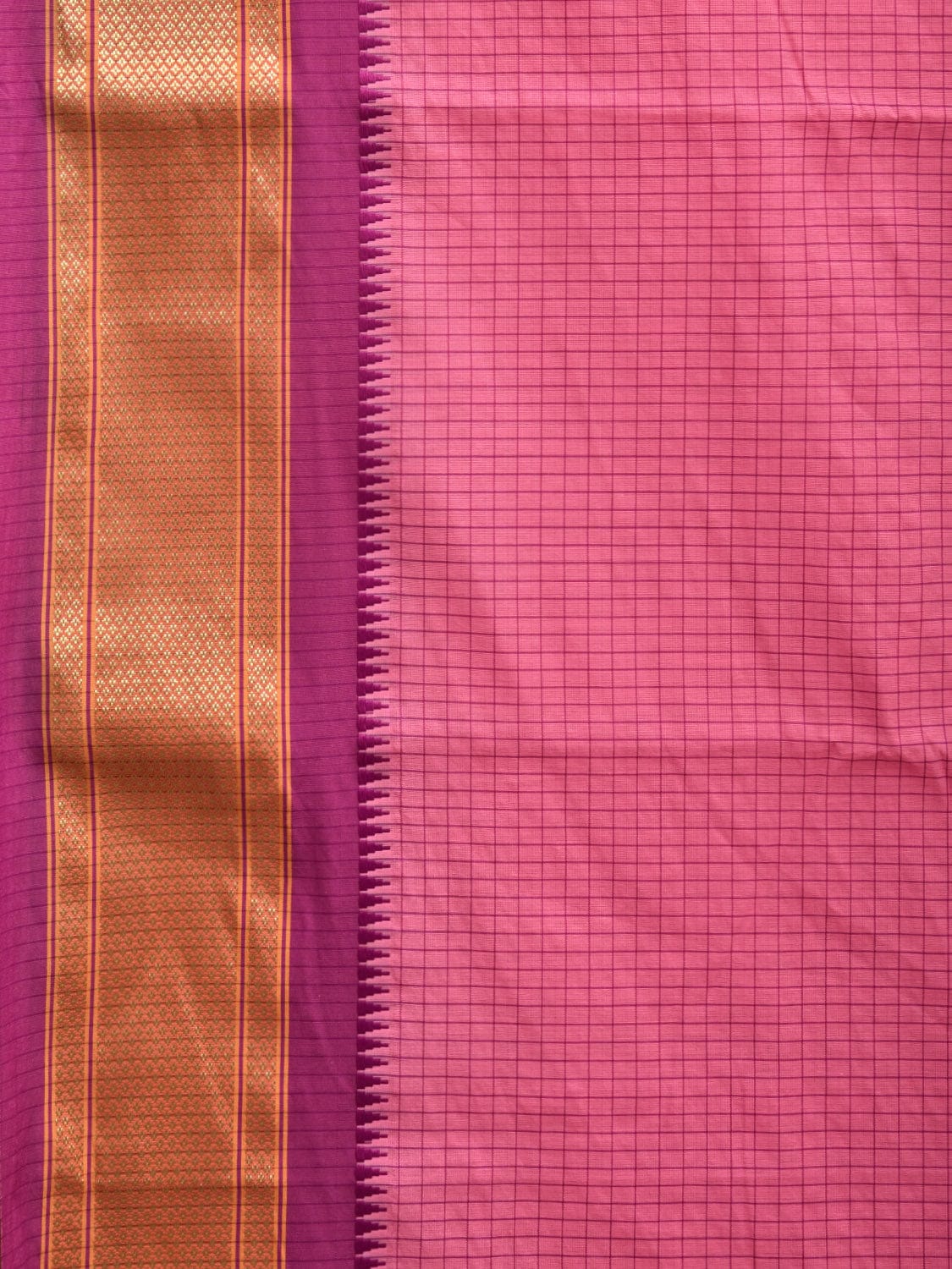 Baby Pink and Pink Bamboo Cotton Saree with Checks Design No Blouse. This is a blend of bamboo and cotton fibers, they have characteristics of both bamboo and cotton combined into one fabric. We Advise Gentle Handwash for Fabric Care. This Saree has no Blouse.