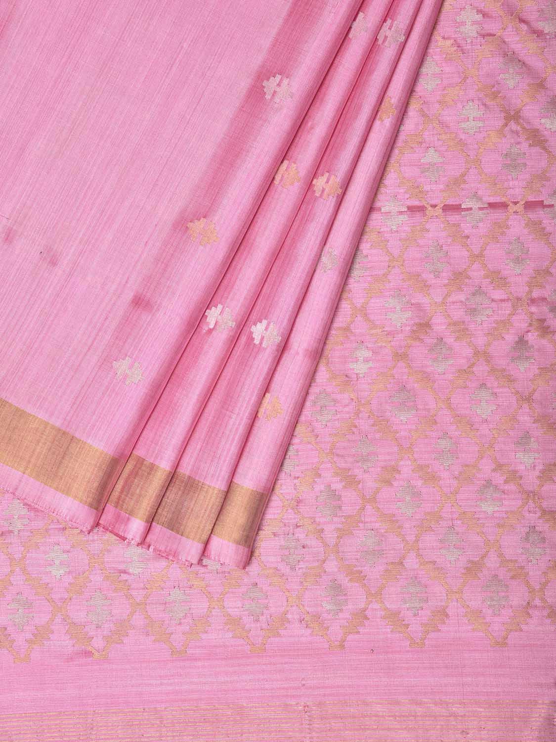 Baby Pink Uppada Pure Silk Handloom Saree with Jamdani Pallu Design. For fabric care we advise dry clean.