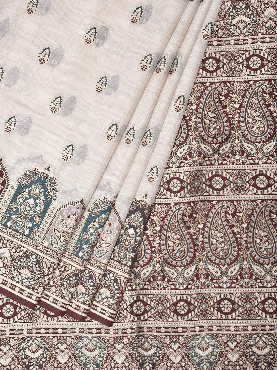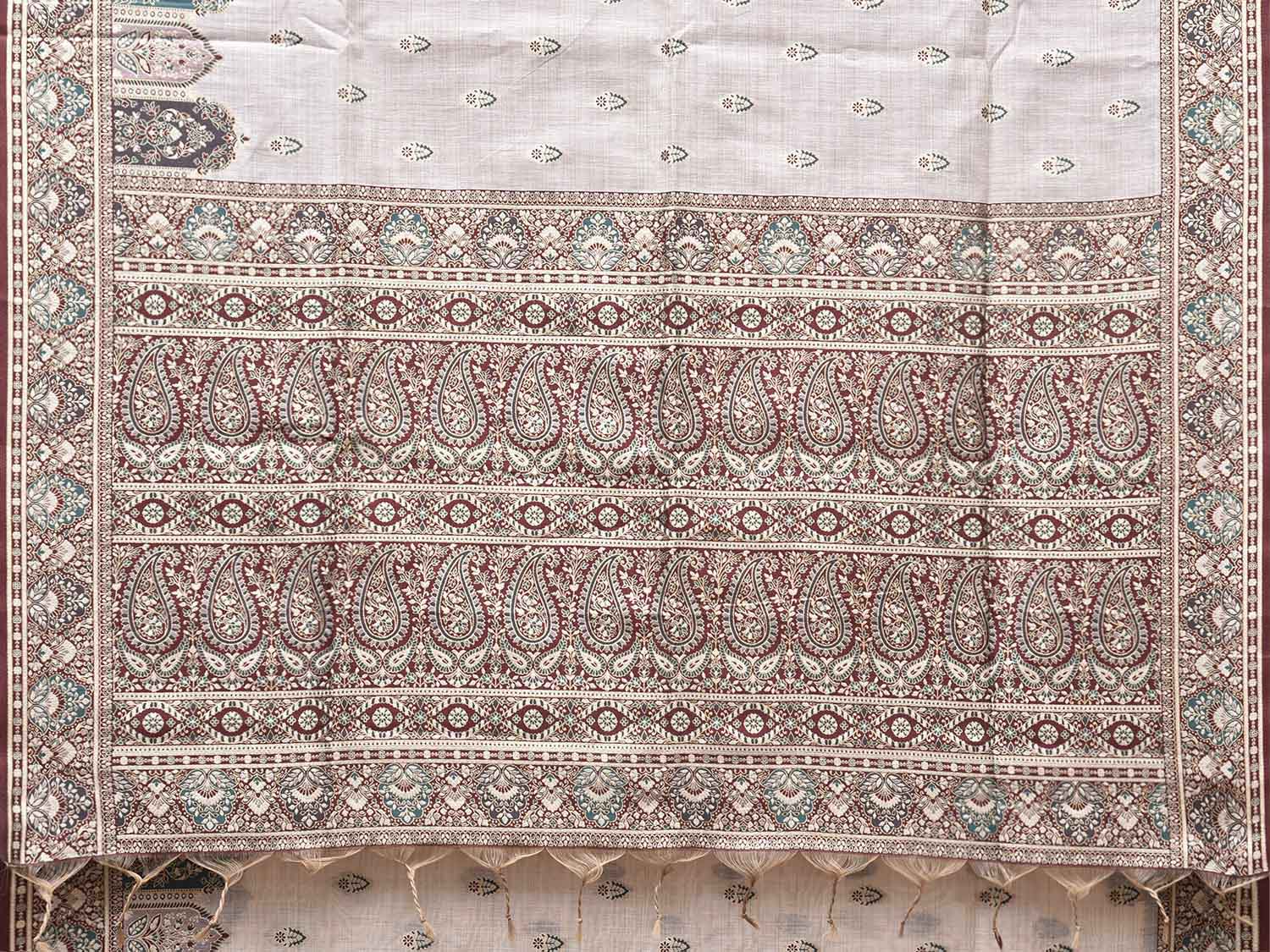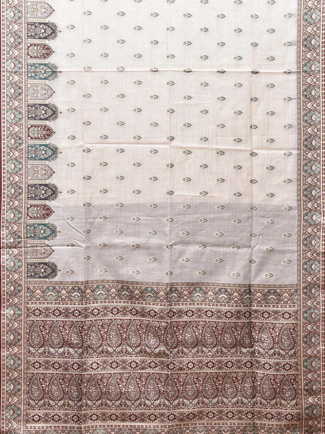 Beige and Maroon Banaras Cotton Viscose Saree with Pasley Pallu and Border Design b0350