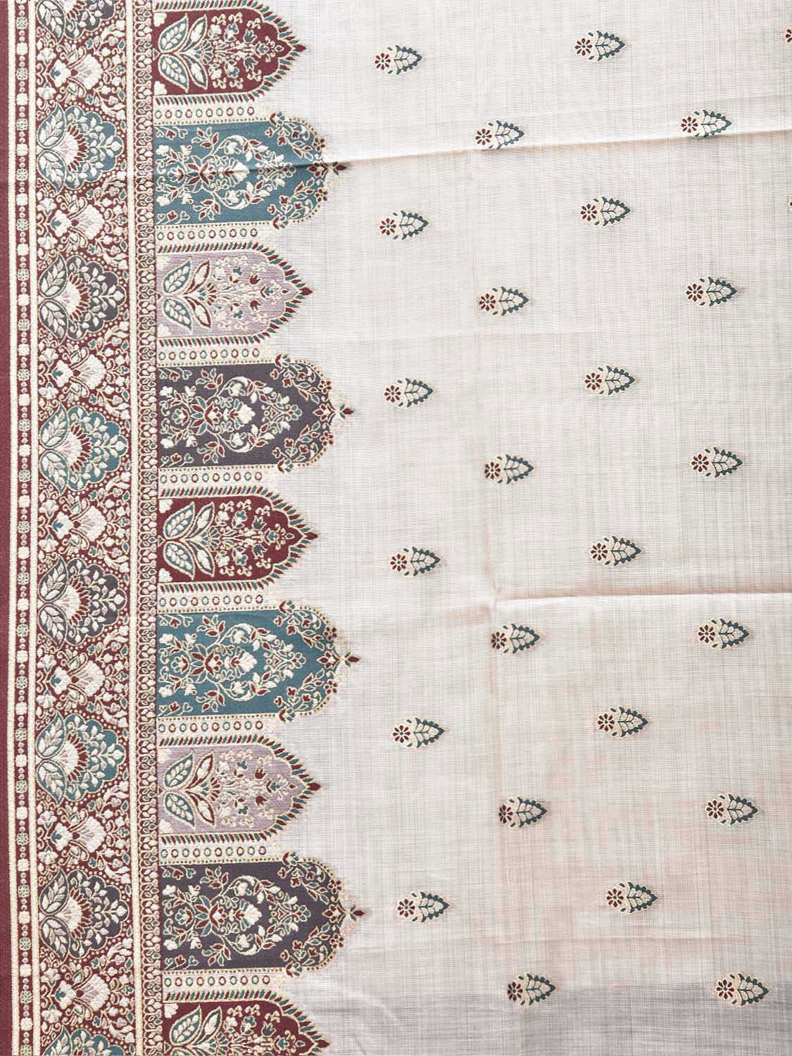 Beige and Maroon Banaras Cotton Viscose Saree with Pasley Pallu and Border Design. Banaras Sarees are considered one of finest sarees with gold or silver zari work, and colorful design makes it the saree for various occassions. For fabric care we advise dry clean.