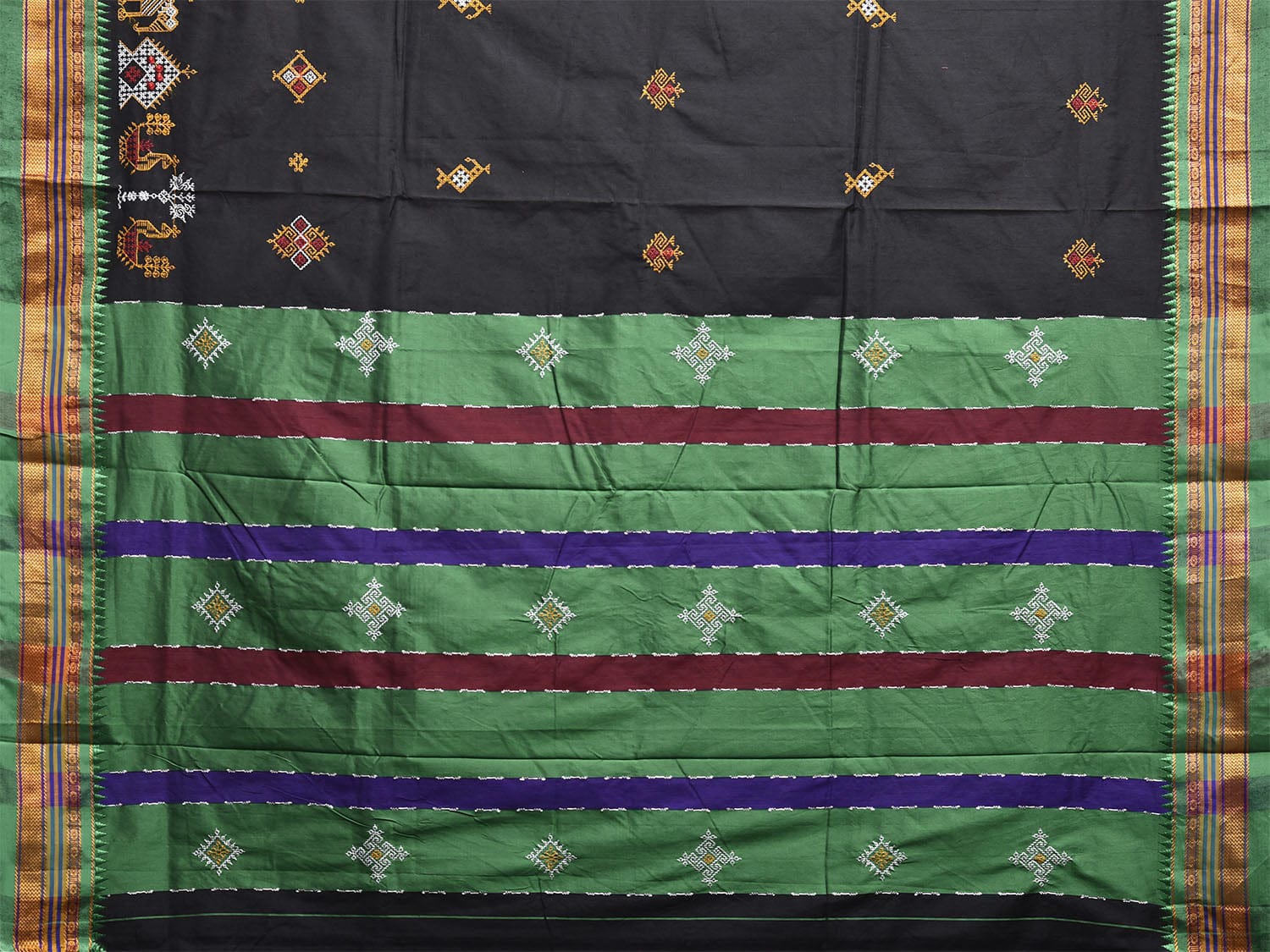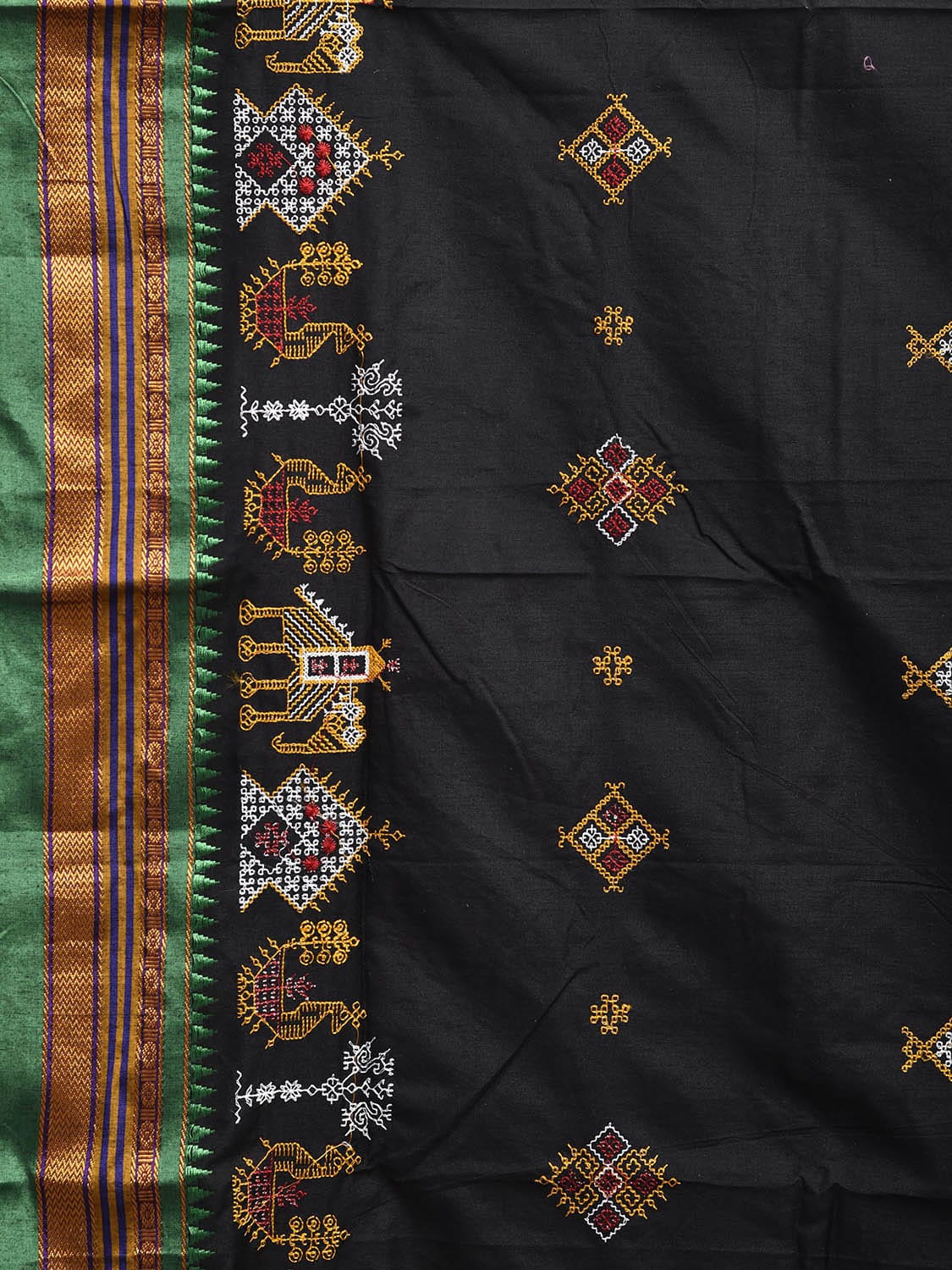 Black and Green Kasuti Work On ilkal Cotton Viscose Saree with Contrast Pallu Design No Blouse. For fabric care we advise gentle handwash separately. This saree has no blouse.