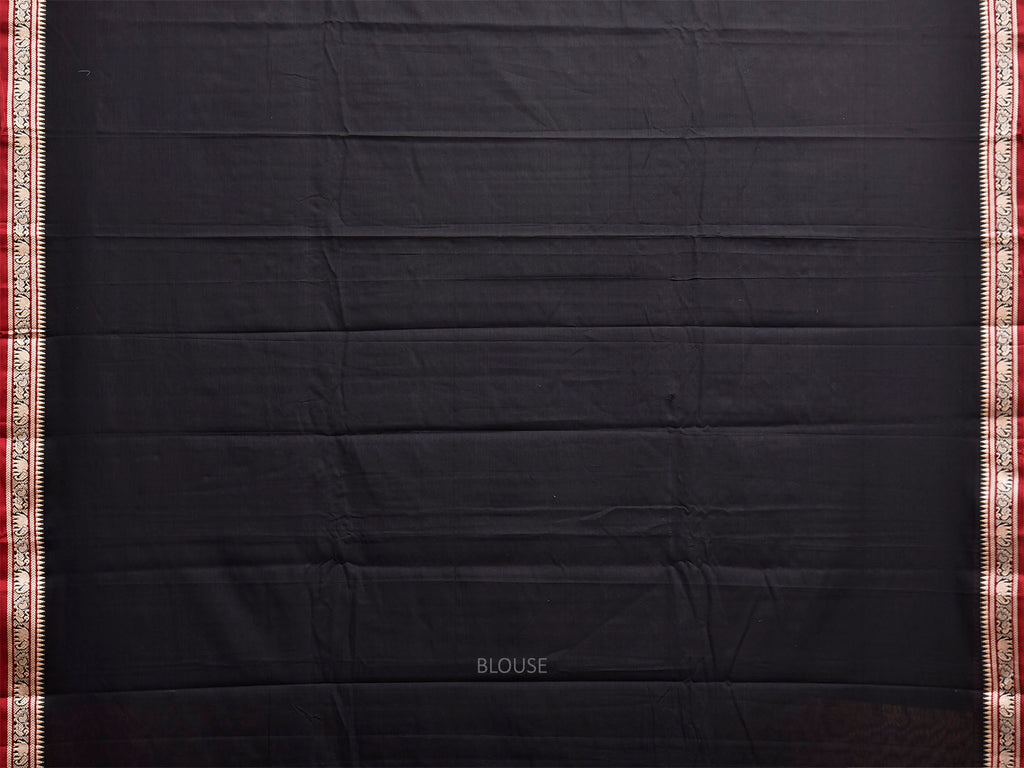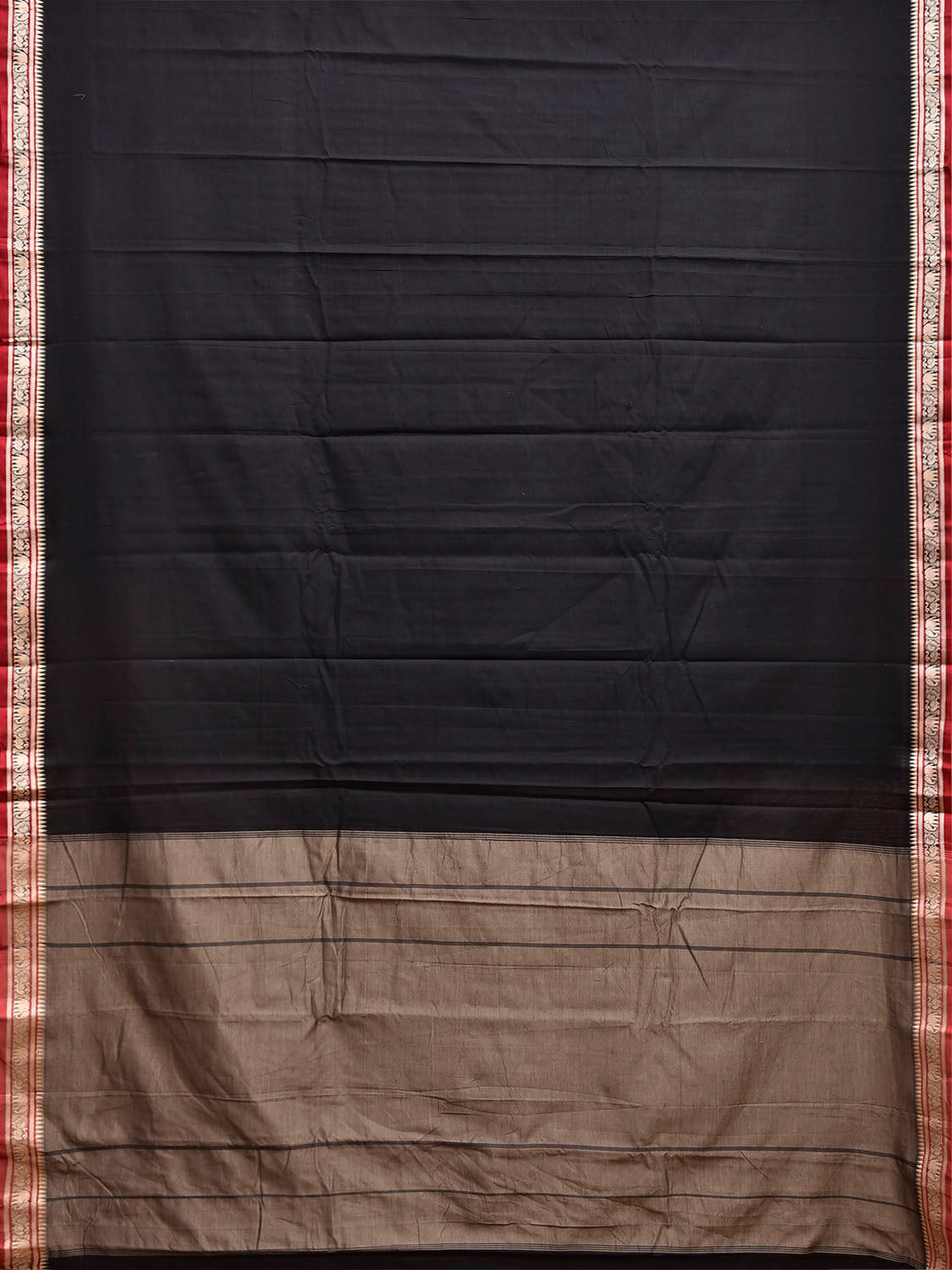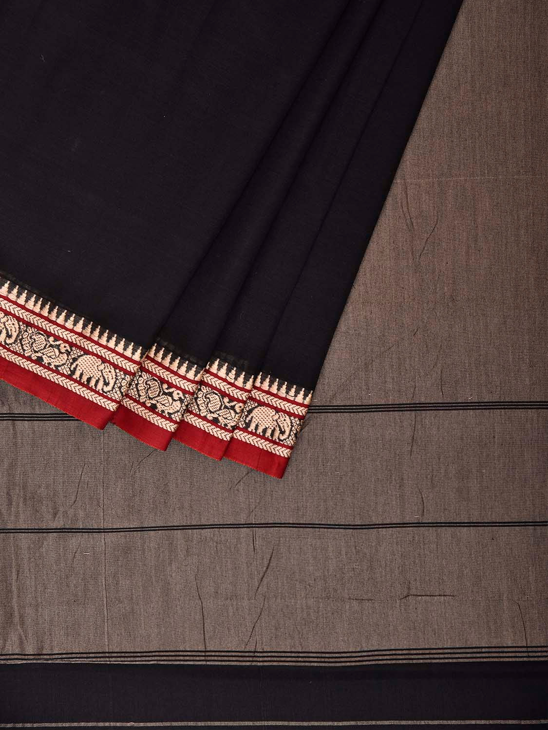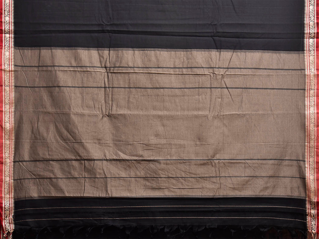 Black and Khaki Narayanpet Cotton Saree with Contrast Pallu Design.
