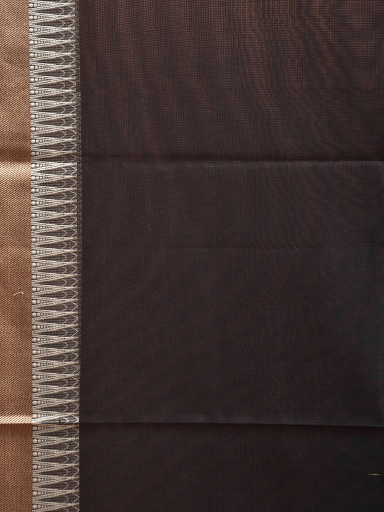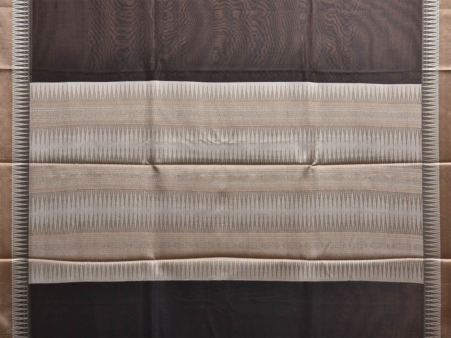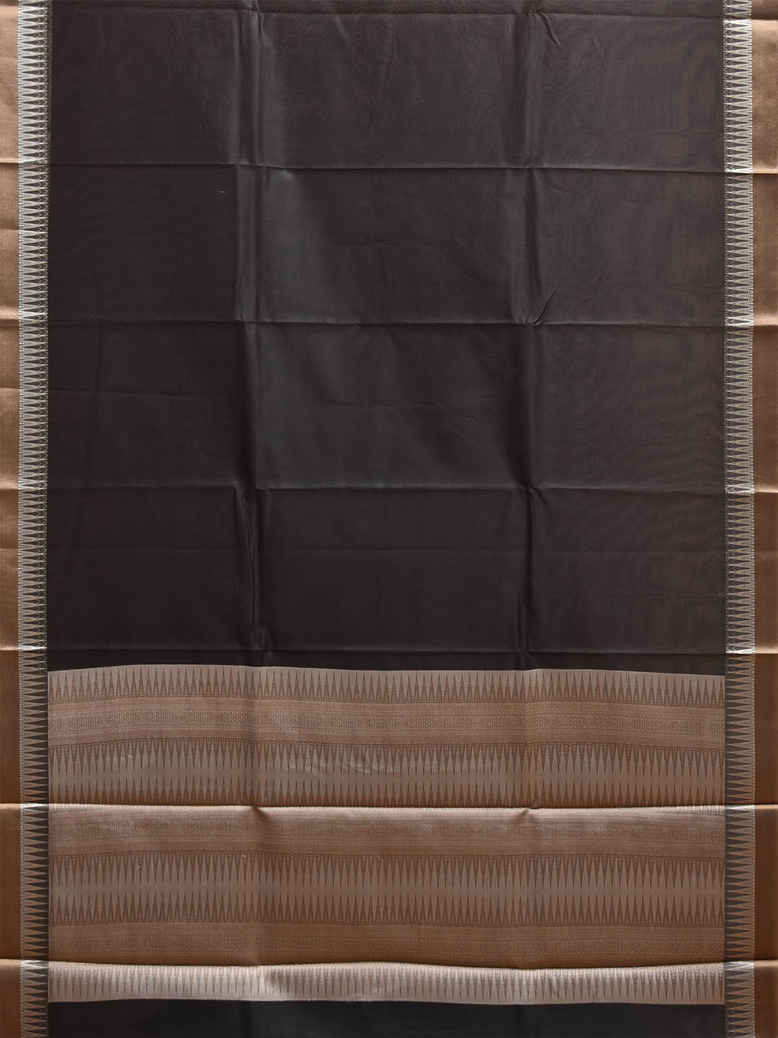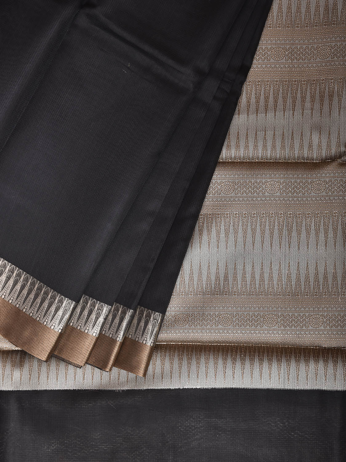 Black and Light Grey Dhakai Jamdani Viscose Plain Saree with Pallu and Temple Border Design dj0281