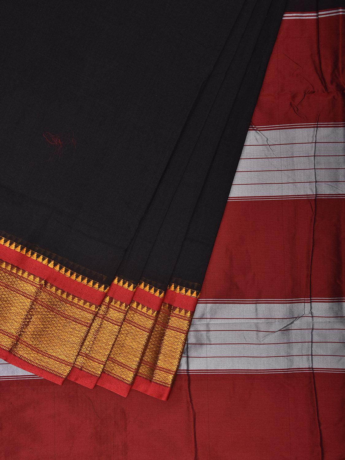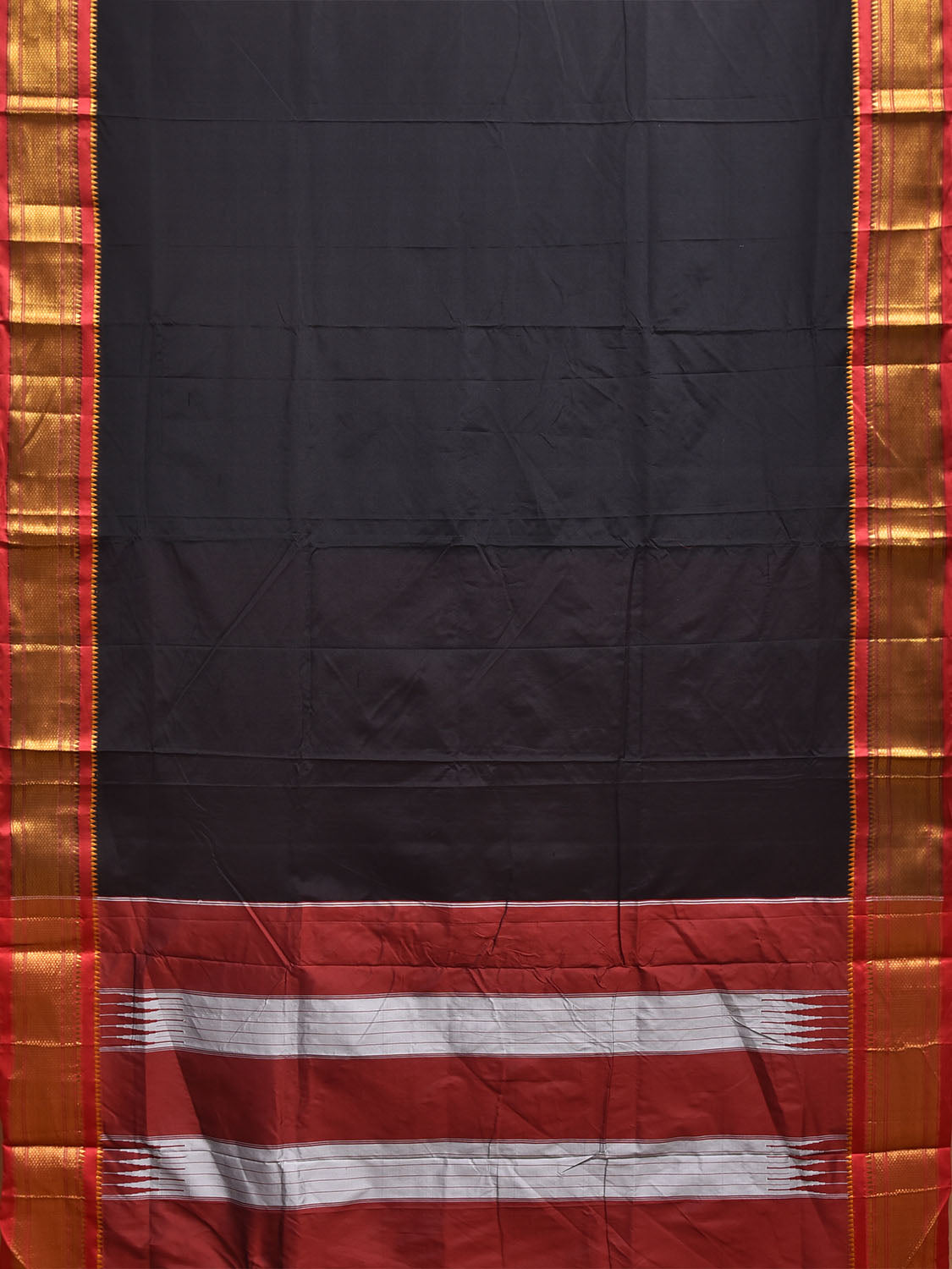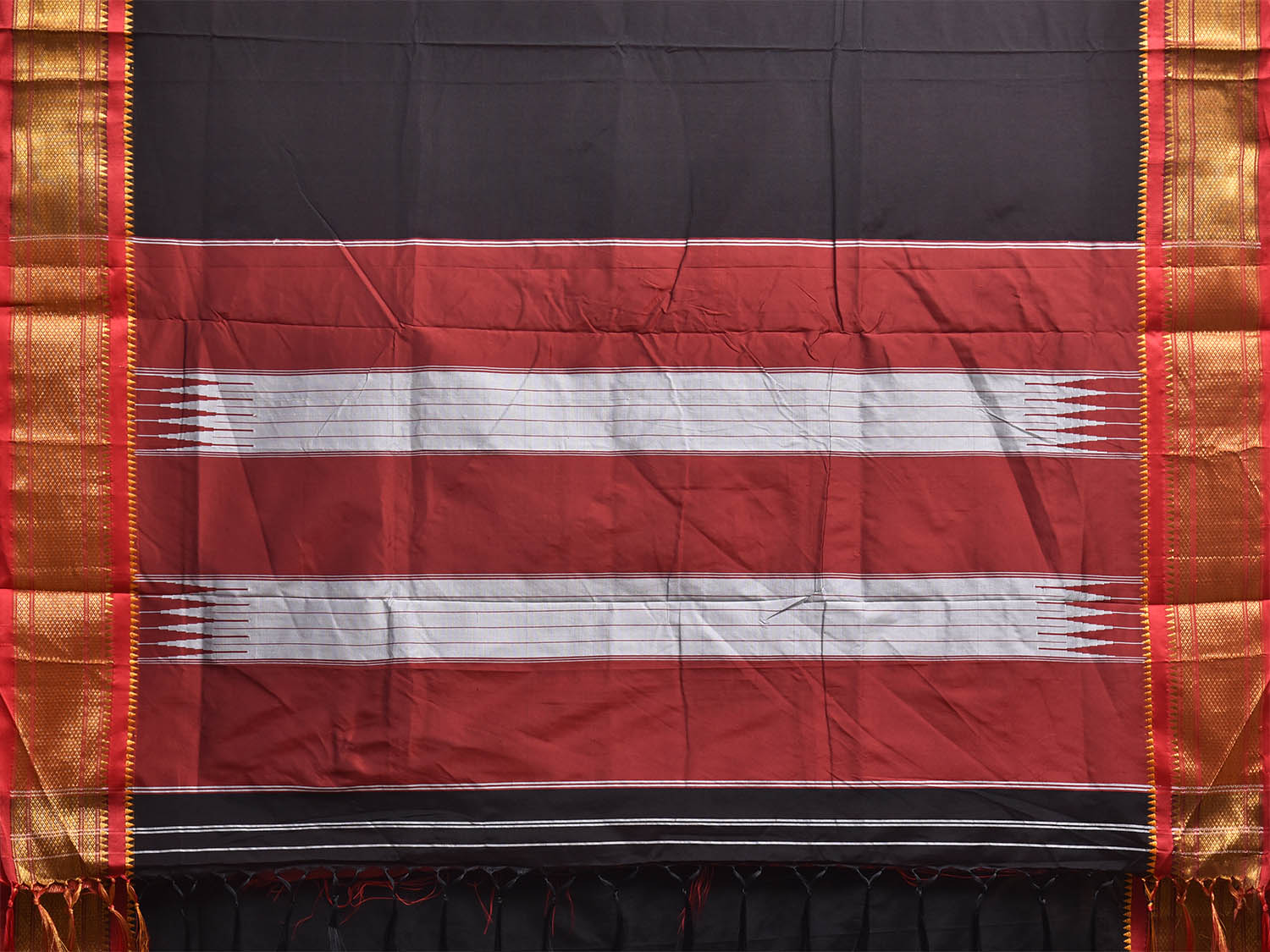 Black and Red ilkal Cotton Viscose Saree with Contrast Pallu Design No Blouse. For fabric care we advise gentle handwash separately. This saree has no blouse.