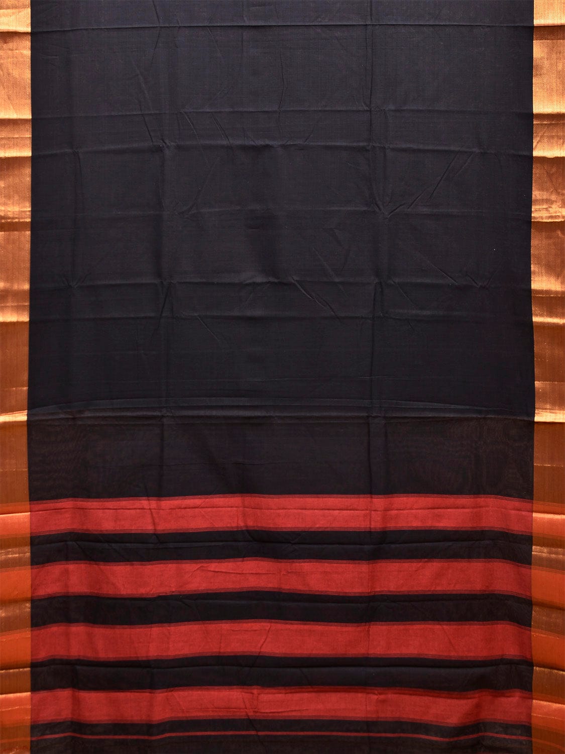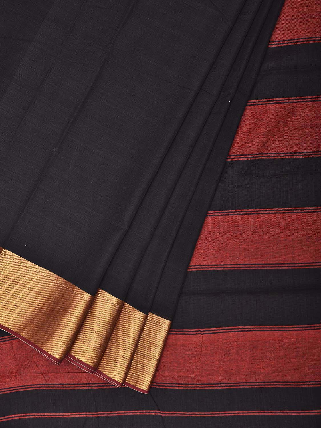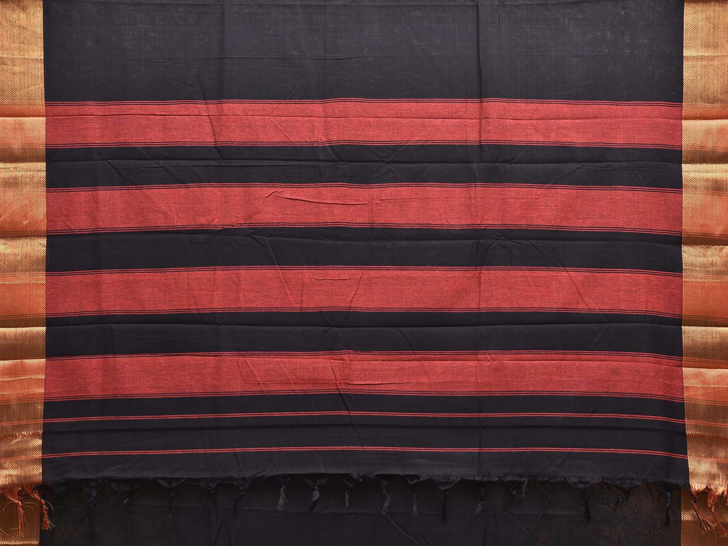 Black and Red Mangalgiri Cotton Viscose Plain Saree with Strips Pallu Design No Blouse mn0152