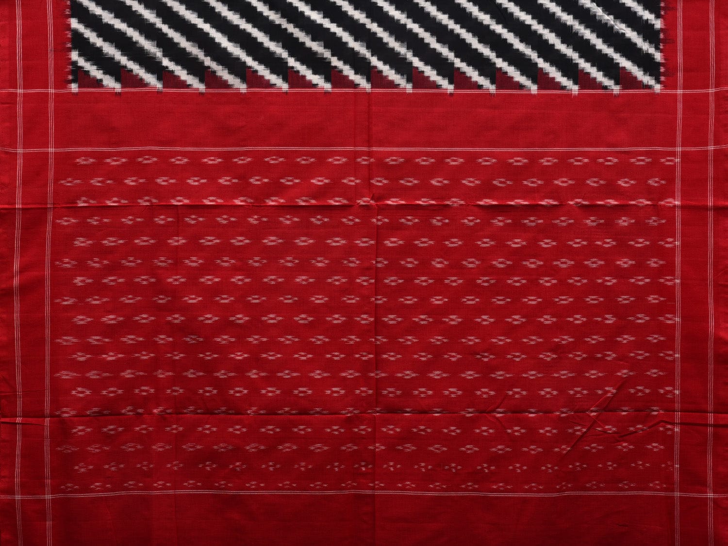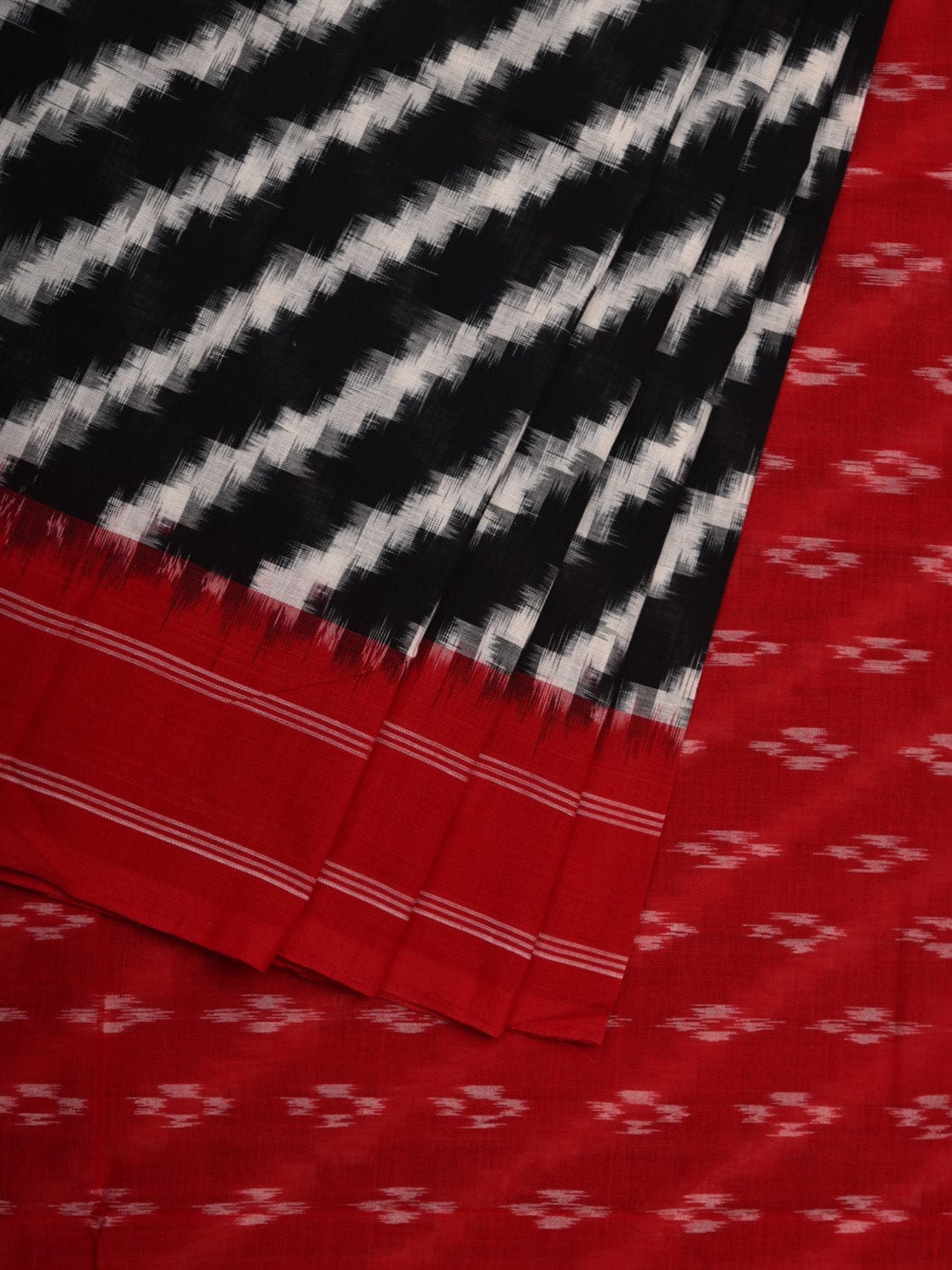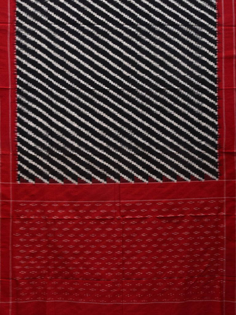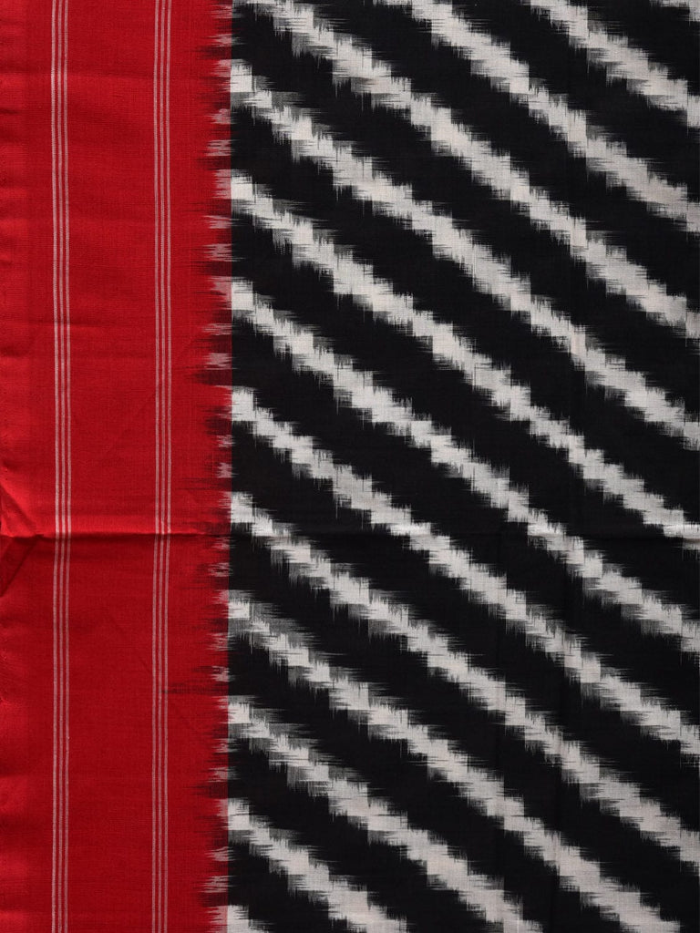 Black and Red Pochampally Ikat Cotton Handloom Saree with Diagonal Design. This Handloom Saree from Andhra Pradesh has been woven using the resist-dyeing, which produces the unique patterns adorning the fabric. We advise Gentle Handwash Separately for fabric care.
