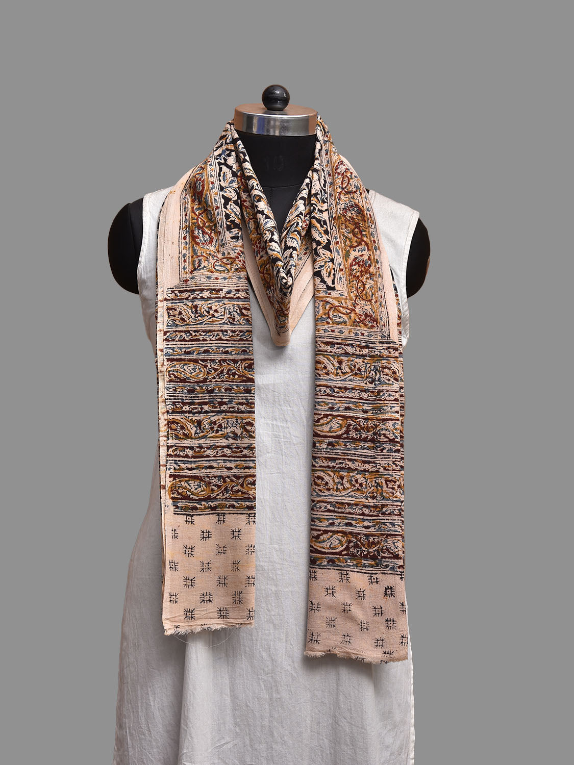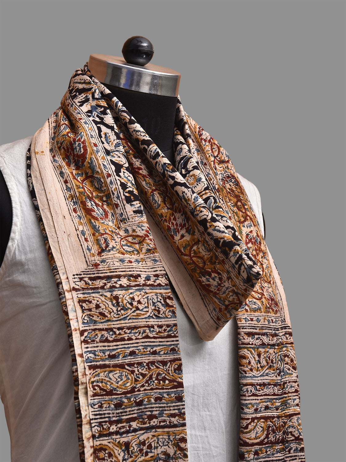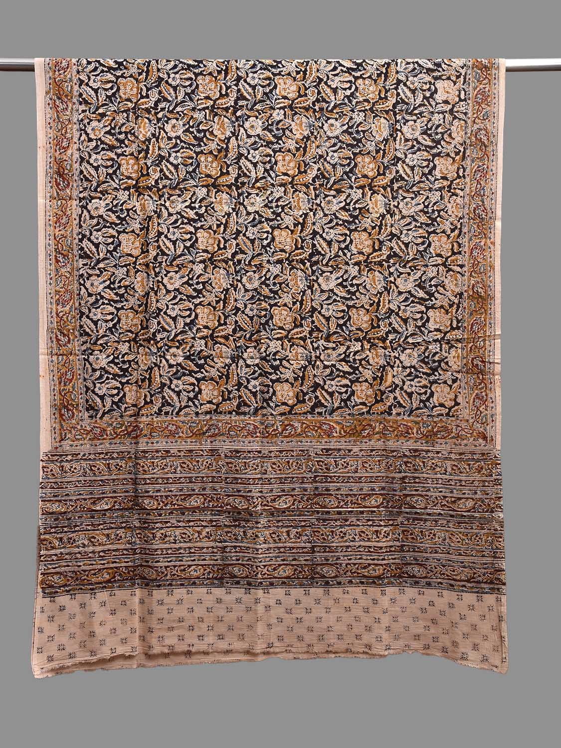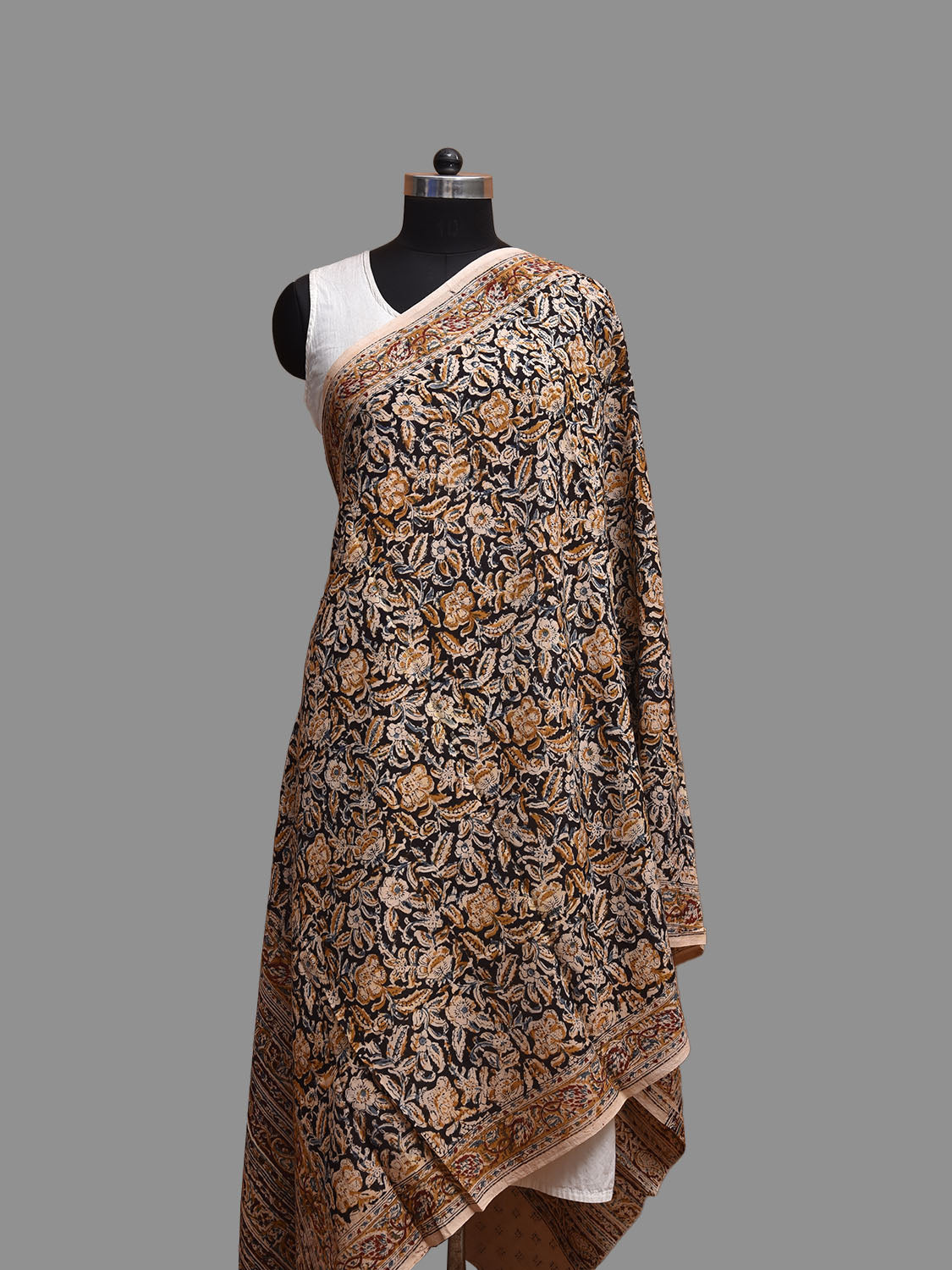 Black Kalamkari Block Print Cotton Dupatta with Floral Design. For fabric care we advise gentle handwash separately.
