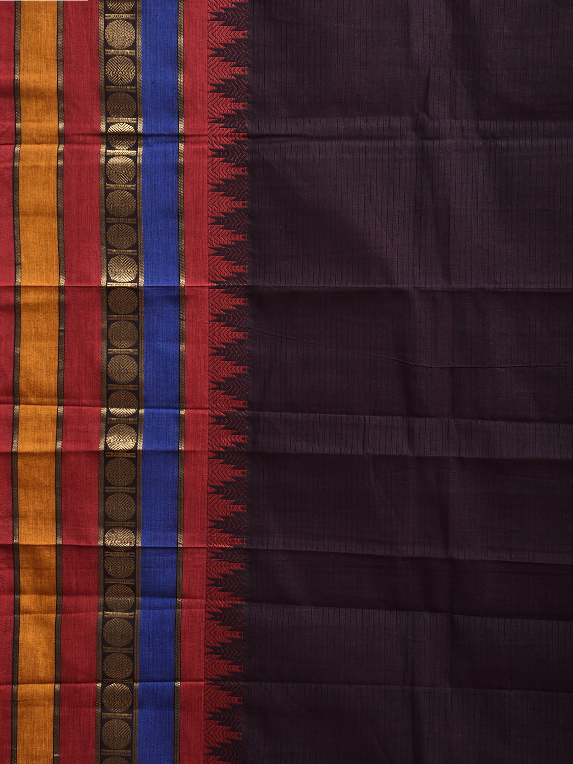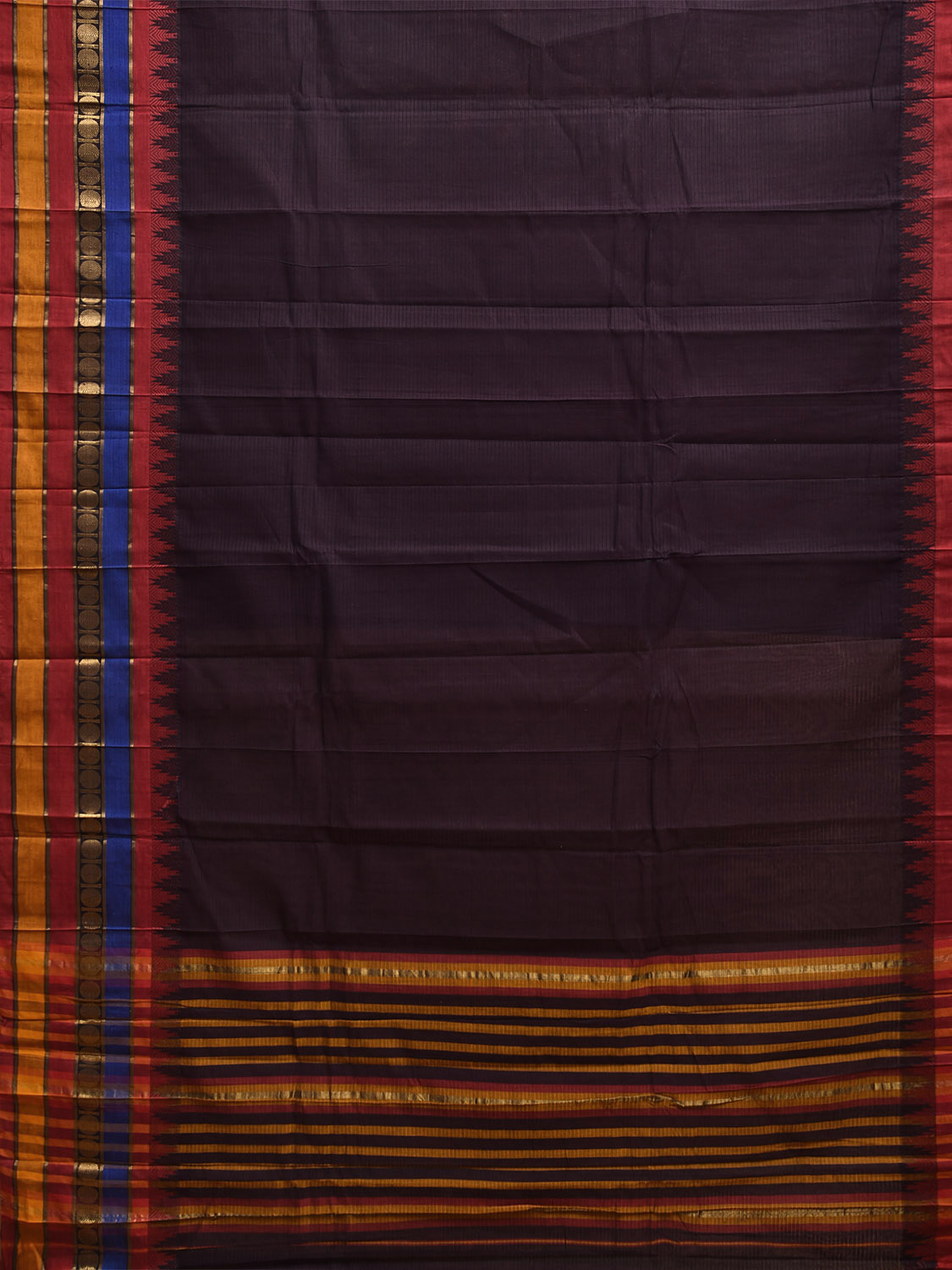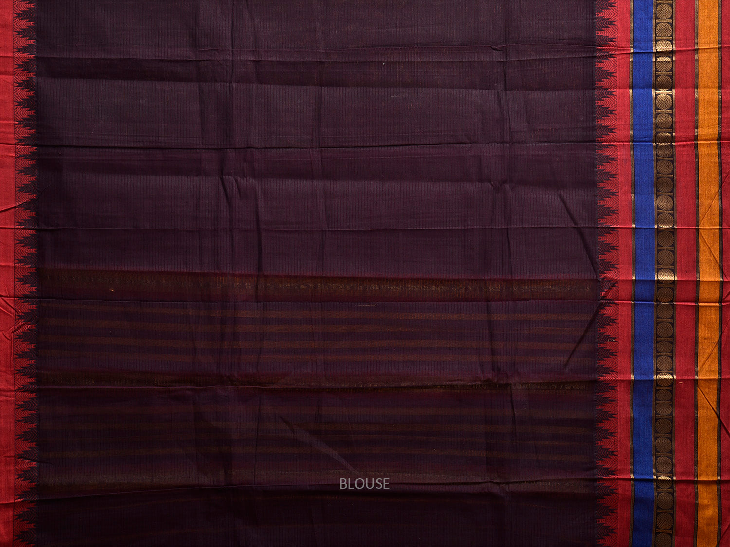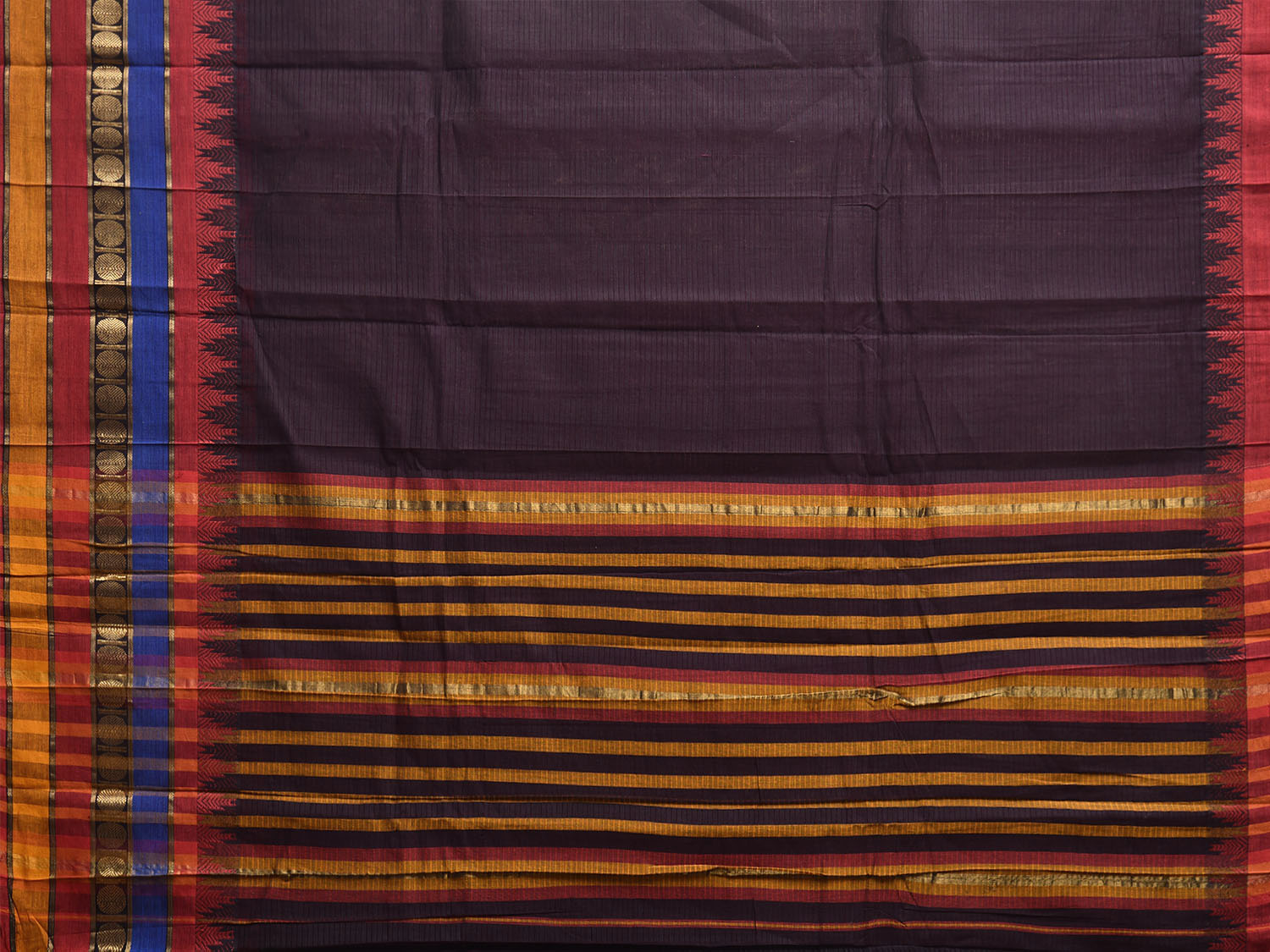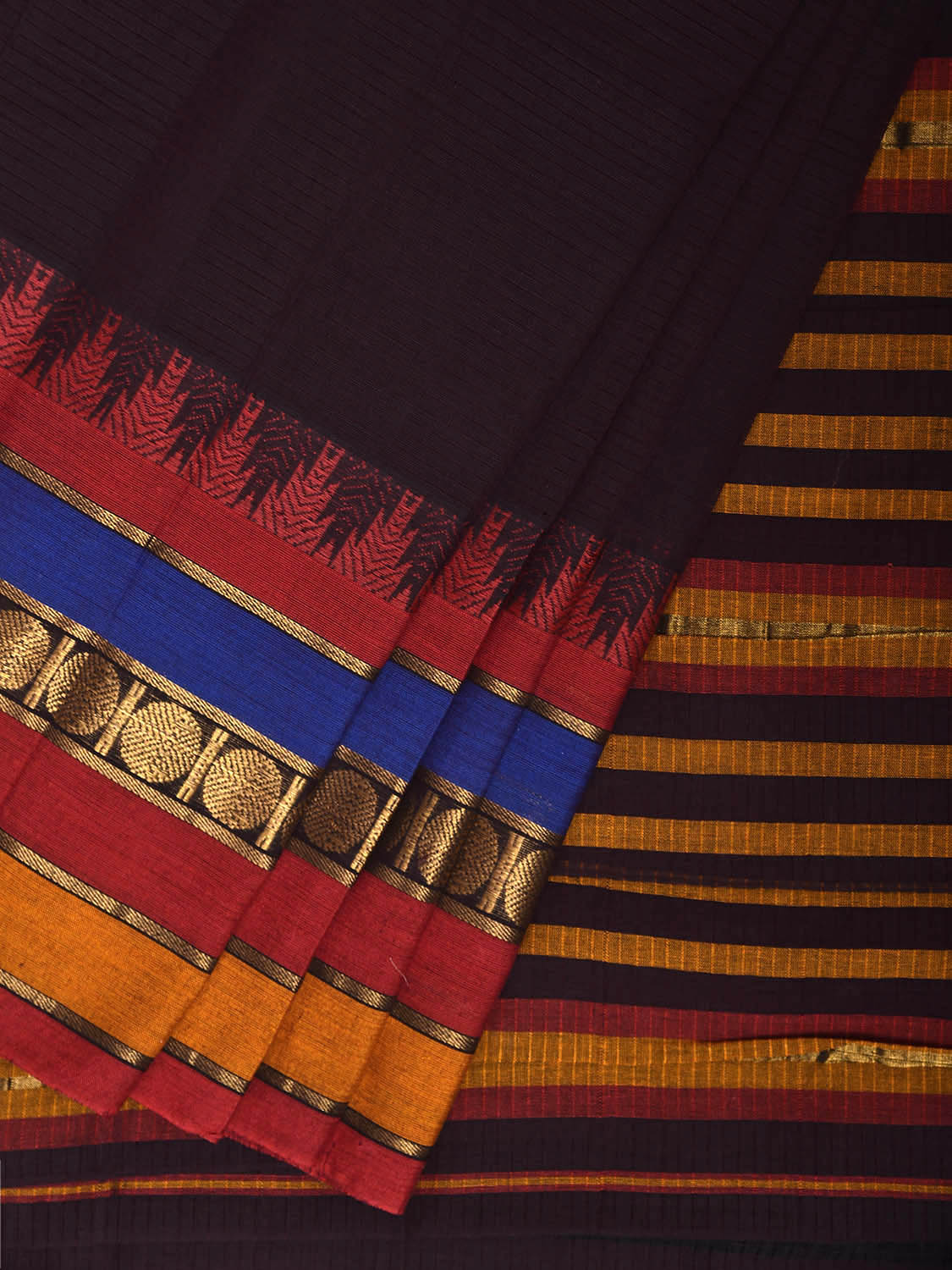 Black Kanchipuram Cotton Saree with One Side Big Temple Border. Traditional Simple South Indian Attire Saree for any Casual Occasions. As it’s a cotton saree we advice gentle handwash separately for fabric care.