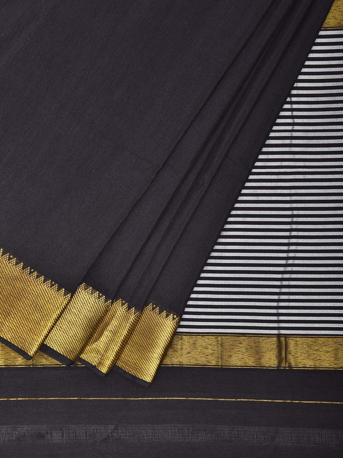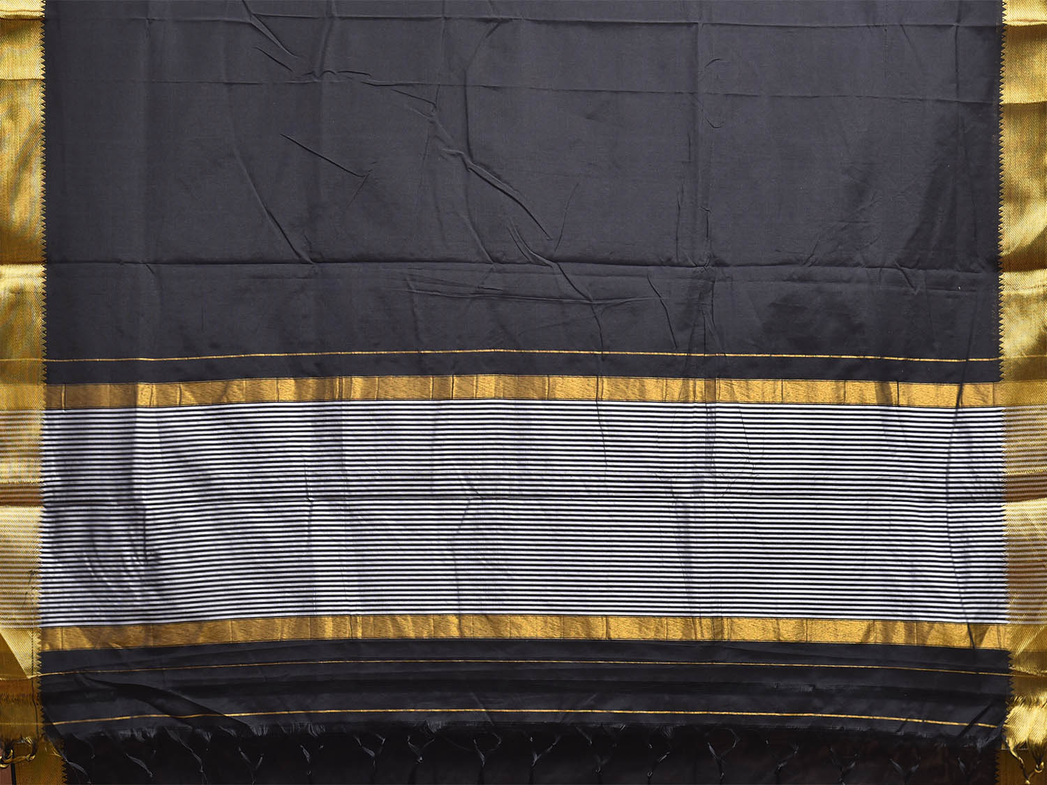 Black Mangalgiri Cotton Viscose Plain Saree with Strips Pallu Design. These are Simple and Traditional Andhra Pradesh Handloom Dupattas, being soft cotton they are comfortable to wear. For fabric care we advise gentle handwash it separately.