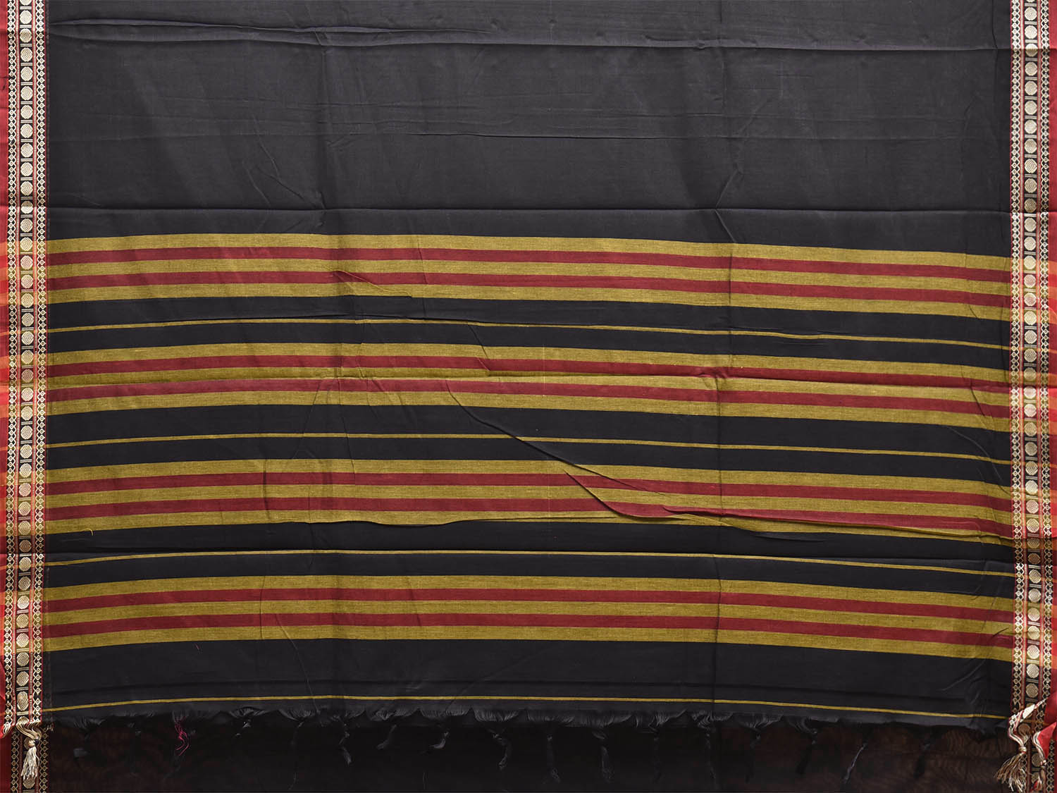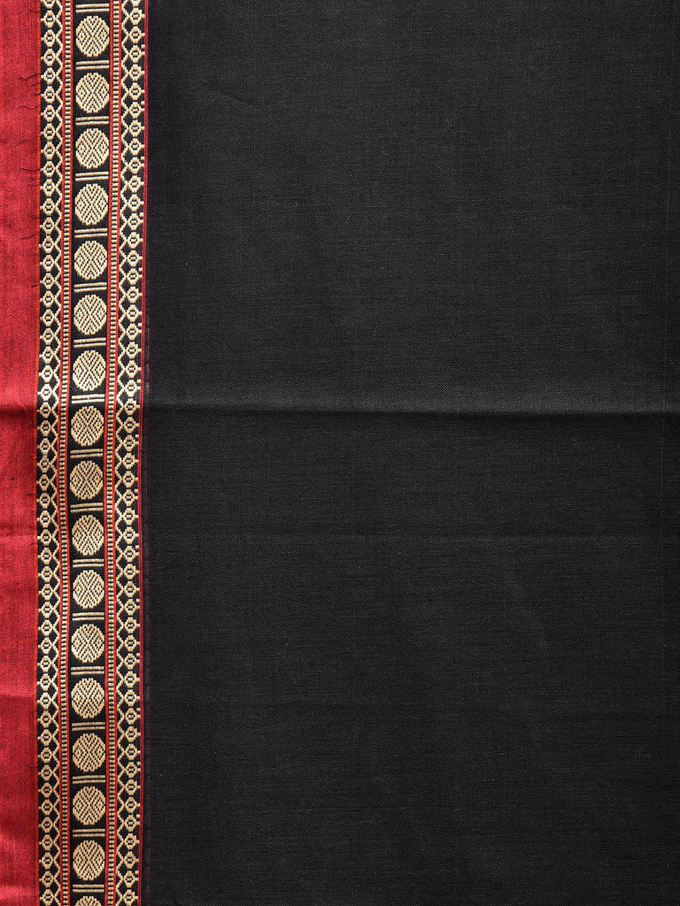 Black Narayanpet Cotton Plain Saree with Strips Pallu and Border Design No Blouse. This saree has no blouse.