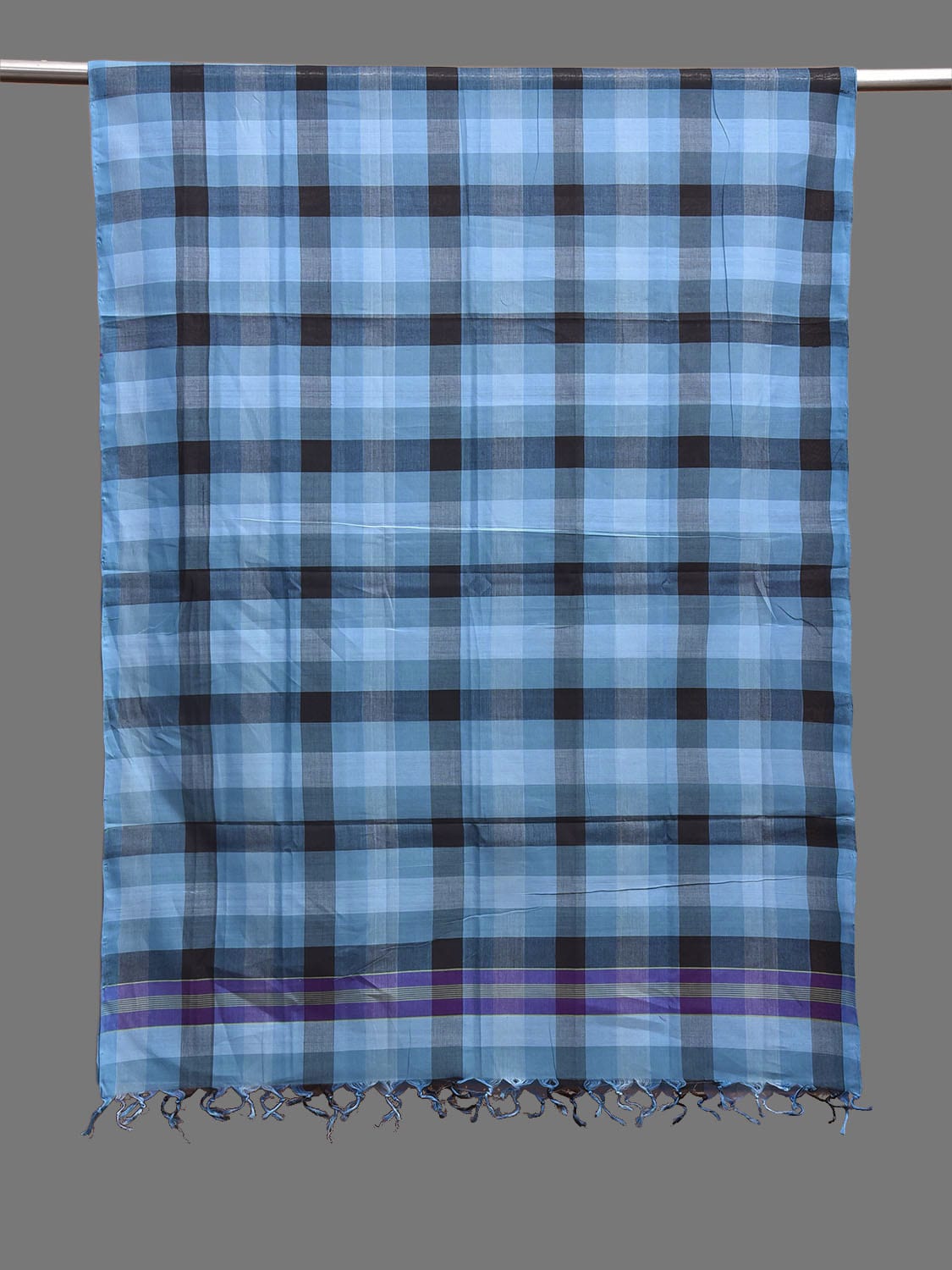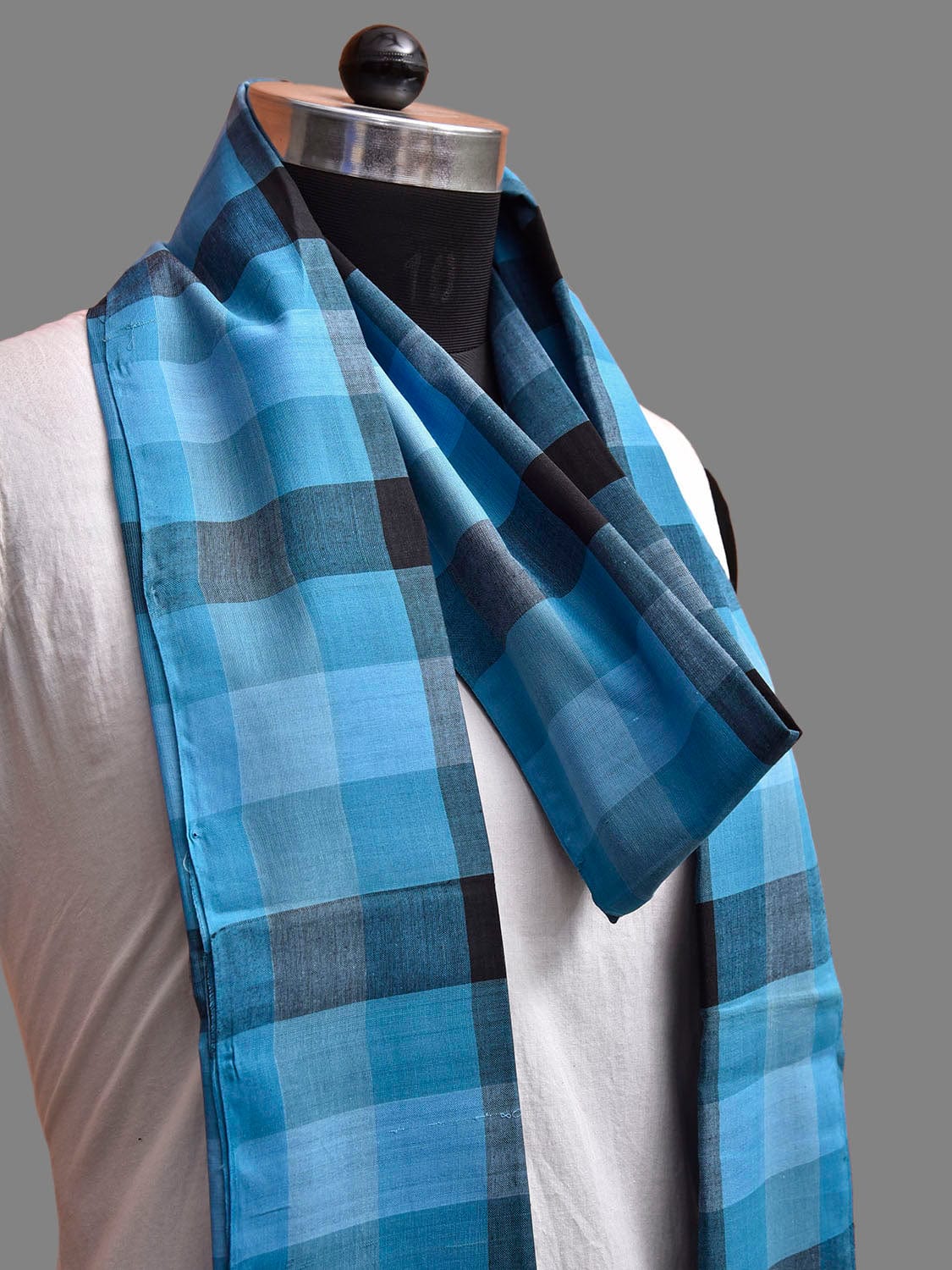 Blue and Black Mangalgiri Cotton Handloom Dupatta with Checks Design. We Advise Gentle Handwash for Fabric Care.