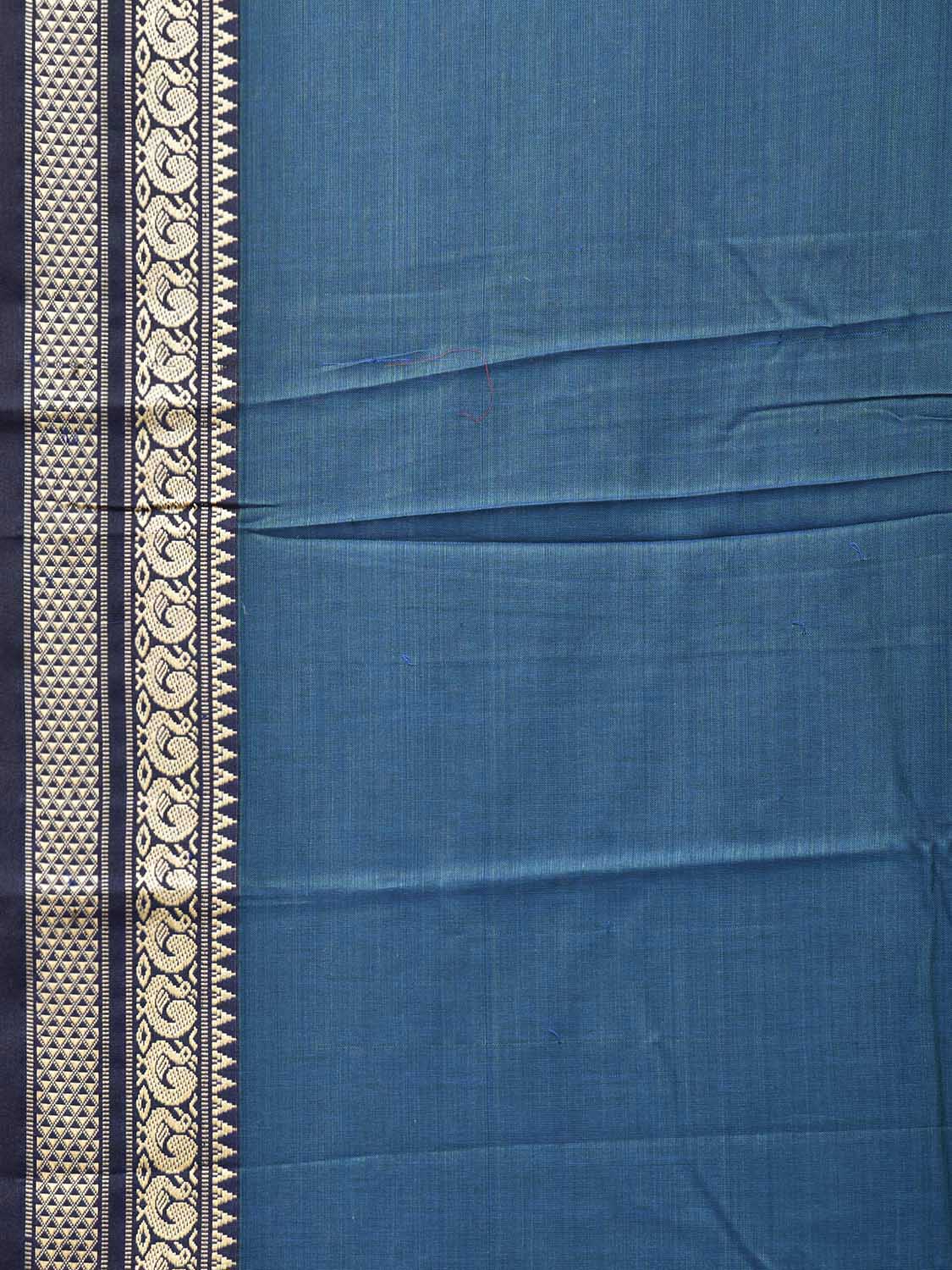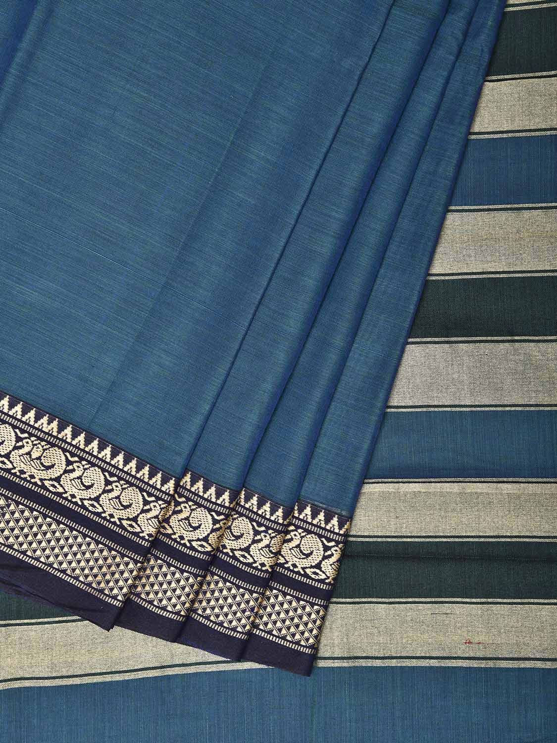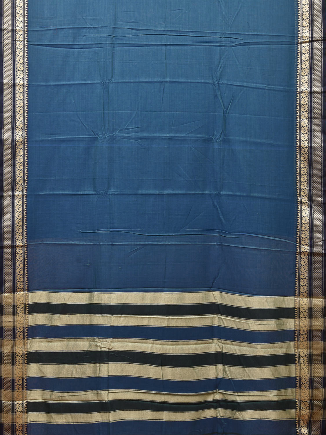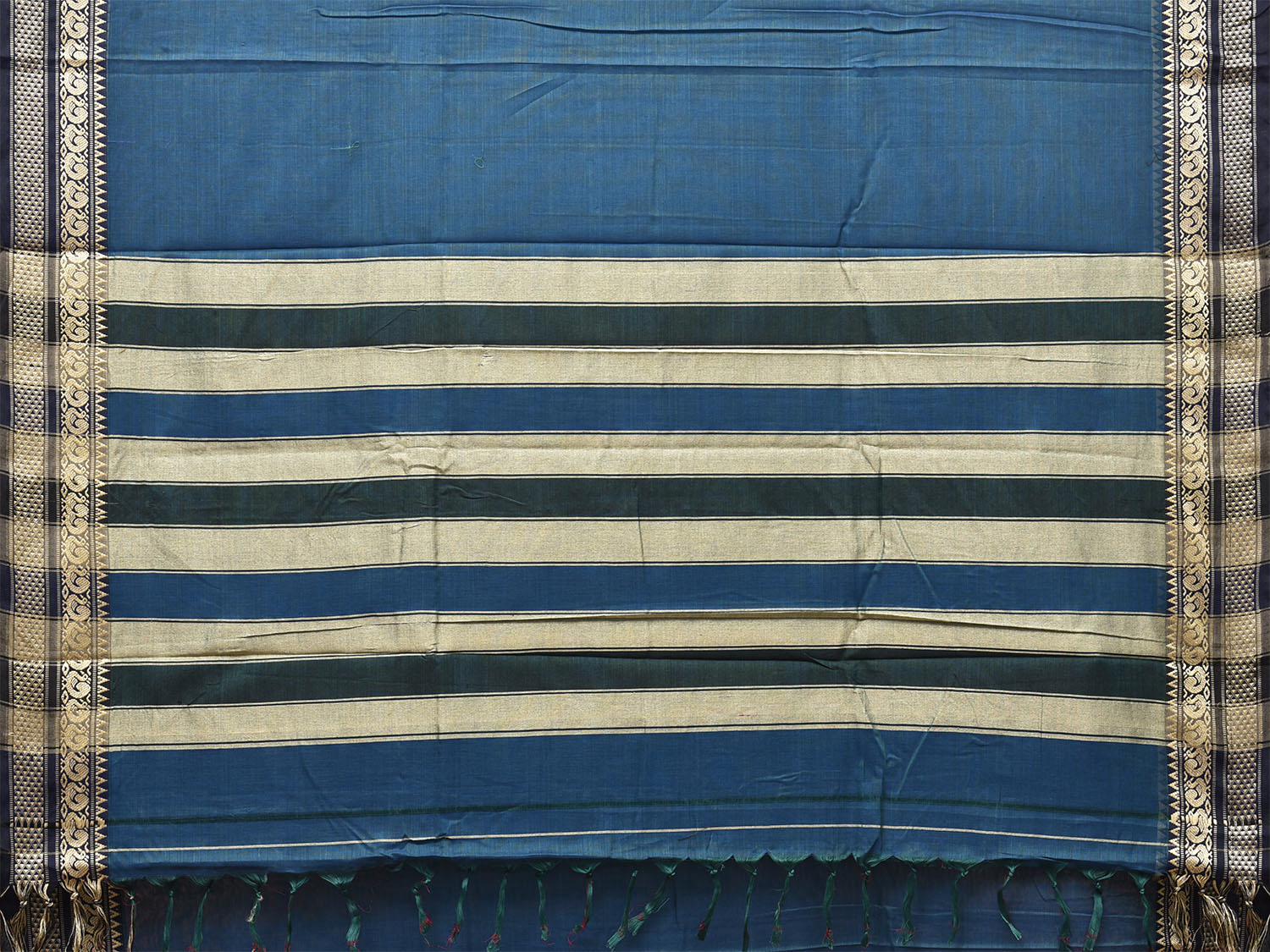 Blue and Dark Blue Narayanpet Cotton Plain Saree with Strips Pallu and Border Design No Blouse. This saree has no blouse.