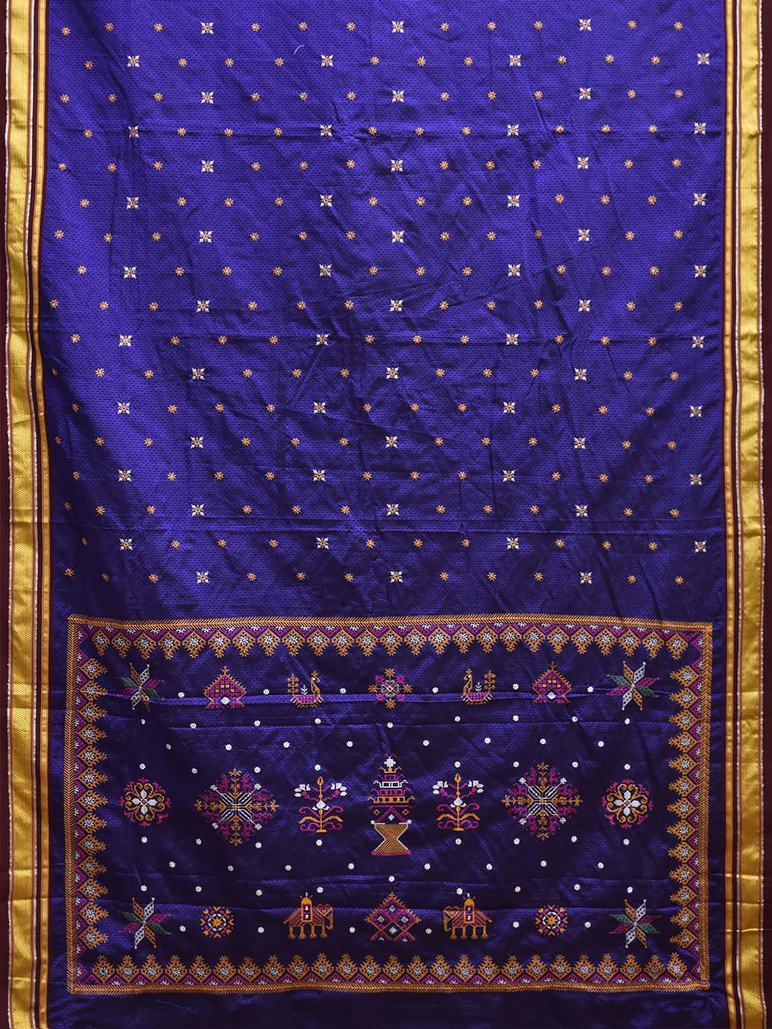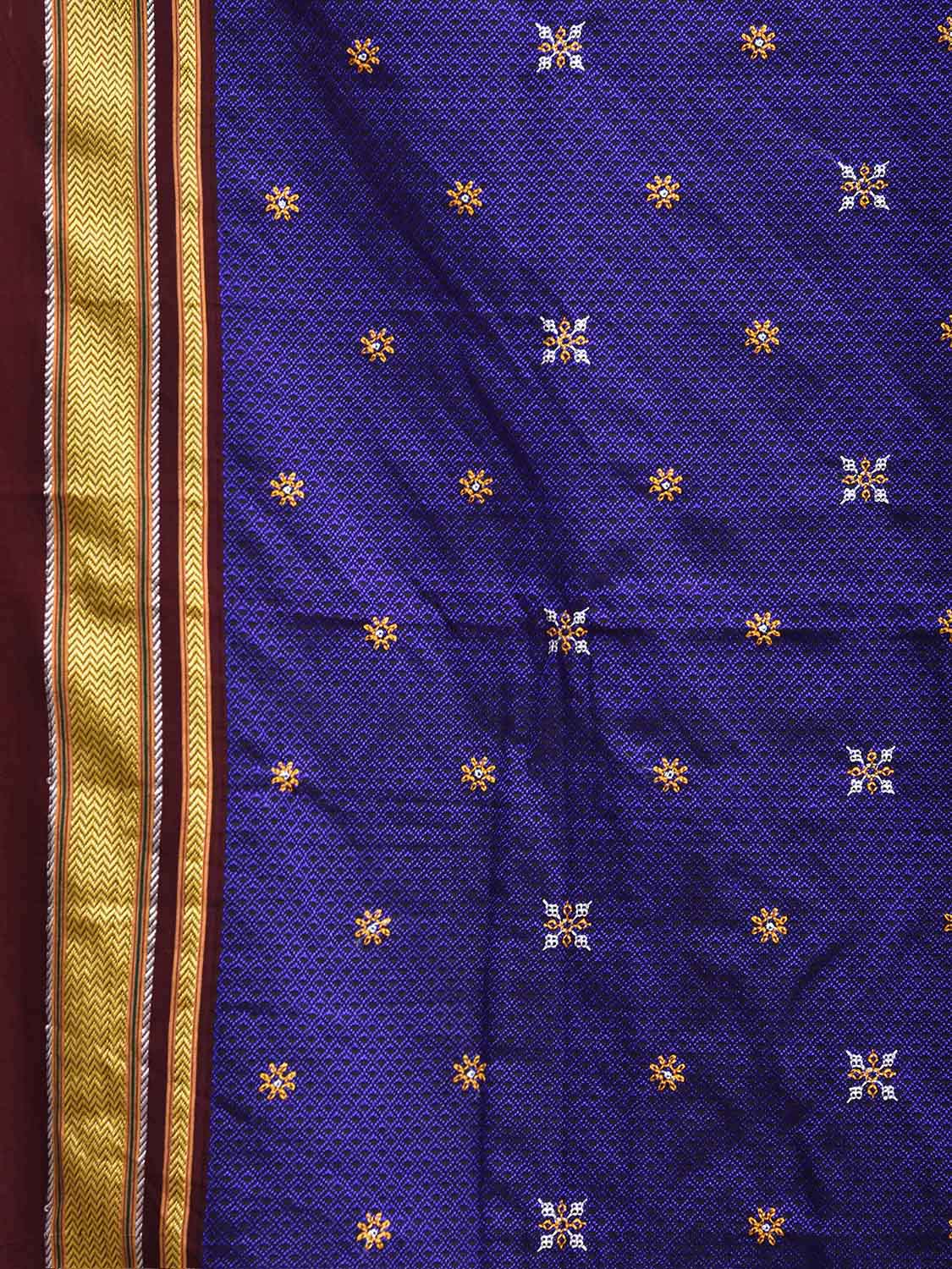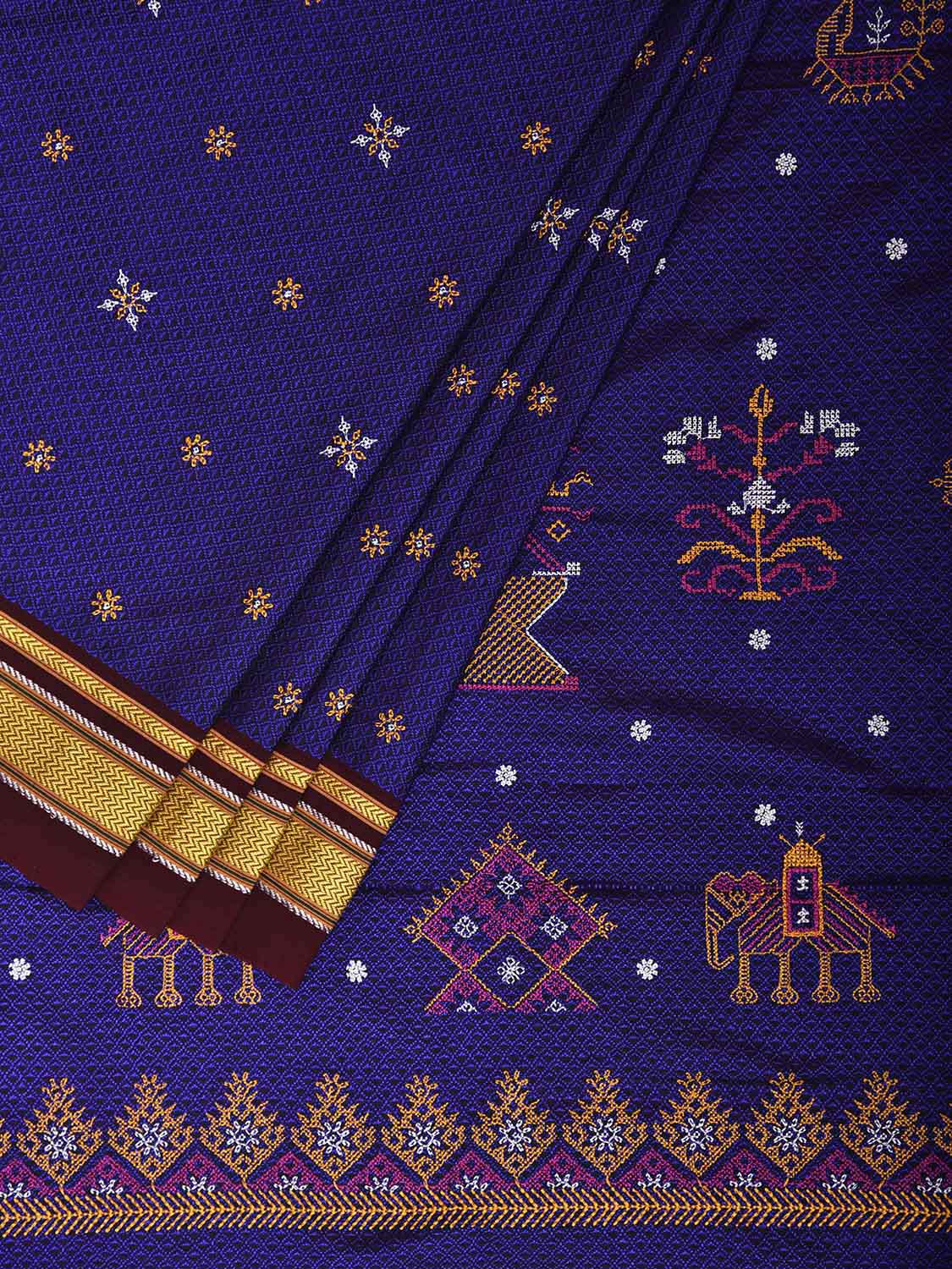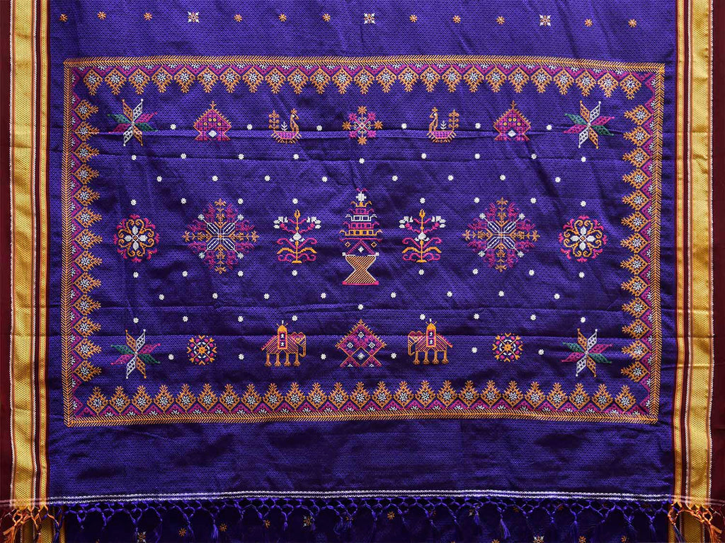 Blue and Maroon ilkal Jacquard Viscose Saree with Kasuti Work Design No Blouse. For fabric care we advise gentle handwash separately. This saree has no blouse.