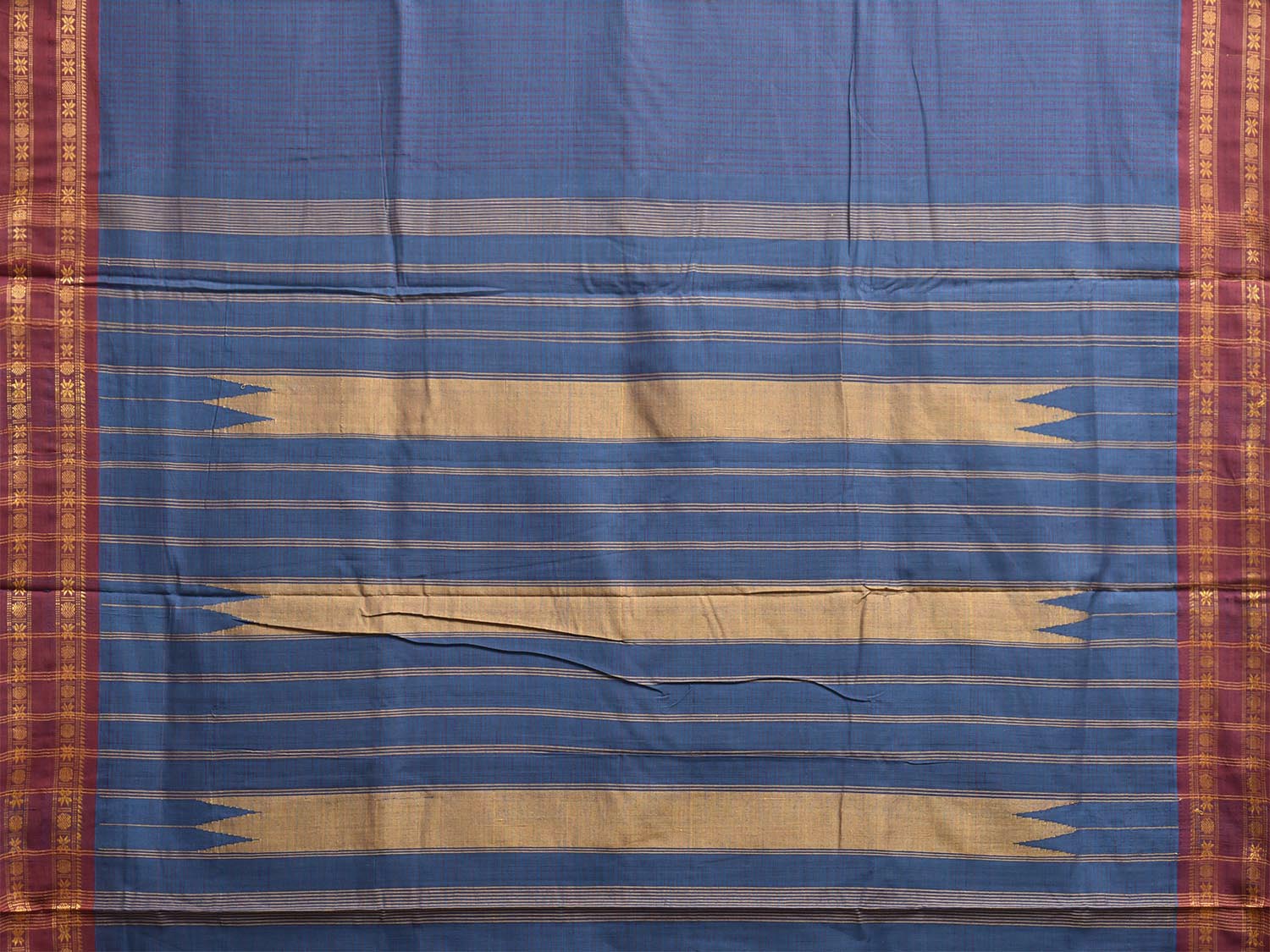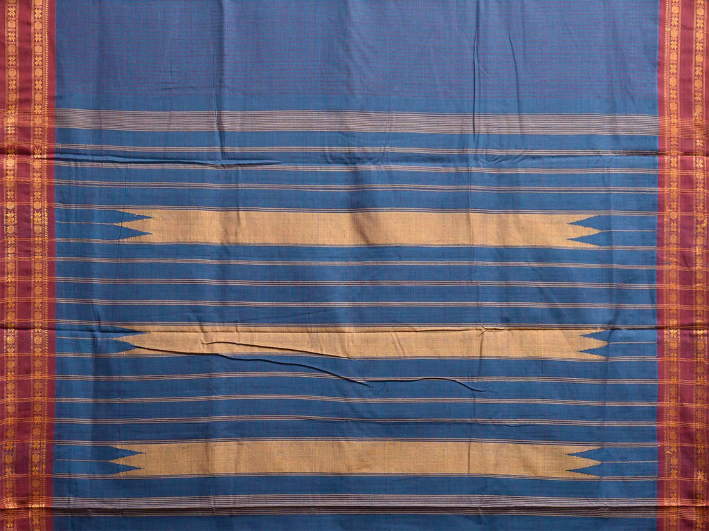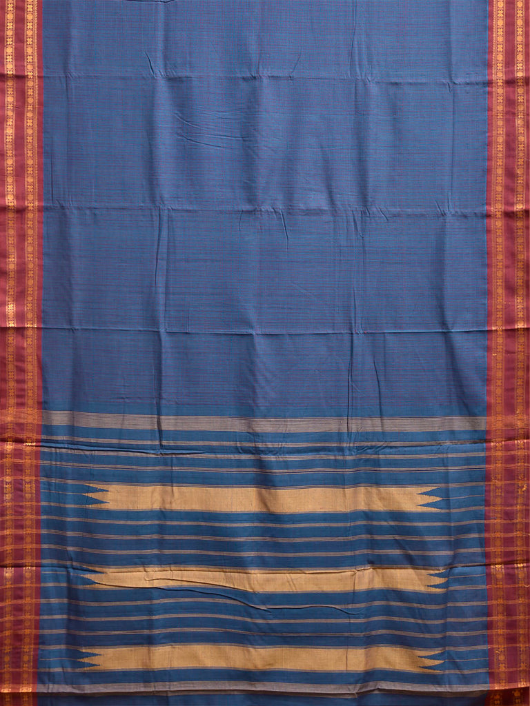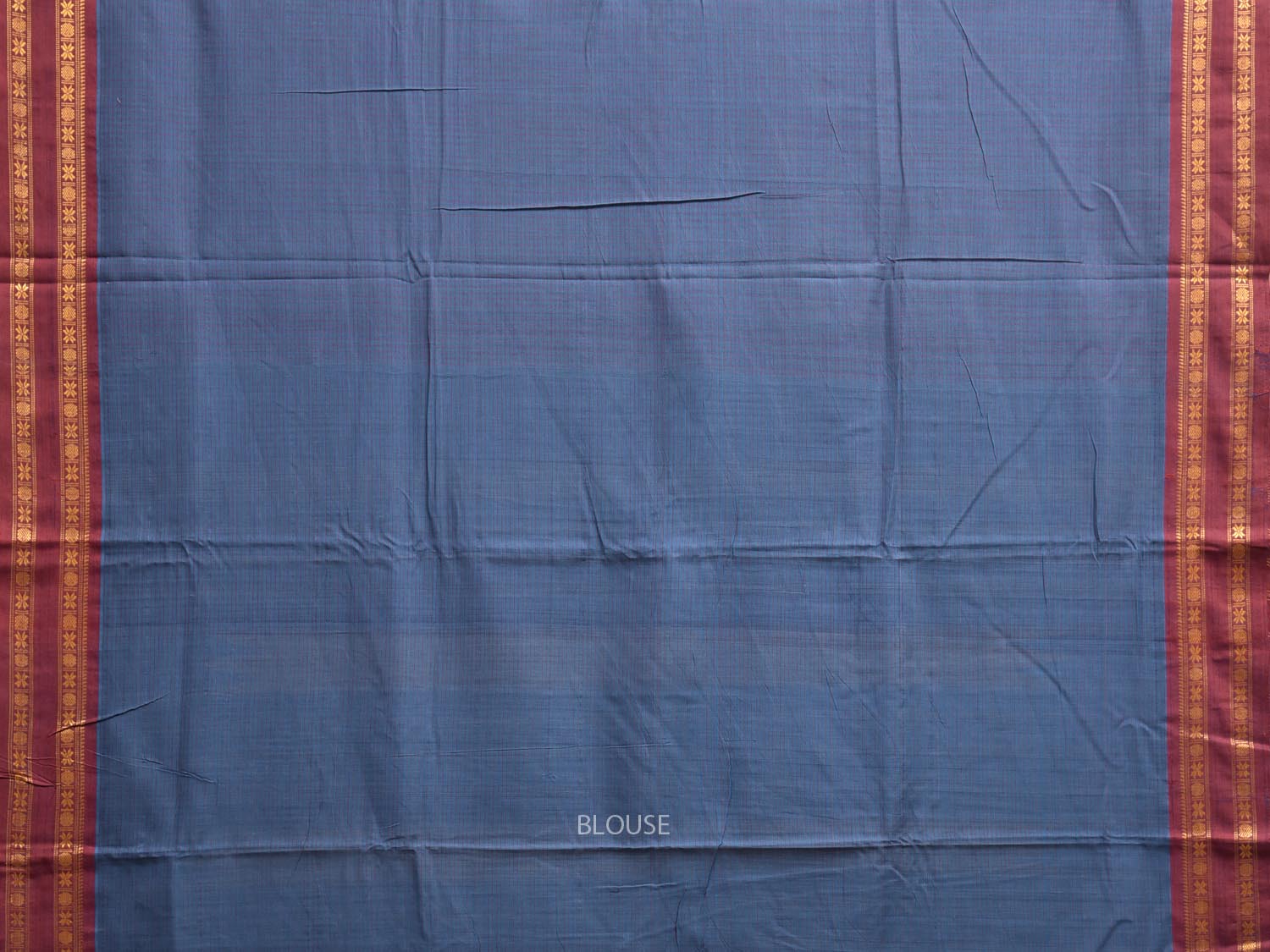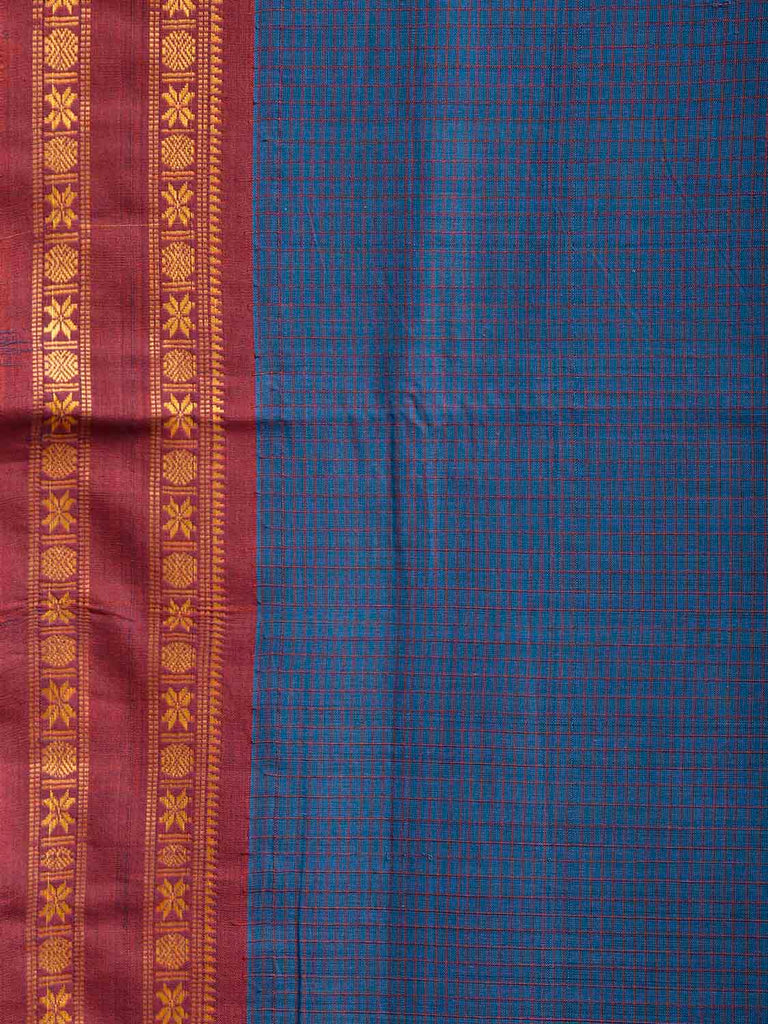 Blue and Maroon Narayanpet Cotton Handloom Saree with Checks Design.