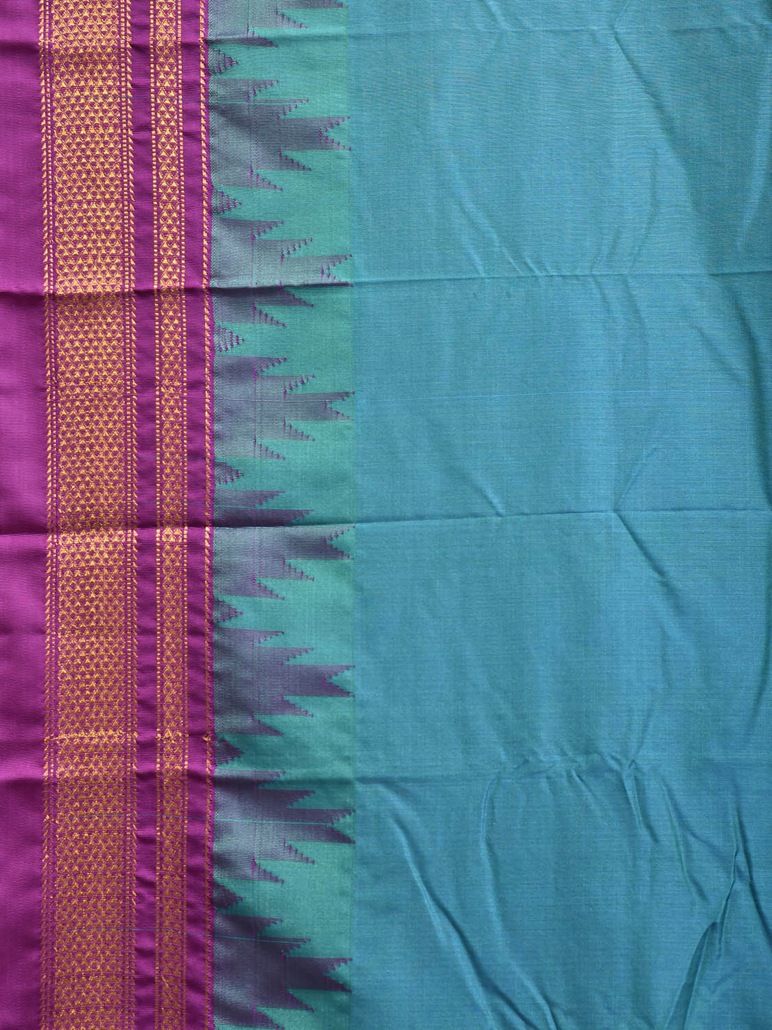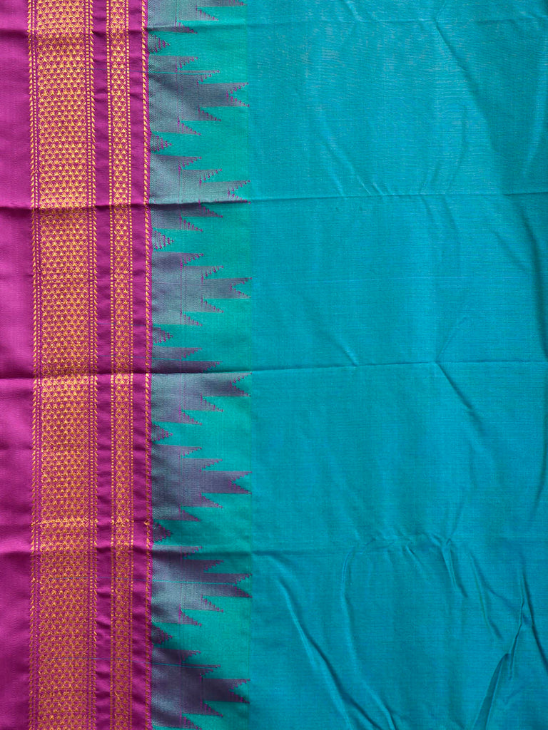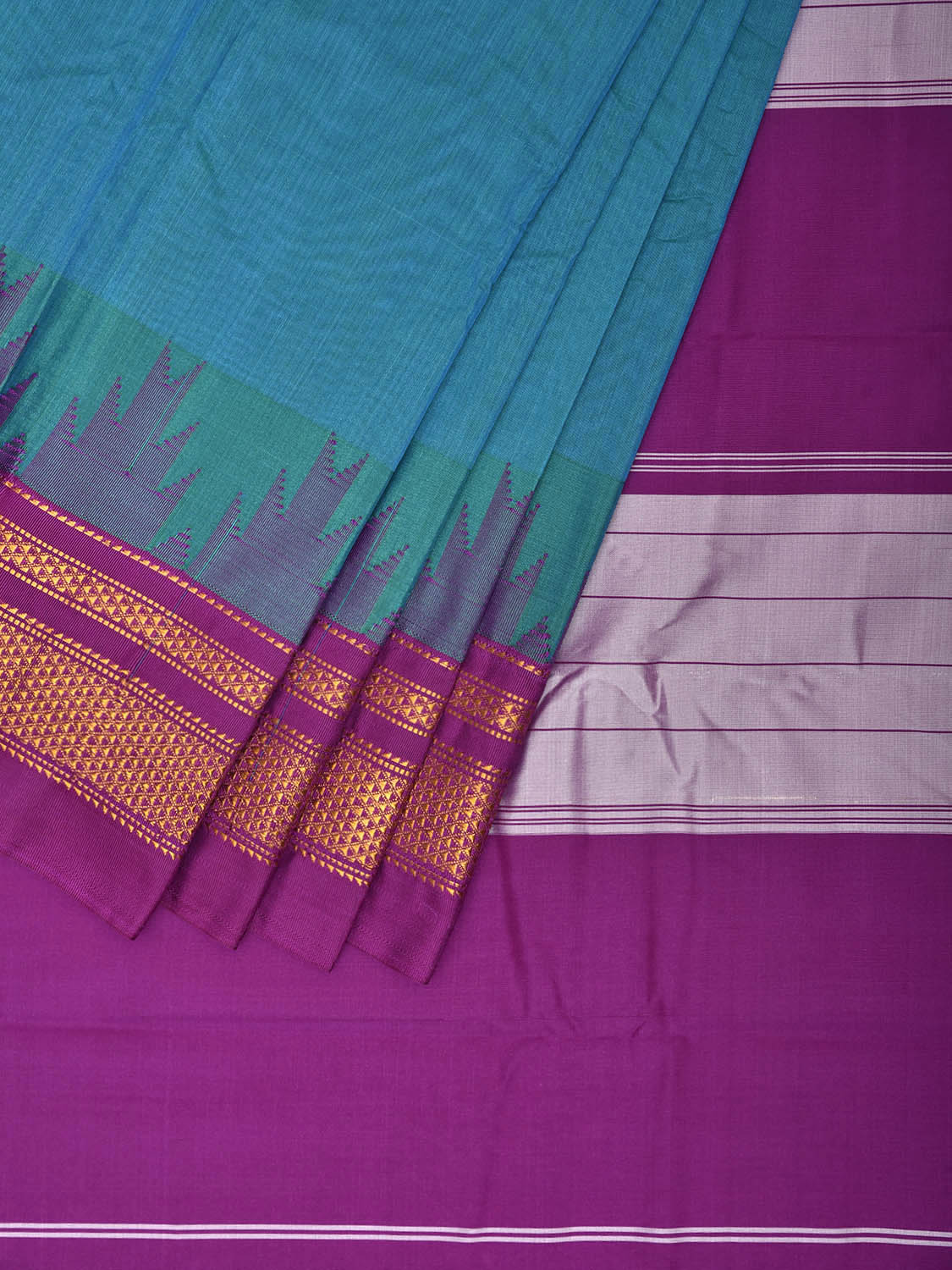 Blue and Purple ilkal Viscose Plain Saree with Big Temple Border Design. For fabric care we advise gentle handwash separately.
