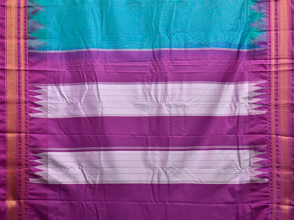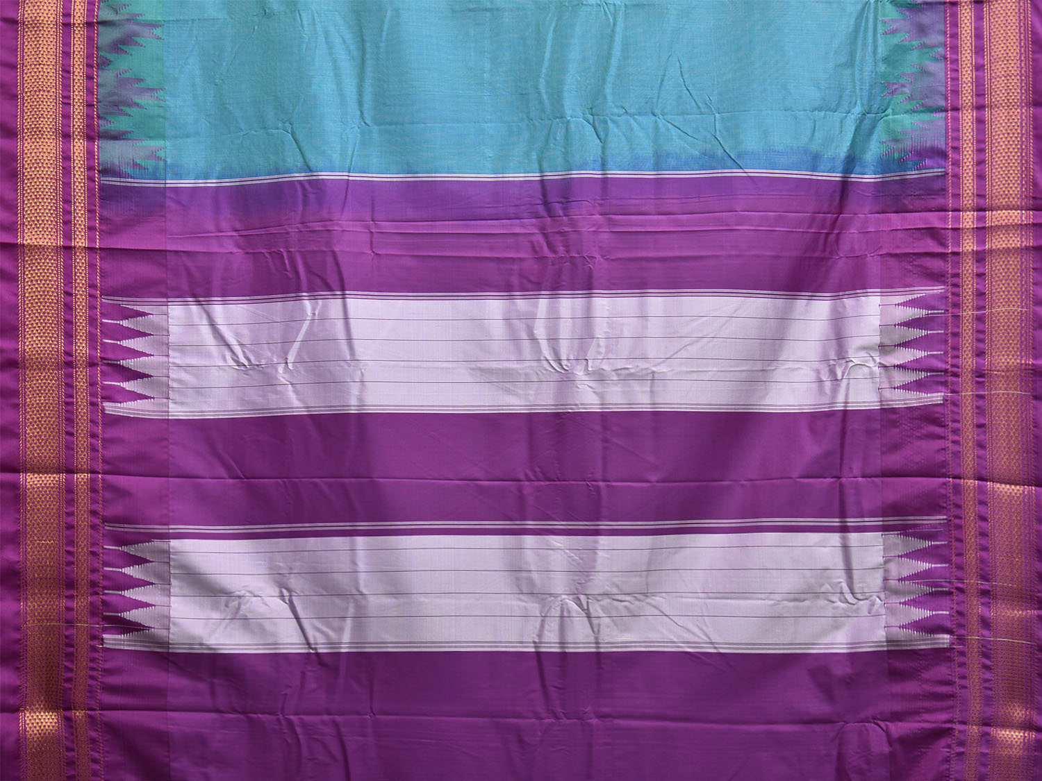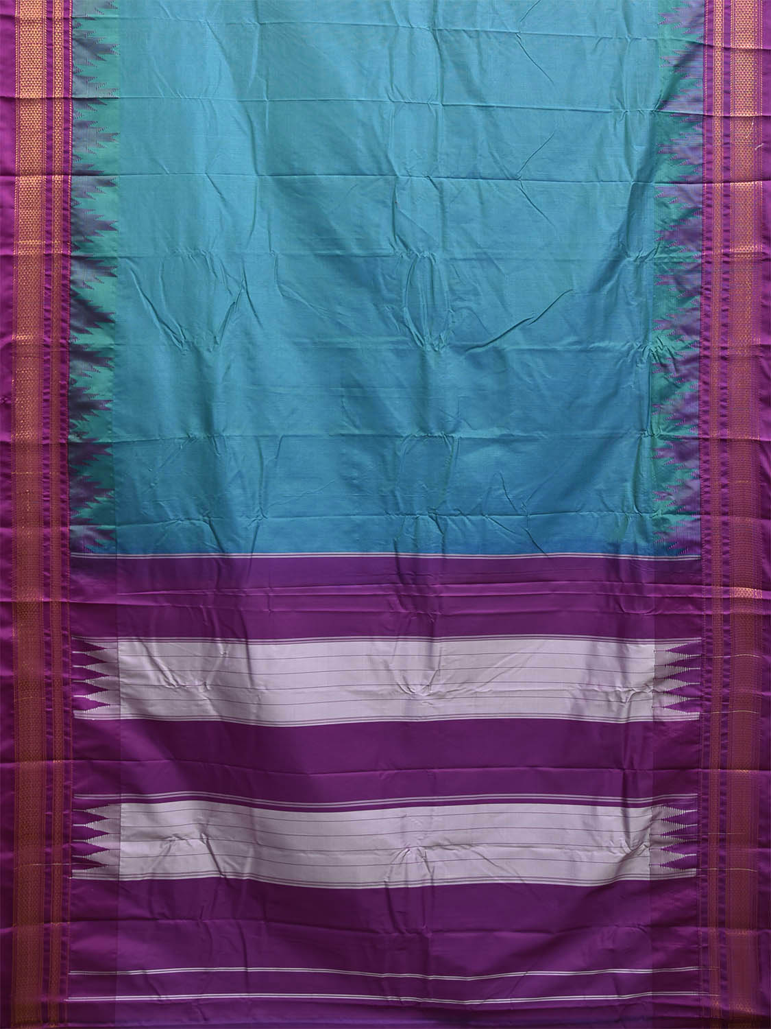 Blue and Purple ilkal Viscose Plain Saree with Big Temple Border Design. For fabric care we advise gentle handwash separately.