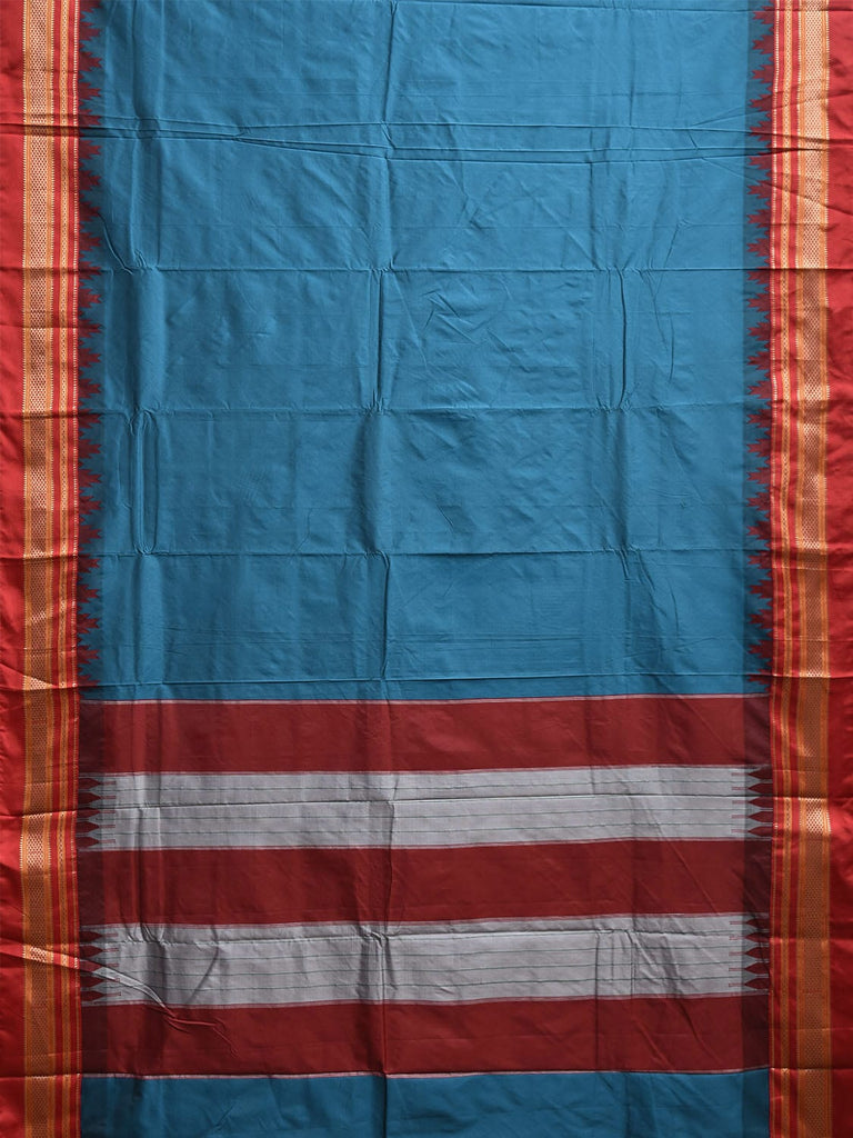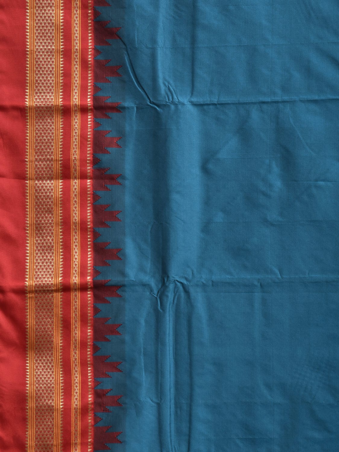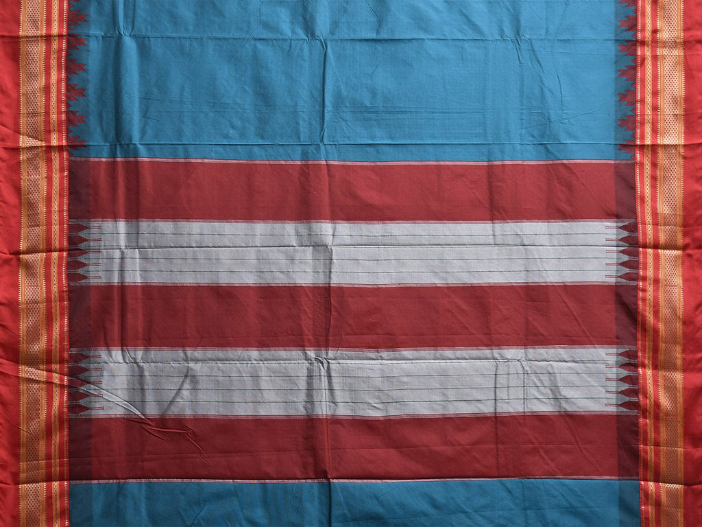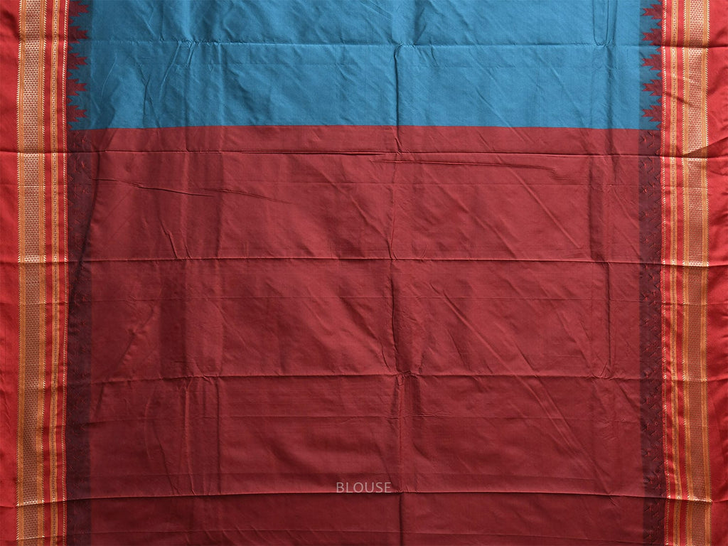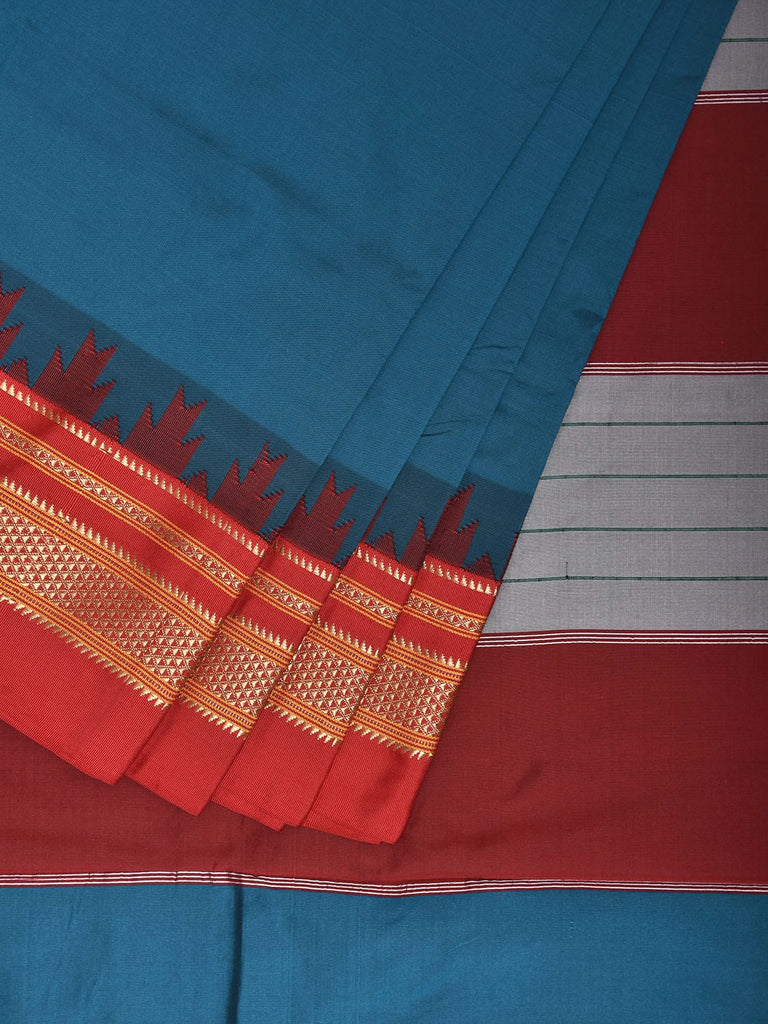 Blue and Red ilkal Viscose Saree with Strips Pallu and Temple Border Design. For fabric care we advise gentle handwash separately.