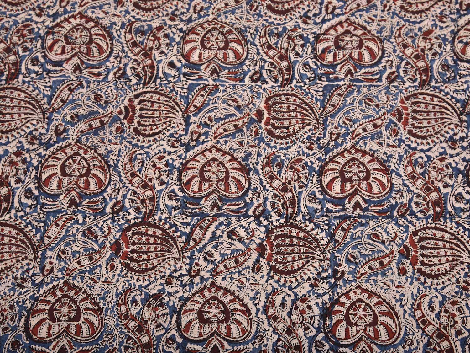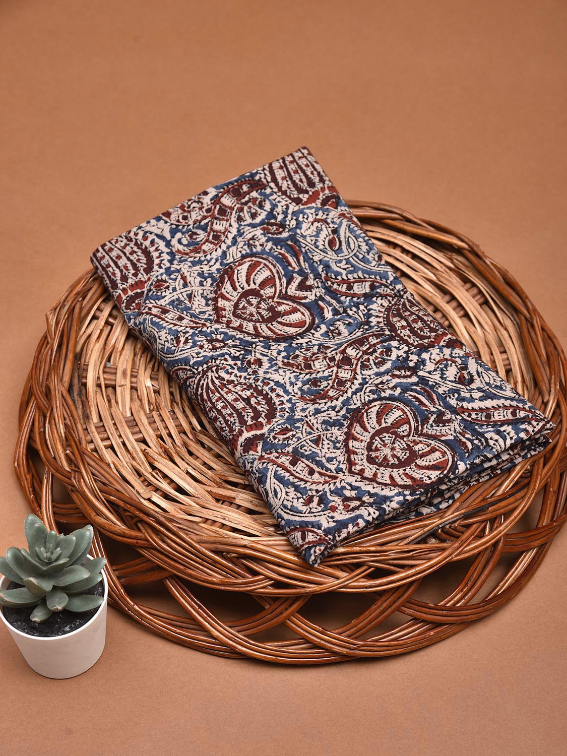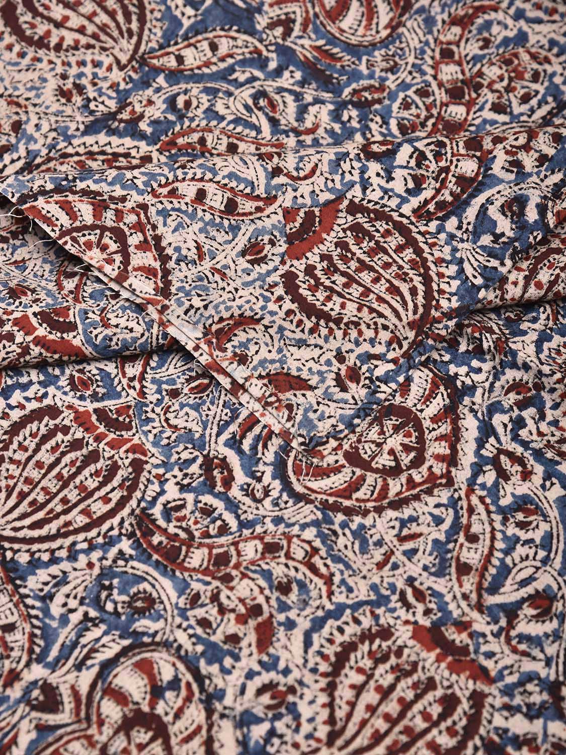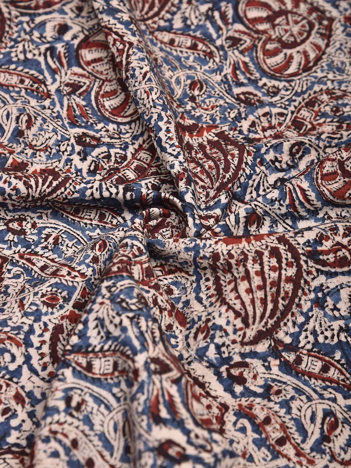 Blue and Red Kalamkari Block Print Cotton Blouse with Floral Design 1mt Length 35 Inches Width. Beautiful Pattern Blouse Fabric and Easy to Match to Any Suitable Saree. For fabric care we advise gentle handwash separately as they may bleed in the initial wash.