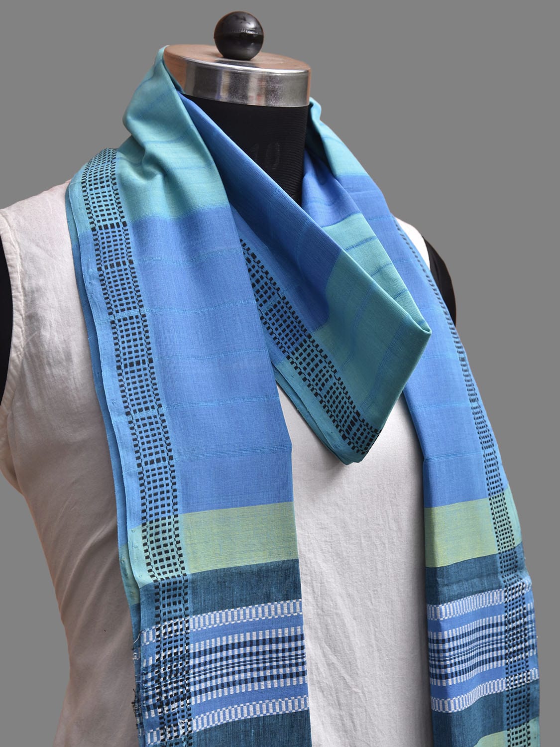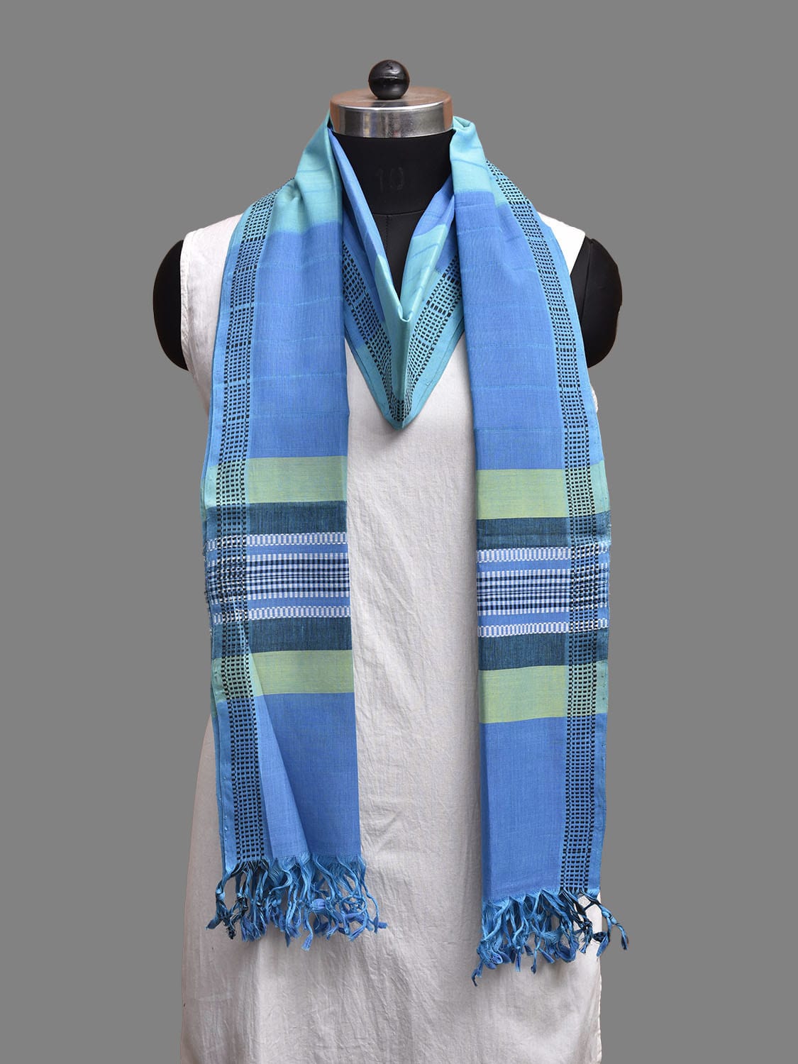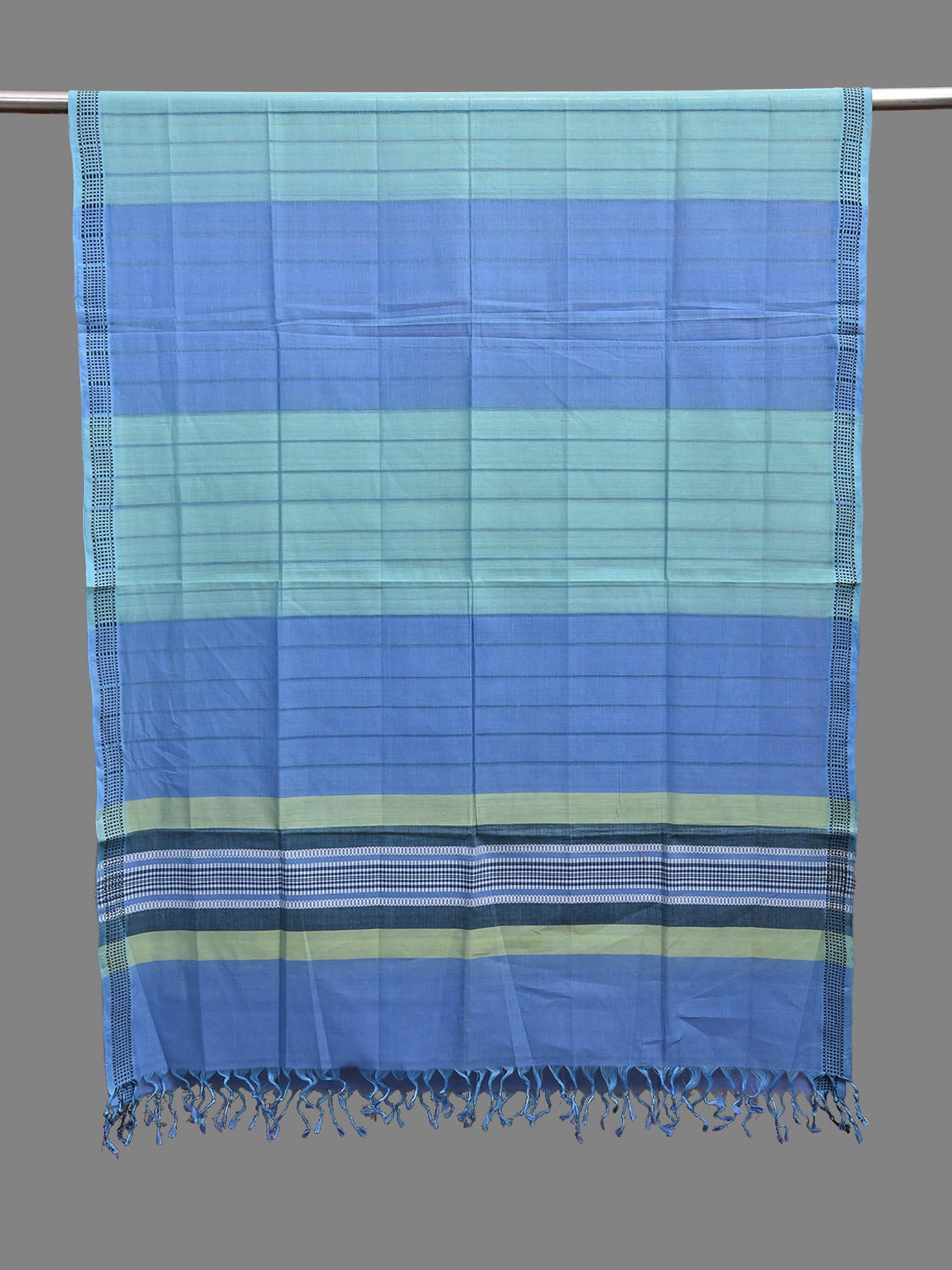 Blue and Turquoise Mangalgiri Cotton Handloom Dupatta with Strips Design. We Advise Gentle Handwash for Fabric Care.