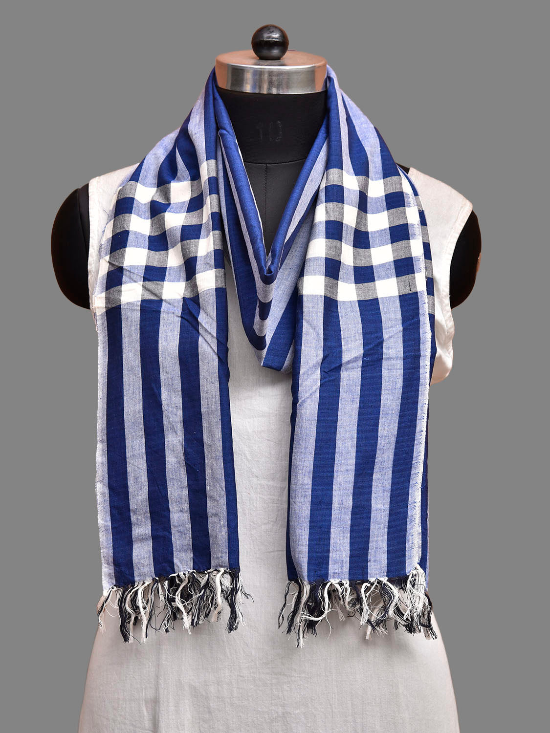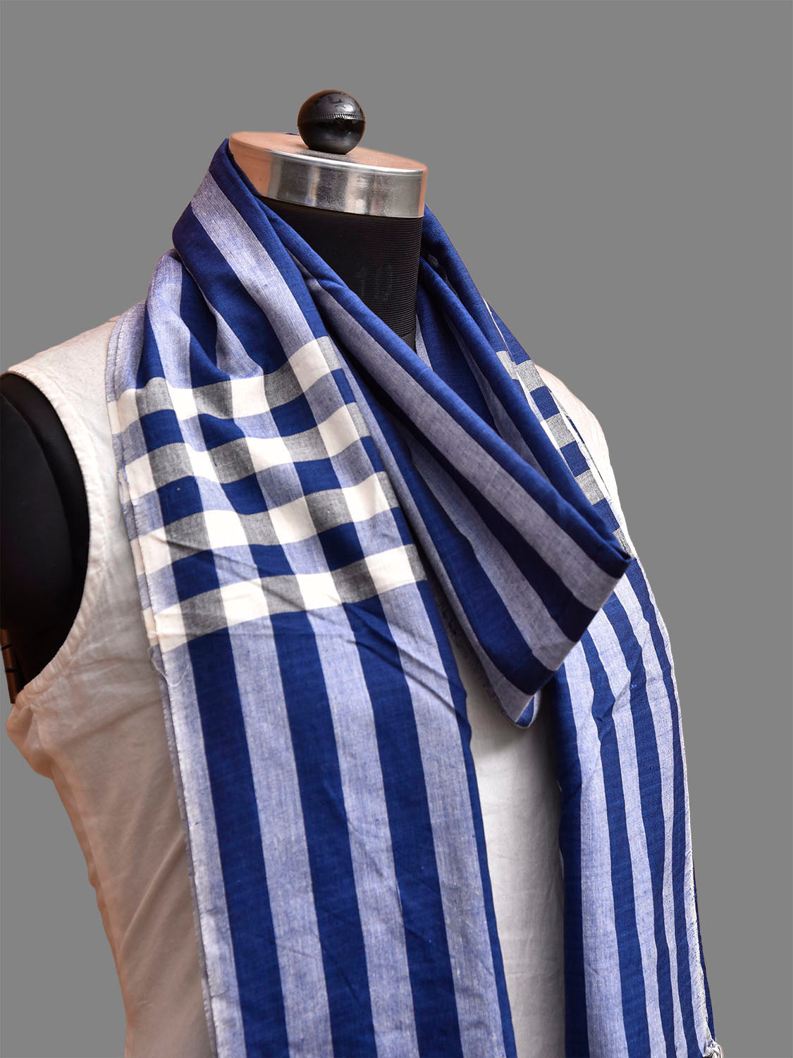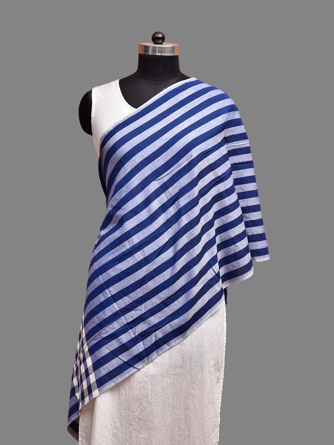 Blue and White Mangalgiri Cotton Stole with Strips Design