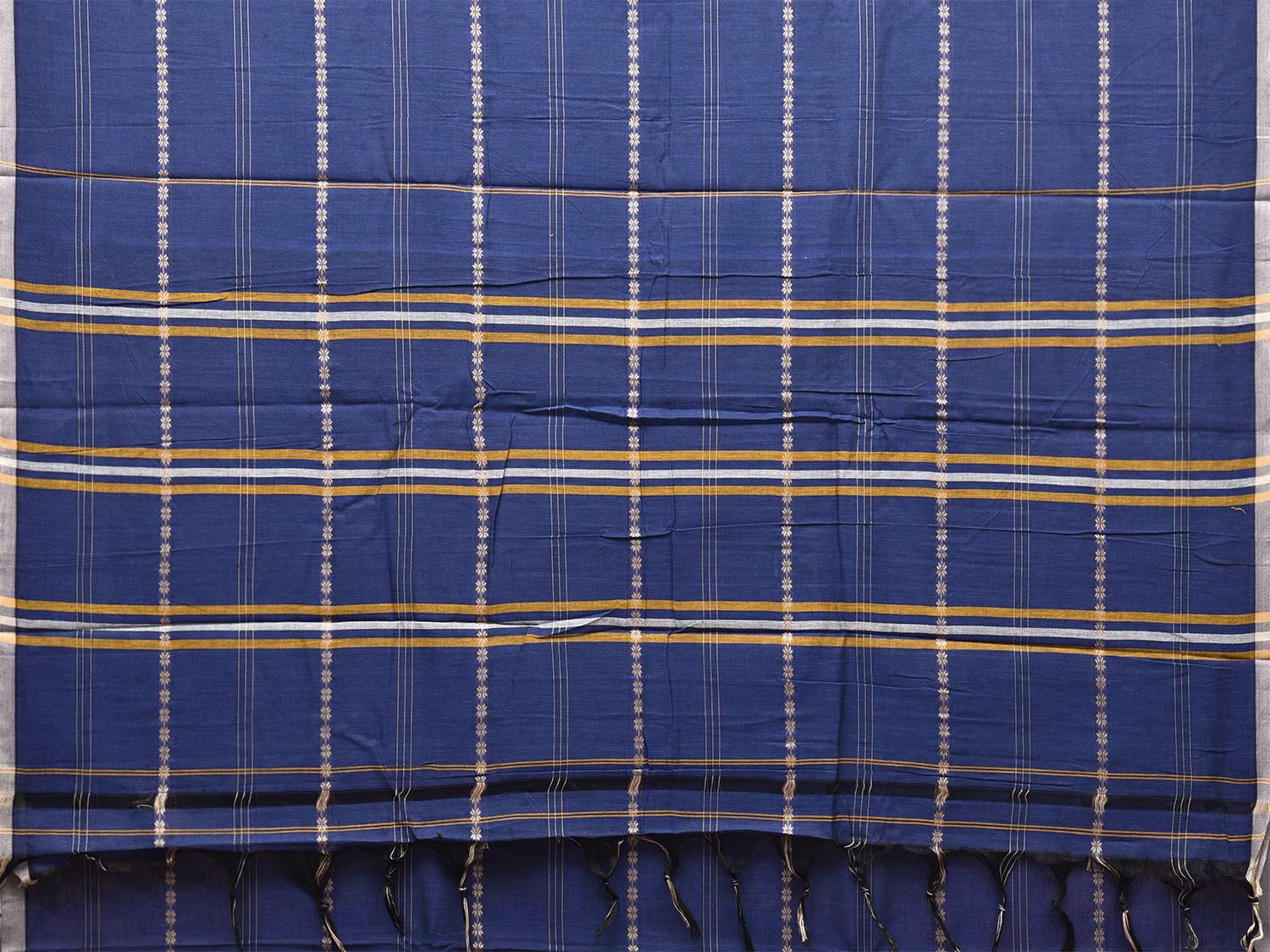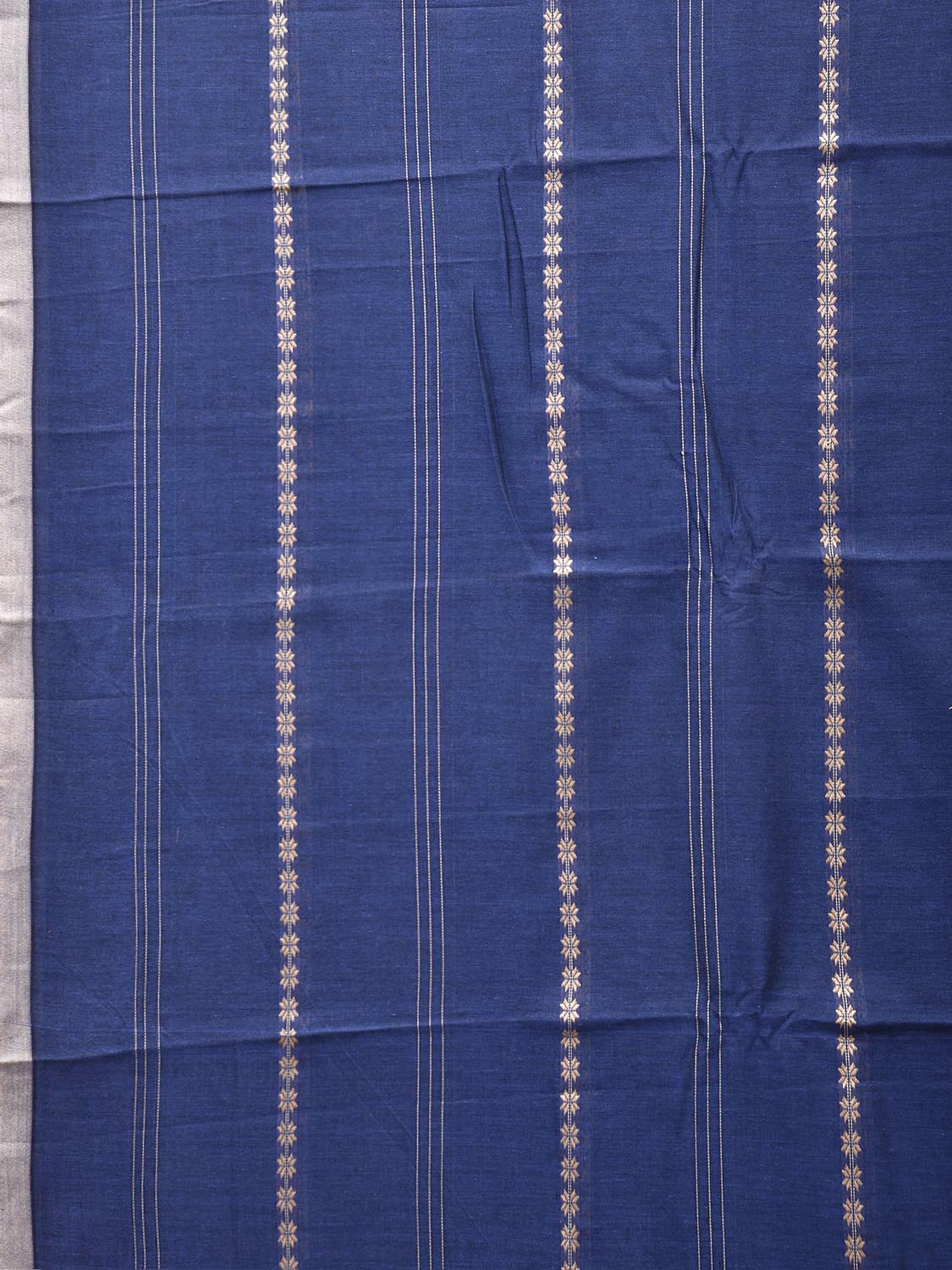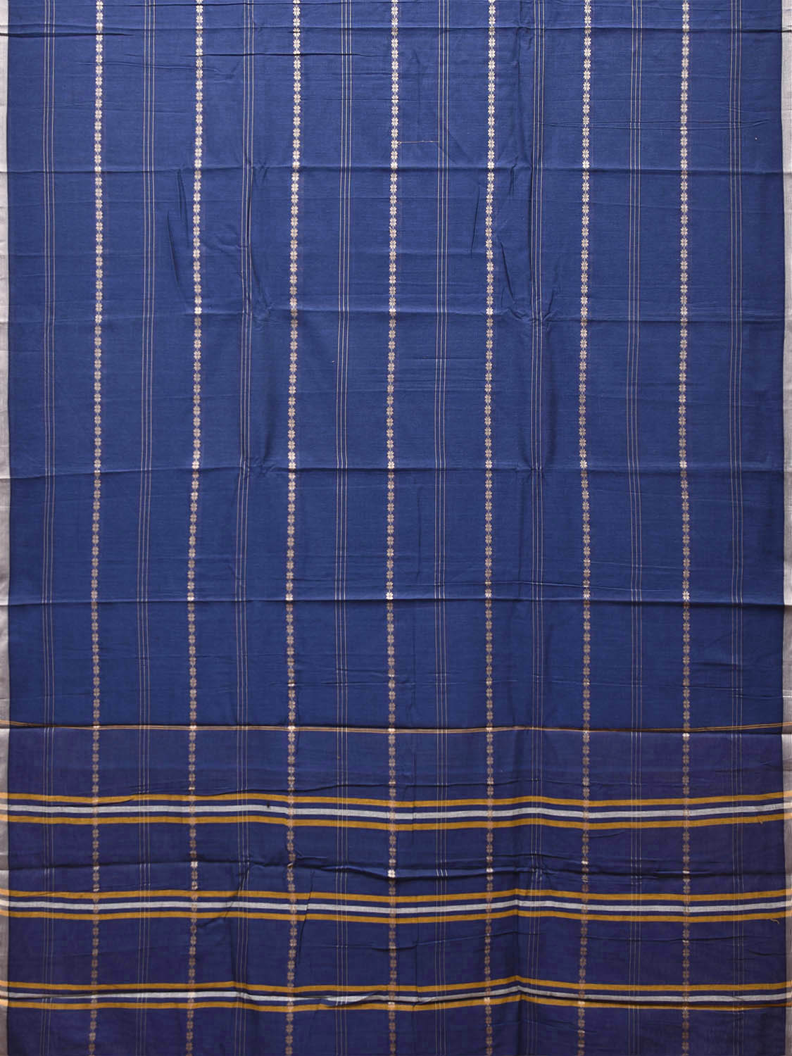 Blue and White Narayanpet Cotton Saree with Strips abd Border Design No Blouse. This saree has no blouse.