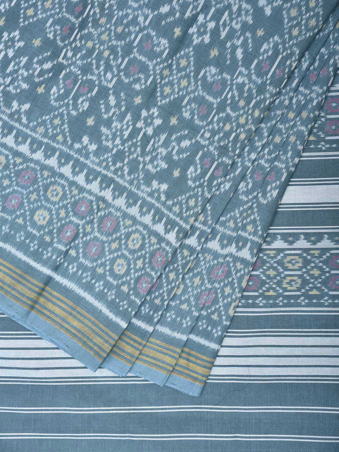 Blue Ikat Cotton Handloom Saree with All Over Pasley Design. This Handloom Saree from Andhra Pradesh has been woven using the resist-dyeing, which produces the unique patterns adorning the fabric. We advise gentle handwash separately for fabric care.