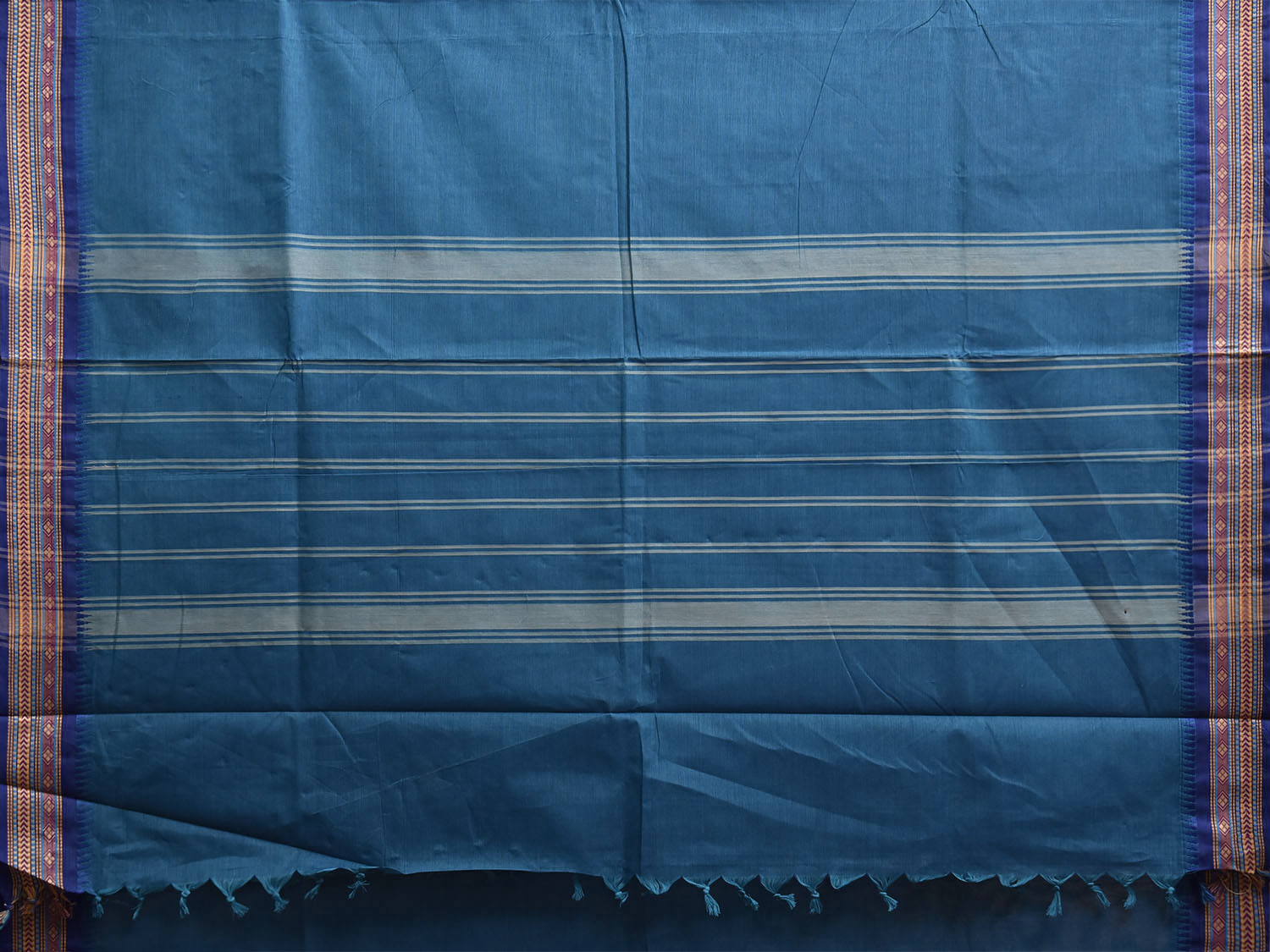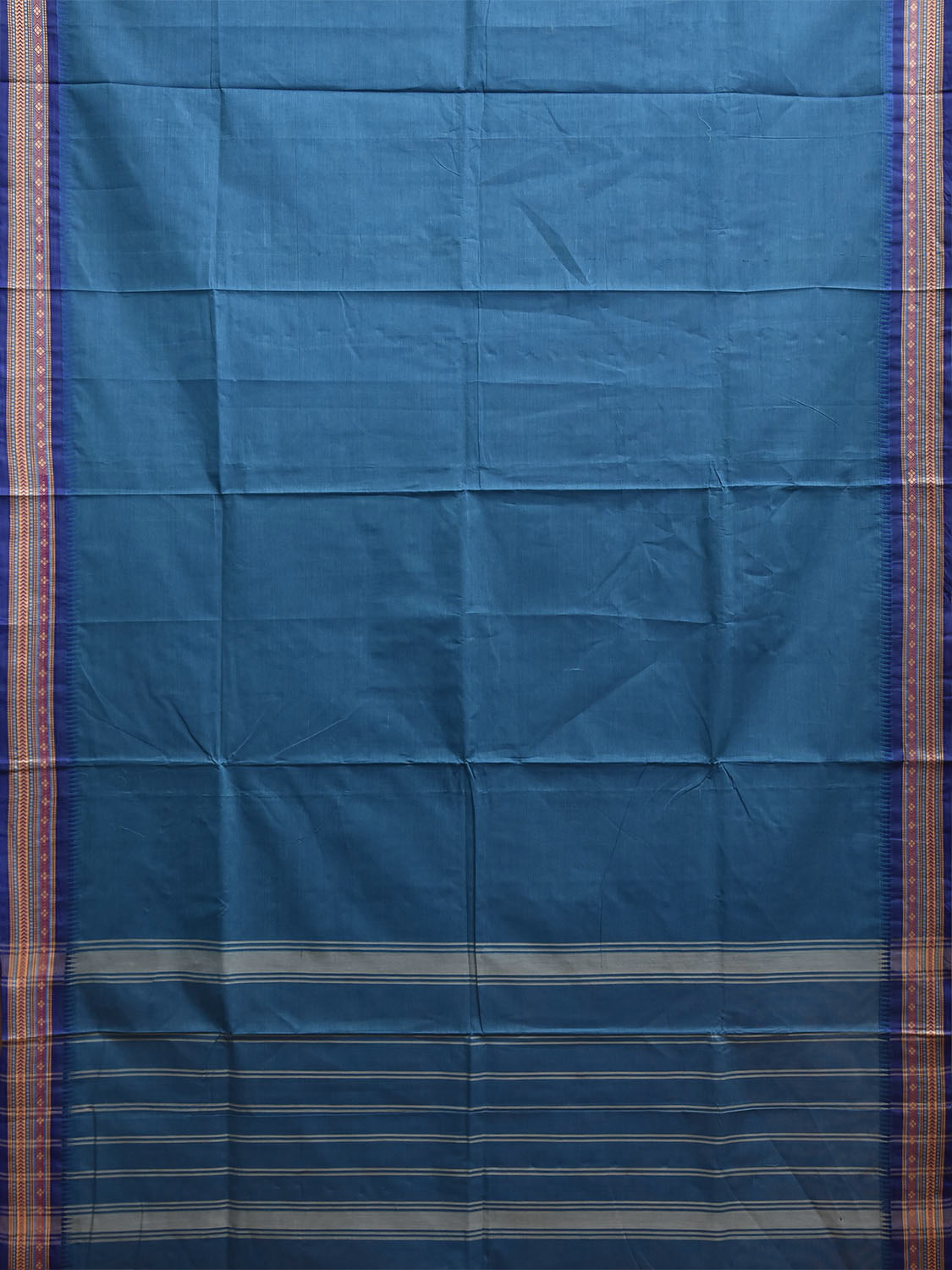 Blue Kanchipuram Cotton Plain Saree with Border and Strips Pallu Design. Traditional Simple South Indian Attire Saree for any Casual Occasions. As it’s a cotton saree we advice gentle handwash separately for fabric care.