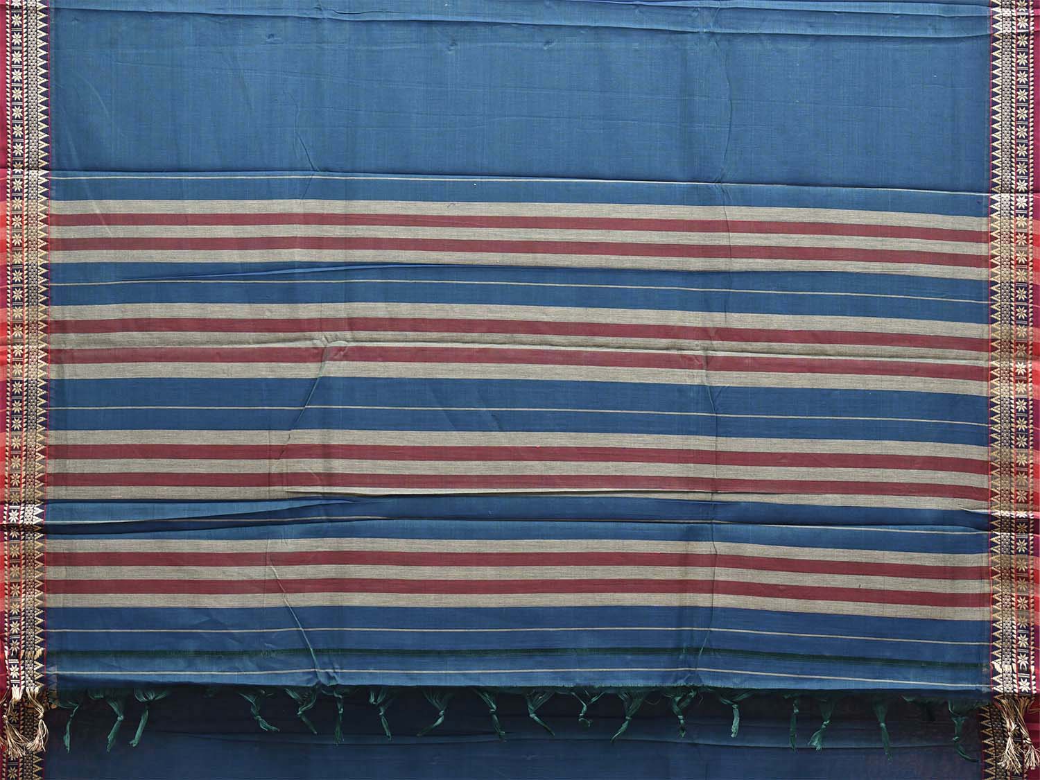 Blue Narayanpet Cotton Plain Saree with Strips Pallu and Border Design No Blouse. This saree has no blouse.